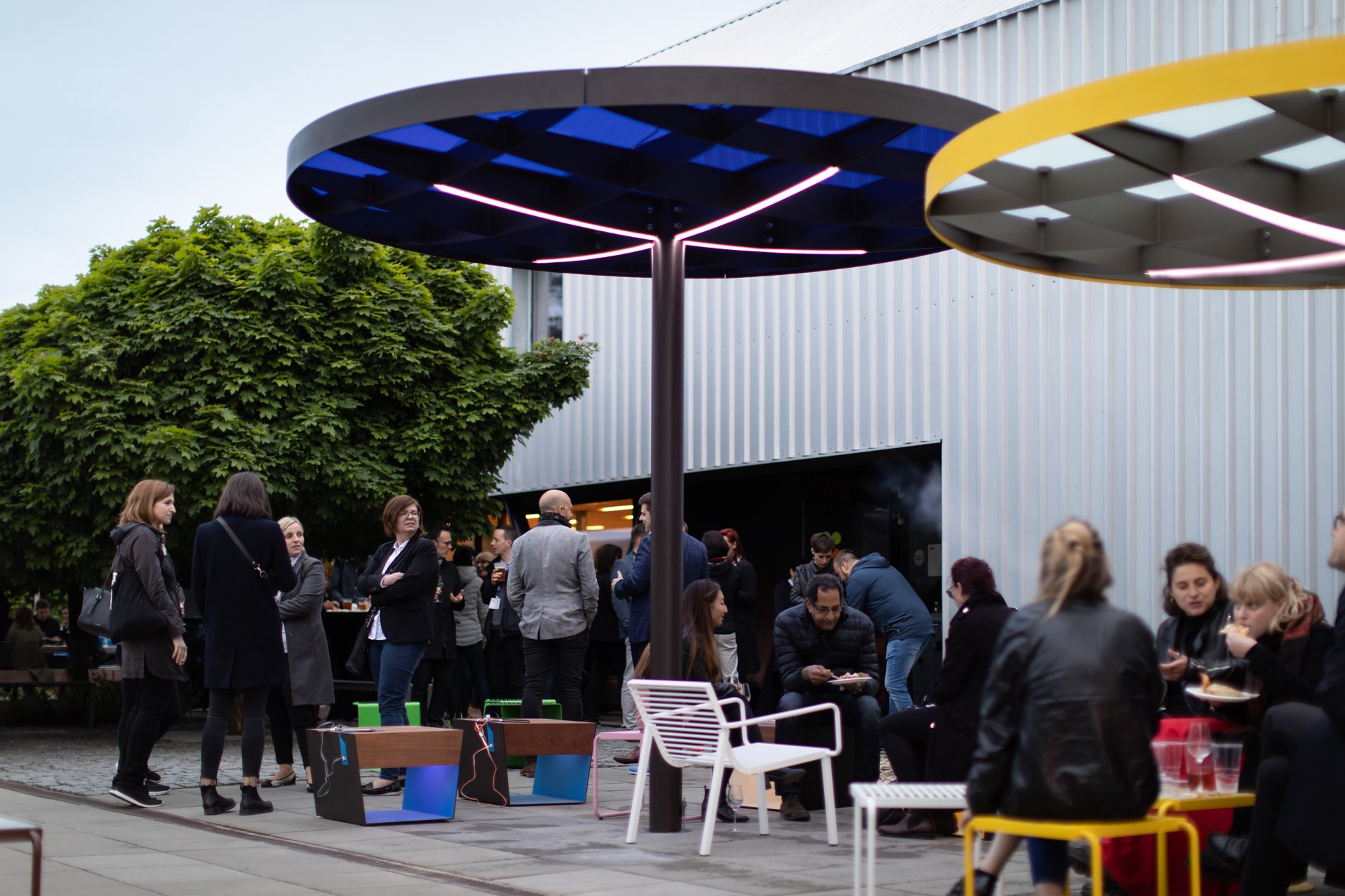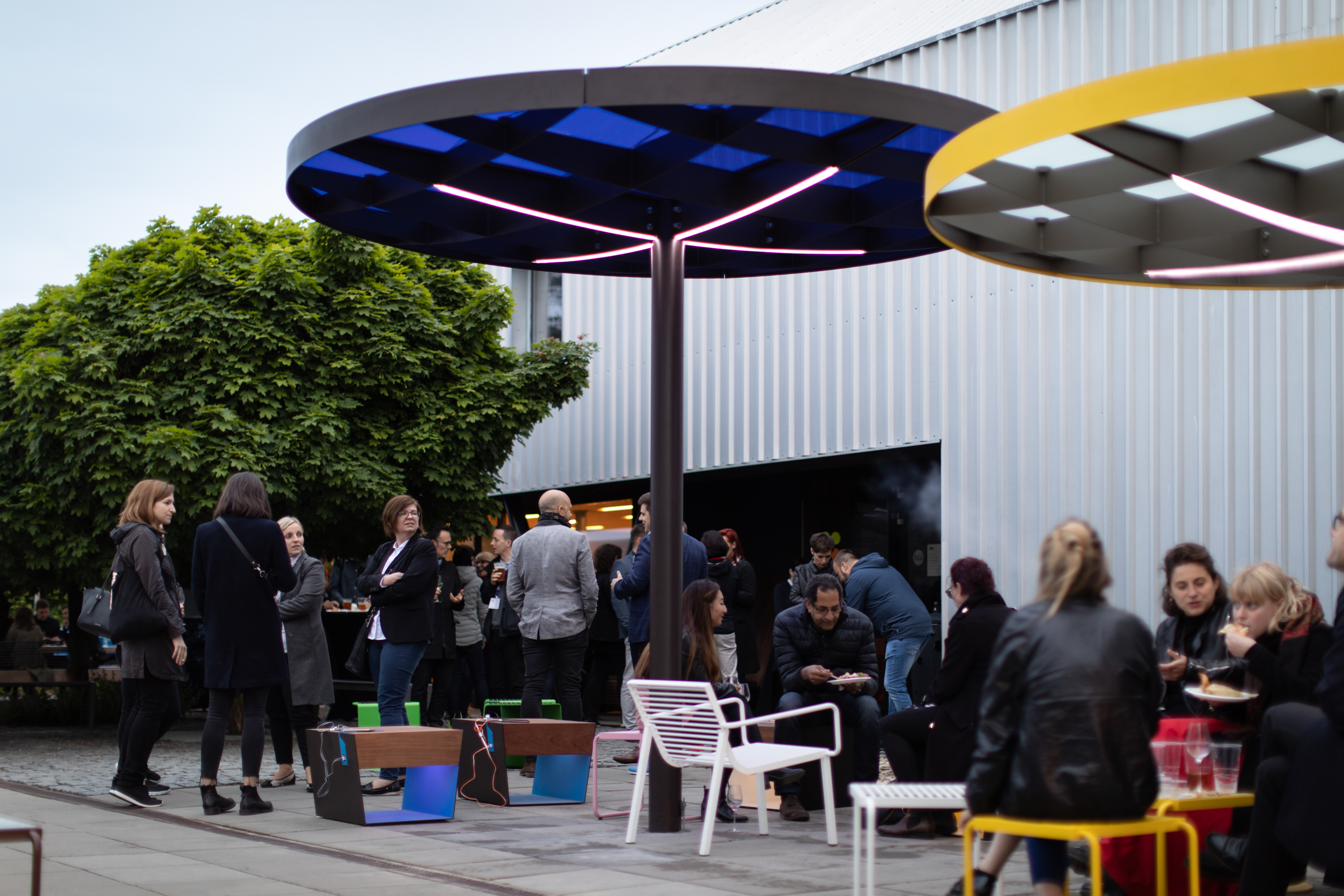 Odborný program sa pozvoľna pretransformoval na spoločenský večer, kde vo vzorkovni v interiéri a exteriéri mohli návštevníci komunikovať, testovať mobiliár... O pohodlie a príjemné strávenie večera bolo zo stany mmcité mimoriadne dobre postarané.
