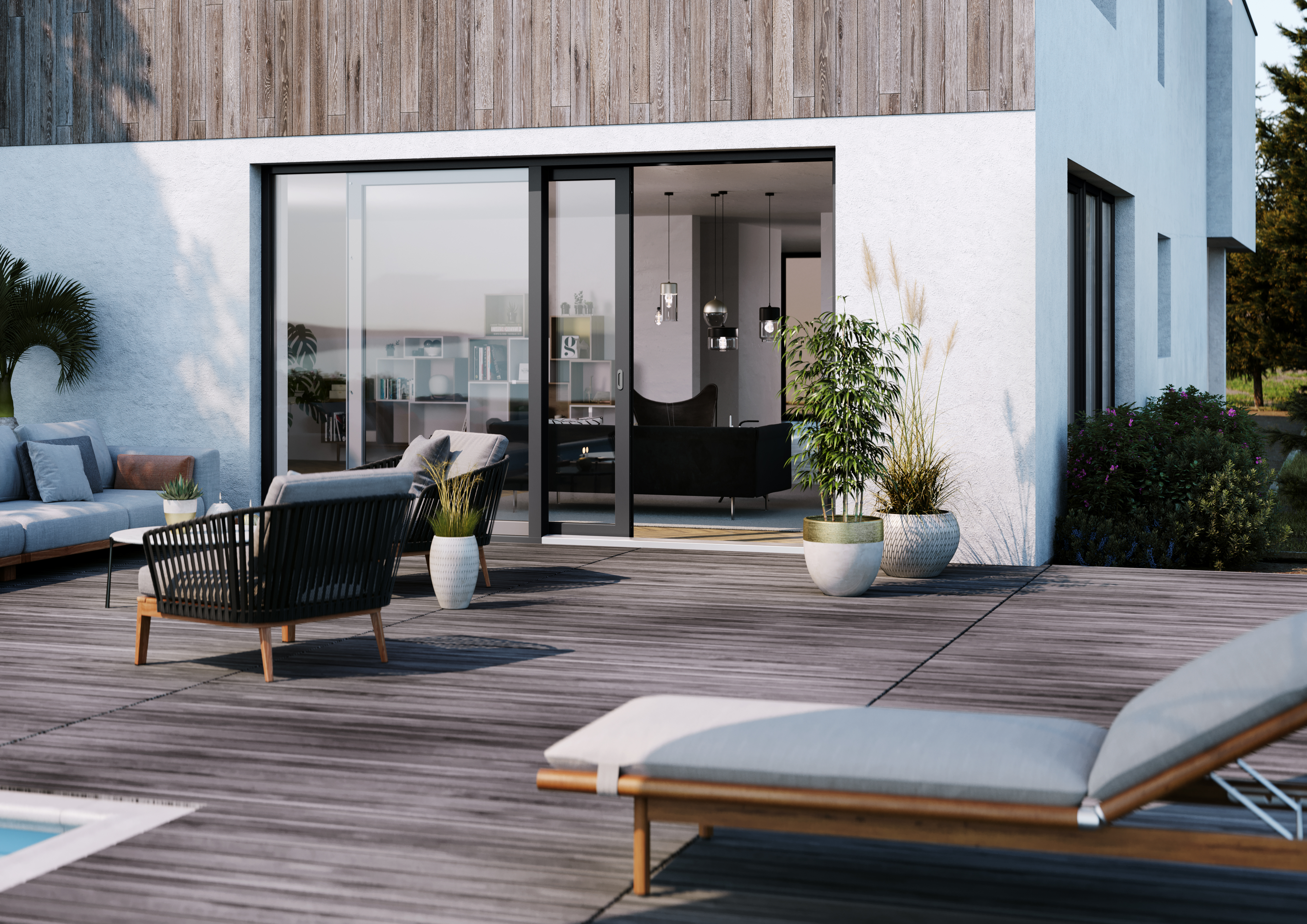 Systém SYNEGO SLIDE ponúka autentický vzhľad vďaka celoprofilovému obkladu, ktorý je možné obohatiť aj hliníkovou lištou pre luxusnejší vzhľad. Široká škála dekorov umožňuje vybrať si aj imitáciu dreva, obľúbenú antracitovú farbu alebo akúkoľvek farbu - a nielen jednu vonkajšiu a jednu vnútornú. V porovnaní s portálom HS sa SYNEGO SLIDE vyznačuje aj veľmi subtílnou konštrukciou profilu, ktorá zväčšuje plochu zasklenia. Poradí si s dverným krídlom s maximálnymi rozmermi 2 x 2,5 m a hmotnosťou až 200 kg, ale rovnako dobre funguje aj s bežnými oknami, ktoré by sme inak mali problém otvoriť - napríklad často používané nízke a dlhé okná nad kuchyňou. Pri prechode z obývacej izby na terasu stačí prekročiť len nízkoprofilový prah.