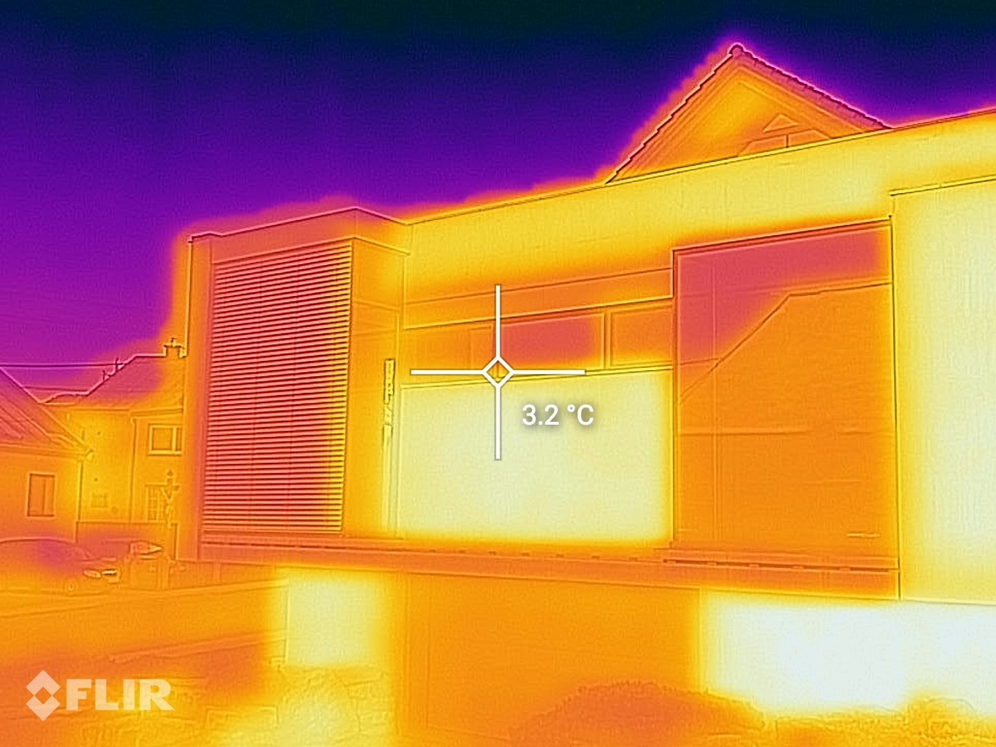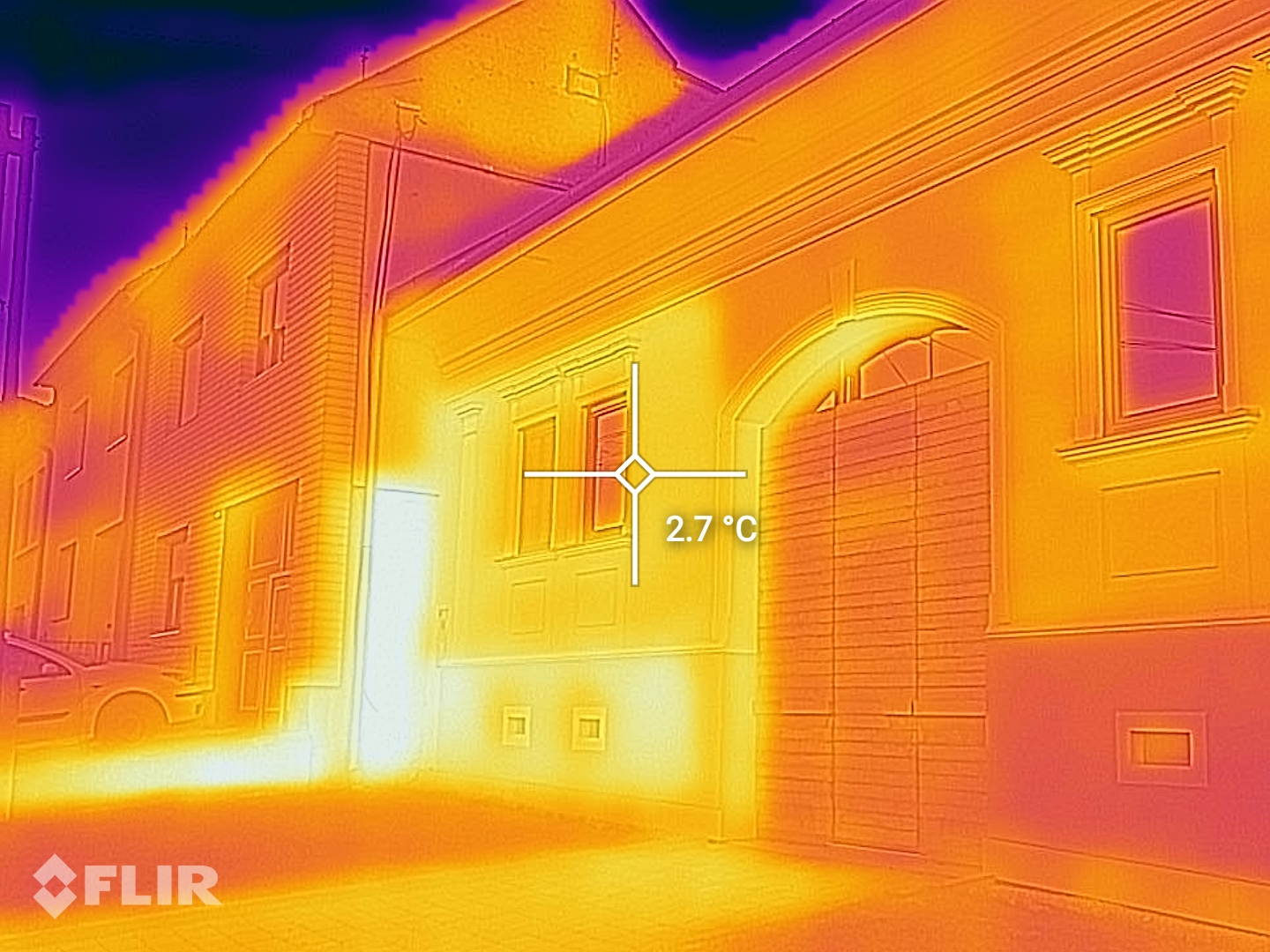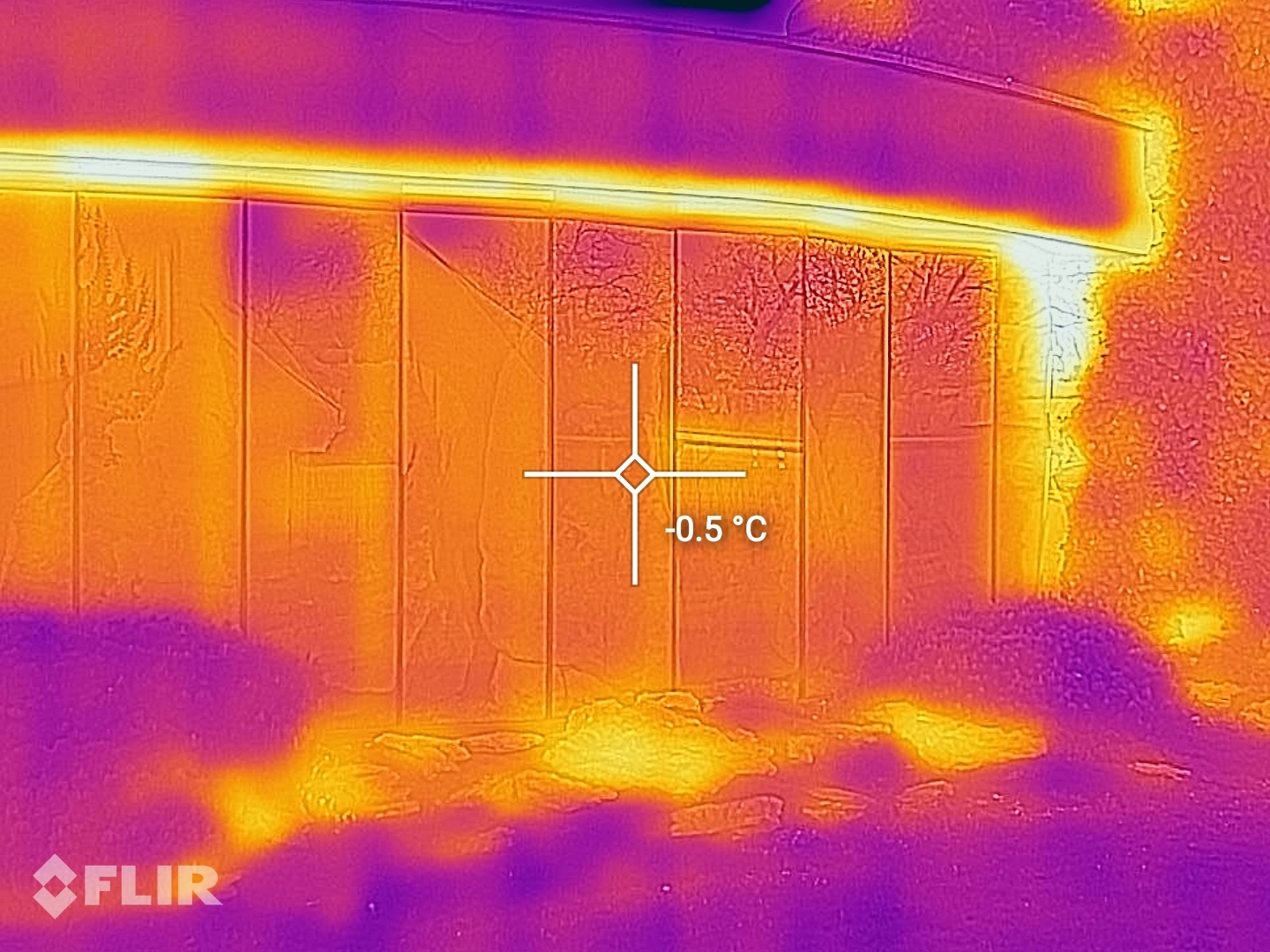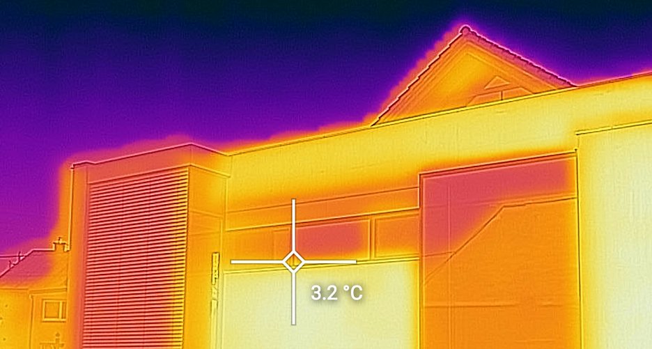 Snímač tohto typu sa prvýkrát objavil v predchádzajúcej vlajkovej lodi Caterpillaru. V prípade S61 však disponuje HD rozlíšením a rozsahom až do 400 °C. Takisto umožňuje bodové meranie teploty. Funkcionalita, ktorá donedávna bola (a stále je) vyhradená špecializovaným a mimoriadne drahým zariadeniam. Pre porovnanie, cena infračervenej kamery FLIR Systems s podobnými parametrami sa pohybuje približne na úrovni cenovky recenzovaného smartfónu. Rozlíšenie a kvalita výstupov je dostatočná pre väčšinu praktických potrieb. Odchýlka “merania” sa pohybuje rádovo v niekoľkých jednotkách stupňov (podľa výrobcu +/- 3 °C, reálne sa pri niektorých meraniach exteriérových objektov môžeme stretnúť aj s odchýlkami (v krajných polohách meraného spektra) cca do 5°C). Uplatnenie v stavebníctve je jasné - je to výborný nástroj na analýzu tepelných strát, tepelných mostov a slabých miest v obvodovom plášti budov. V chladnom počasí stačí namieriť “telefón” na fasádu a ihneď vidíme, kde je problém (aj s vyčíslením povrchových teplôt konštrukcií):