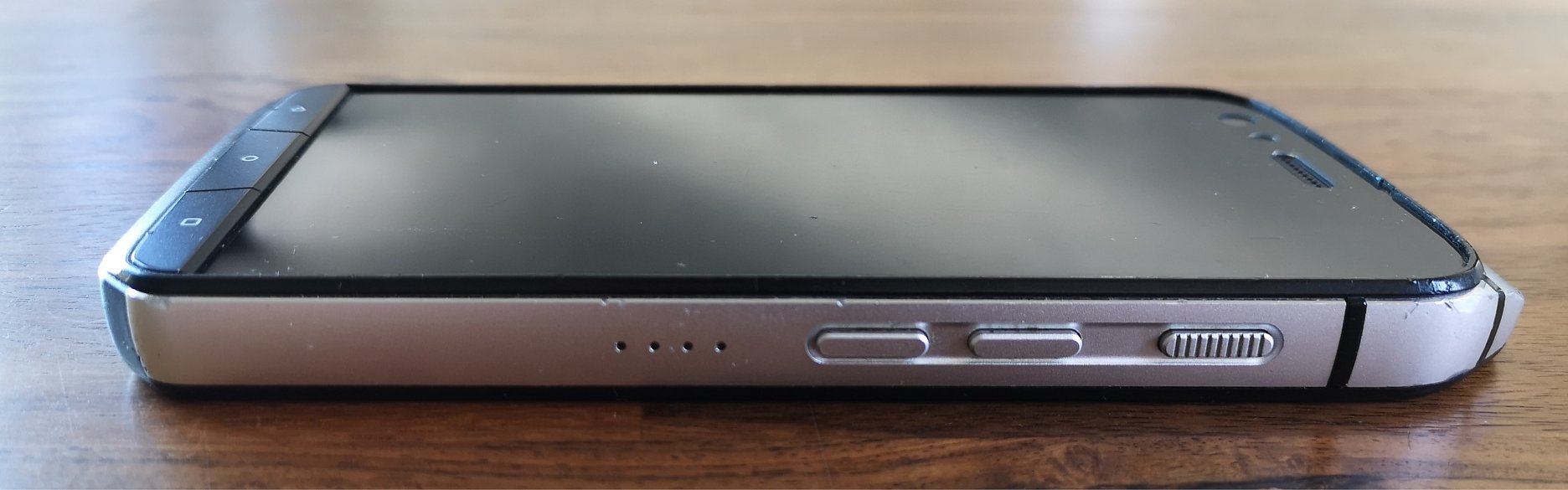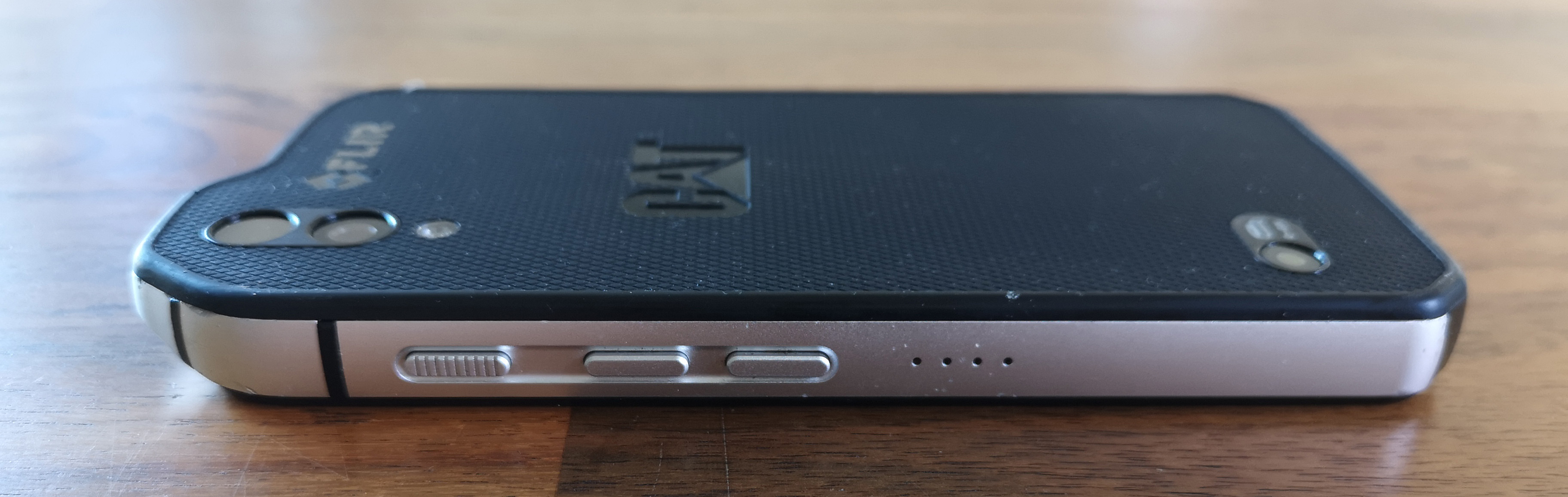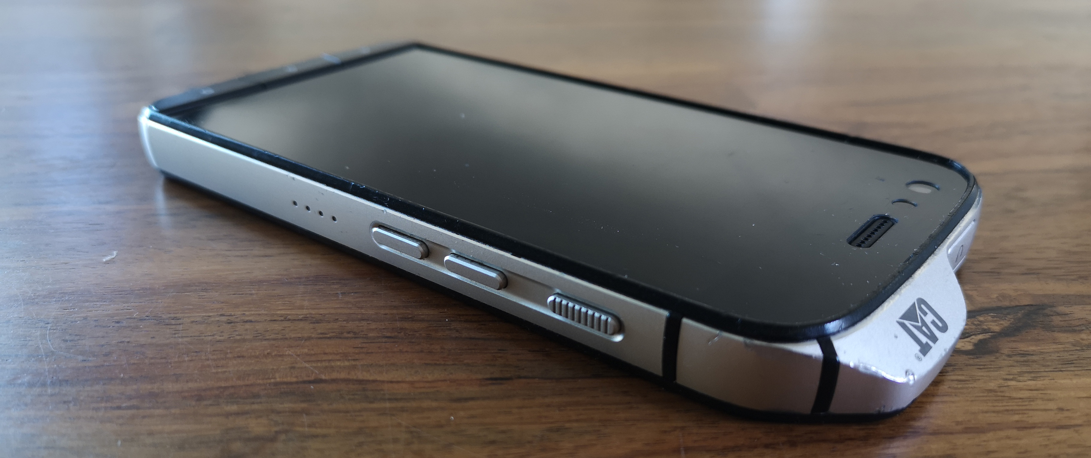 Samozrejme, telefón nie je nesmrteľný. Ochranné sklo Gorilla Glass 5 je síce od výroby doplnené fóliou a zapustené pod vystúpené okraje hliníkového rámu, priamemu stretu s ostrou prekážkou však pravdepodobne neodolá. (Výrobca ponúka však naviac aj robustné ochranné obaly, ktoré odolnosť ešte zvyšujú). CAT po roku každodenného "tvrdého" používania vyzerá takto: