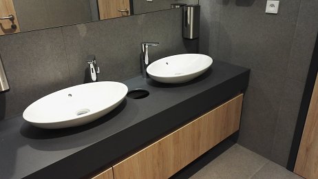 KÚPEĽNE Lapitec® je neporézny materiál a preto odoláva usadzovaniu plesní, baktérií a škvŕn. Ľahko sa čistí teplou vodou a preto je ideálny pre použitie v kúpeľniach, sprchách, ako dlažba a aj na steny.