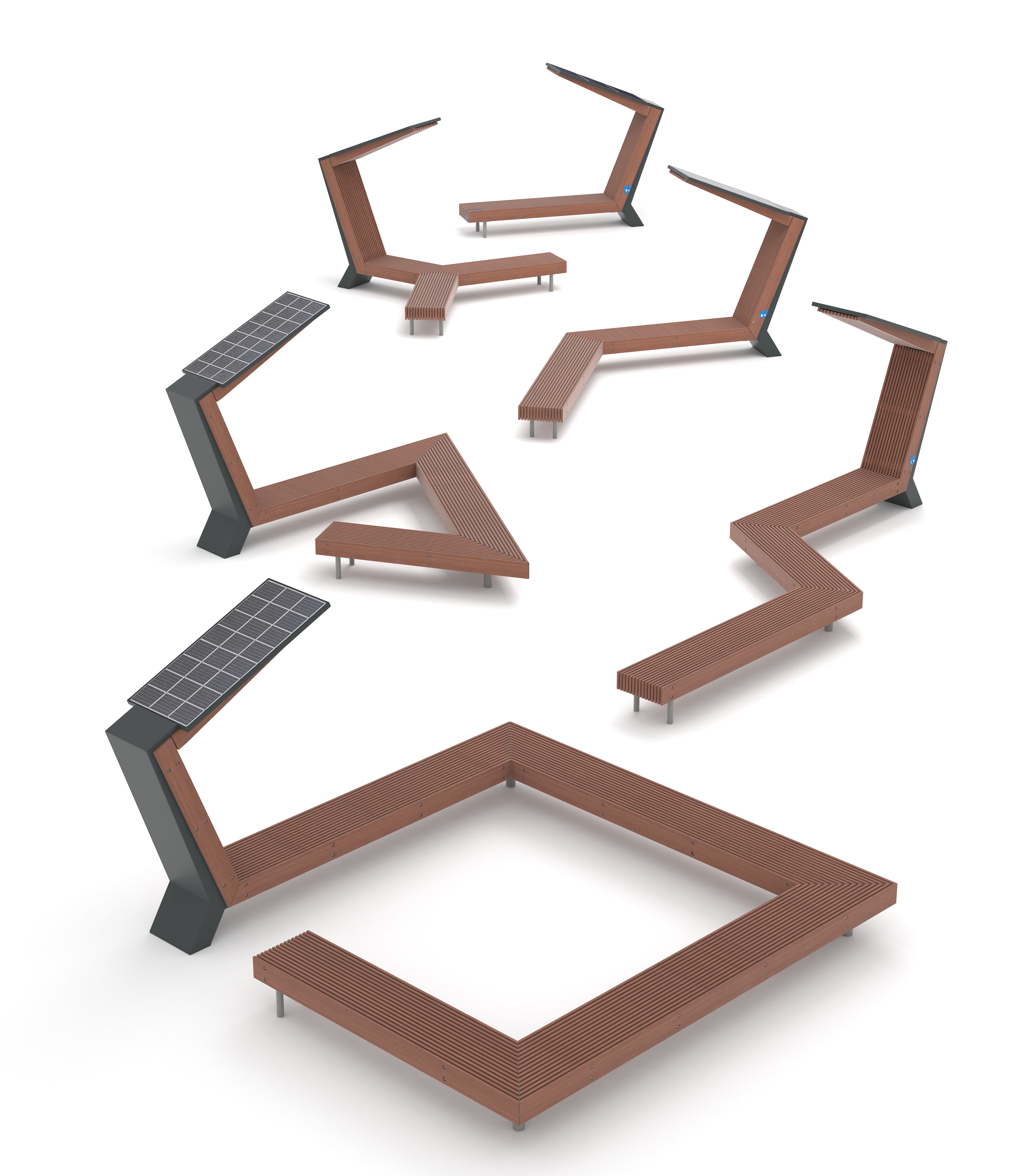 Multifunkčná lavička ponúka možnosť nabíjania až štyroch zariadení naraz a vďaka bezdrôtovému pripojeniu umožňuje svojím užívateľom byť v neustálom spojení so svetom. Tvarom pripomína škorpióna a je možné poskladať ju do viacerých tvarov.