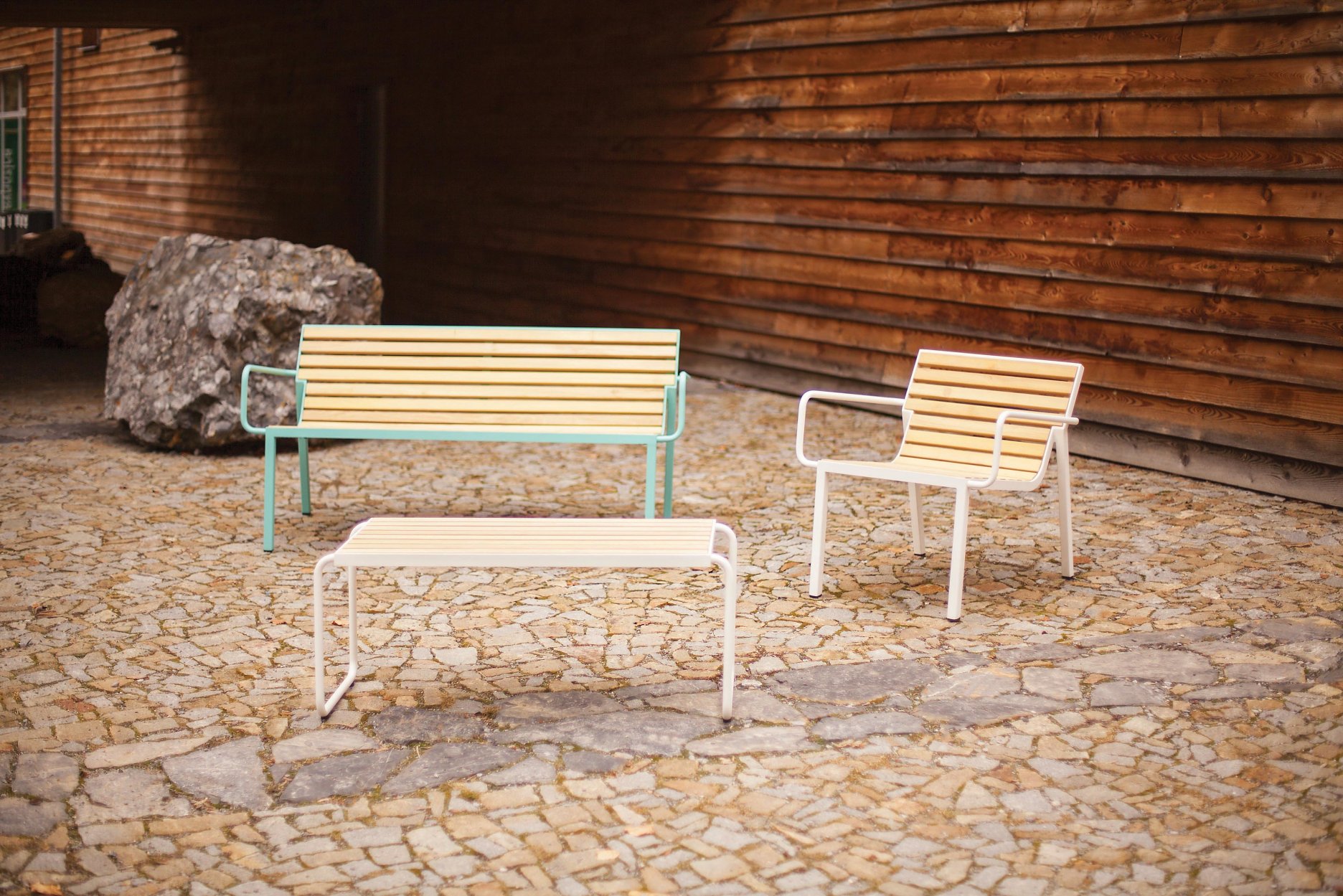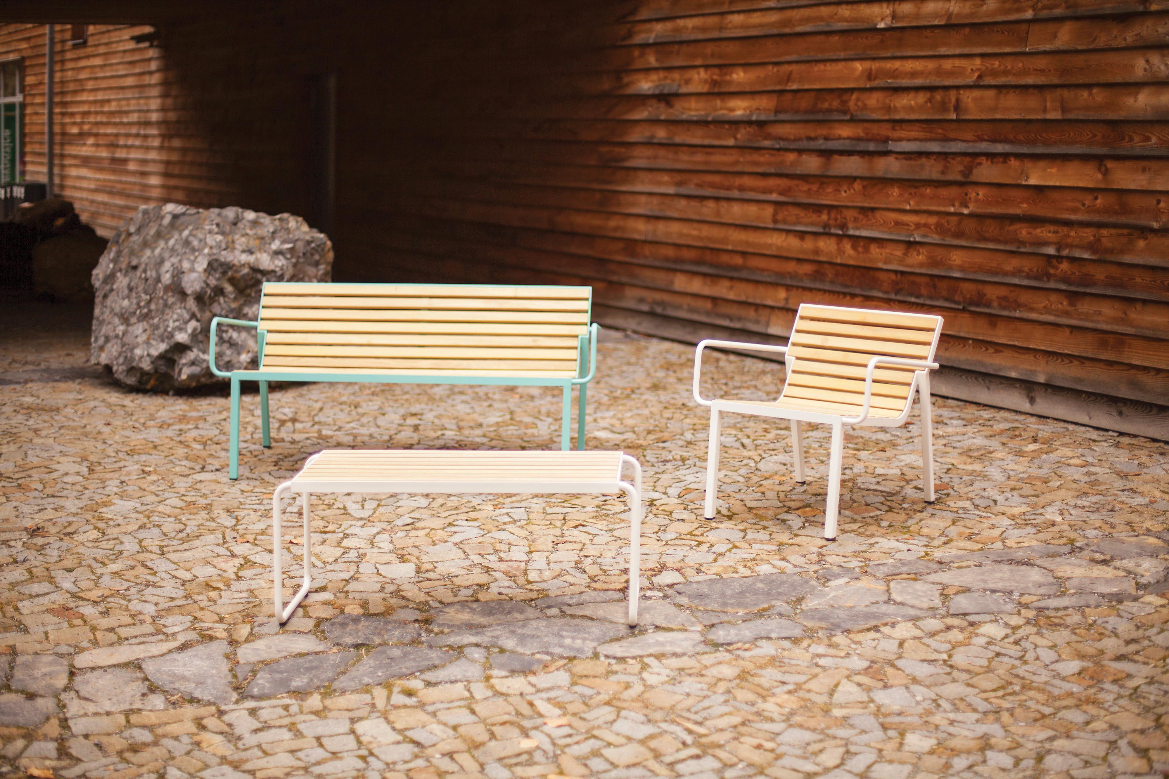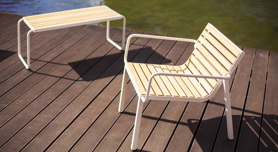 Sadu tvorí dvojmiestna lavička s operadlom a opierkami, pohodlné kreslo, jednosedáky a stolík, ktoré aj napriek svojmu subtílnemu vzhľadu tvoria plne funkčné prvky vo verejnom priestore. Kolekcia je vyrobená z ľahkej pozinkovanej oceľovej konštrukcie a sedadlá z drevených lamiel alebo oceľových roštov. Stolíky a stoličky môžu mať hornú dosku z HPL. Všetko je stohovateľné a pre väčší komfort a pohodlie k dispozícii s nepremokavým polstrovaním. Dizajn je nadčasový, kombinujúci moderný a retro výraz.