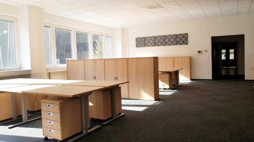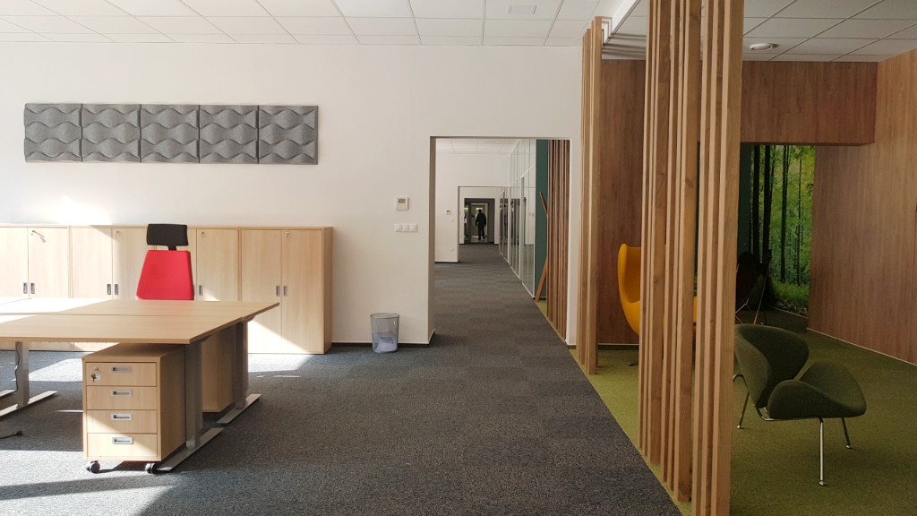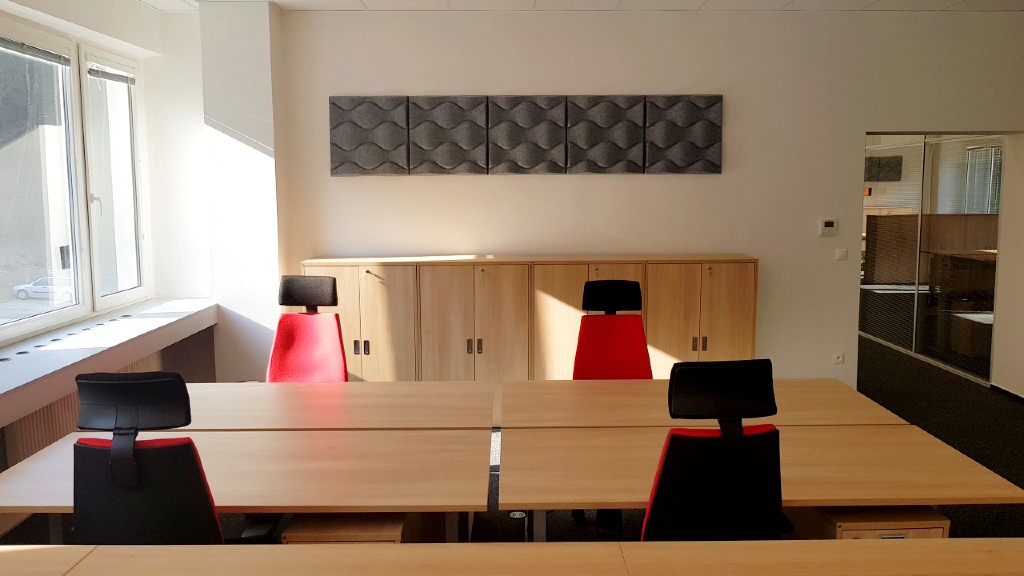 V kanceláriách sme použili našu obľúbenú kancelársku radu Modulus. Kancelárske stoly, kancelárske skrine a kancelárske kontajnery spolu krásne ladia a vytvárajú príjemnú atmosféru, v ktorej sa budú zamestnanci cítiť dobre.