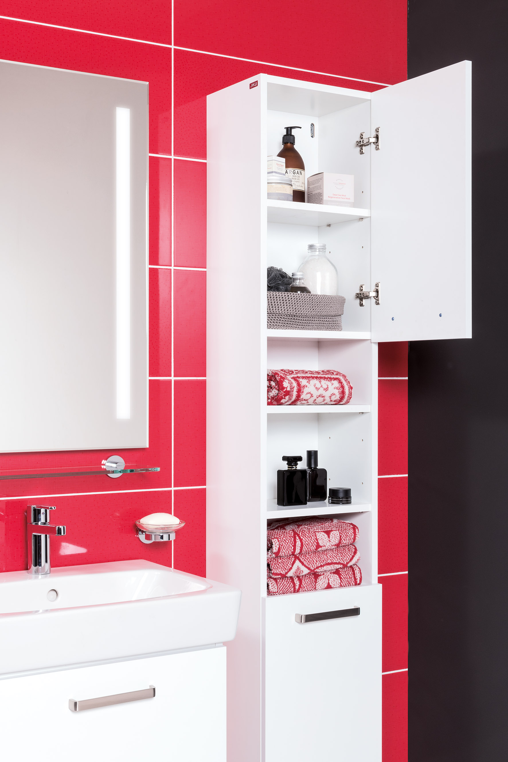 Nový nábytok svojim štýlom dopĺňa známu kúpeľňovú sériu Lyra Plus. Dostupná je v populárnej bielej farbe s leskom na čielkach a s matnými bokmi. Zaujímavým detailom a zároveň praktickým riešením sú masívne úchytky z brúseného niklu. Vďaka svojim rozmerom nábytok poskytuje dostatočný priestor pre uloženie všetkých nevyhnutností, ktoré potrebujete vo svojej kúpeľni. V ponuke nájdete dvojdverové skrinky pod umývadlo s rozmermi 40 cm a 55 cm, ďalej skrinky pod umývadlo s dvomi zásuvkami s rozmermi 50, 55 nebo 60 cm, ktoré sú opatrené brzdou a dojazdom, strednú skrinku a vysokú skrinku s dvierkami aj otvorenými poličkami. Tie je možné skvelo využiť na doplnky, s ktorými doladíte kúpeľňu do najmenších detailov, alebo na nevyhnutnosti, ktoré potrebujete mať neustále pri ruke.