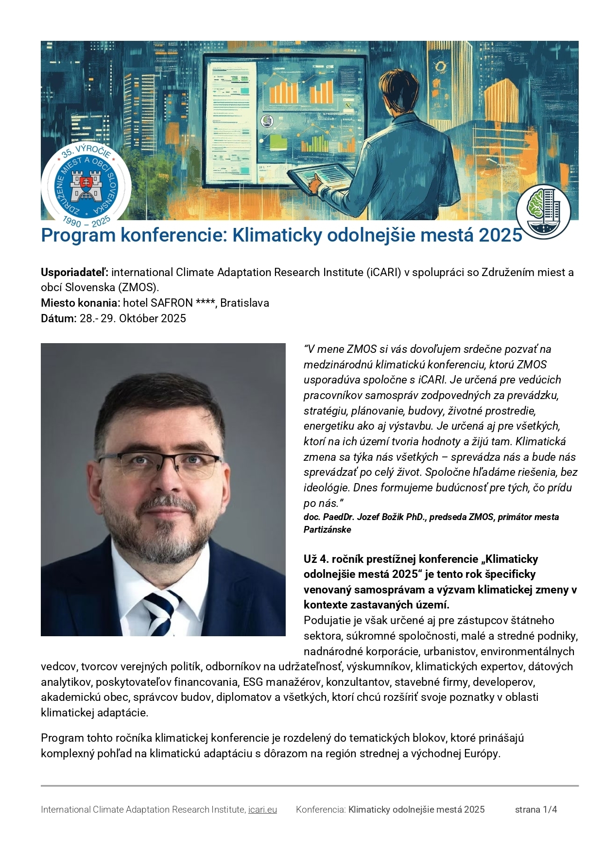 Pozývame Vás na odbornú konferenciu „Klimaticky odolnejšie mestá 2025“, ktorá sa uskutoční 28. a 29.10.2025 v Bratislave.