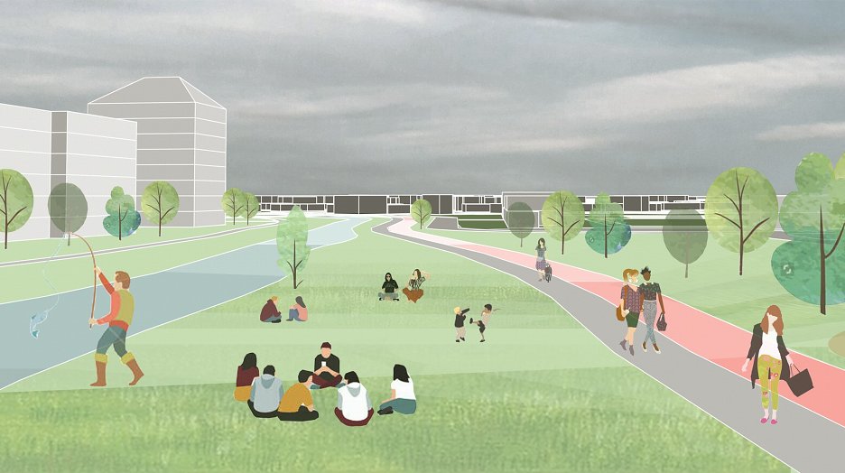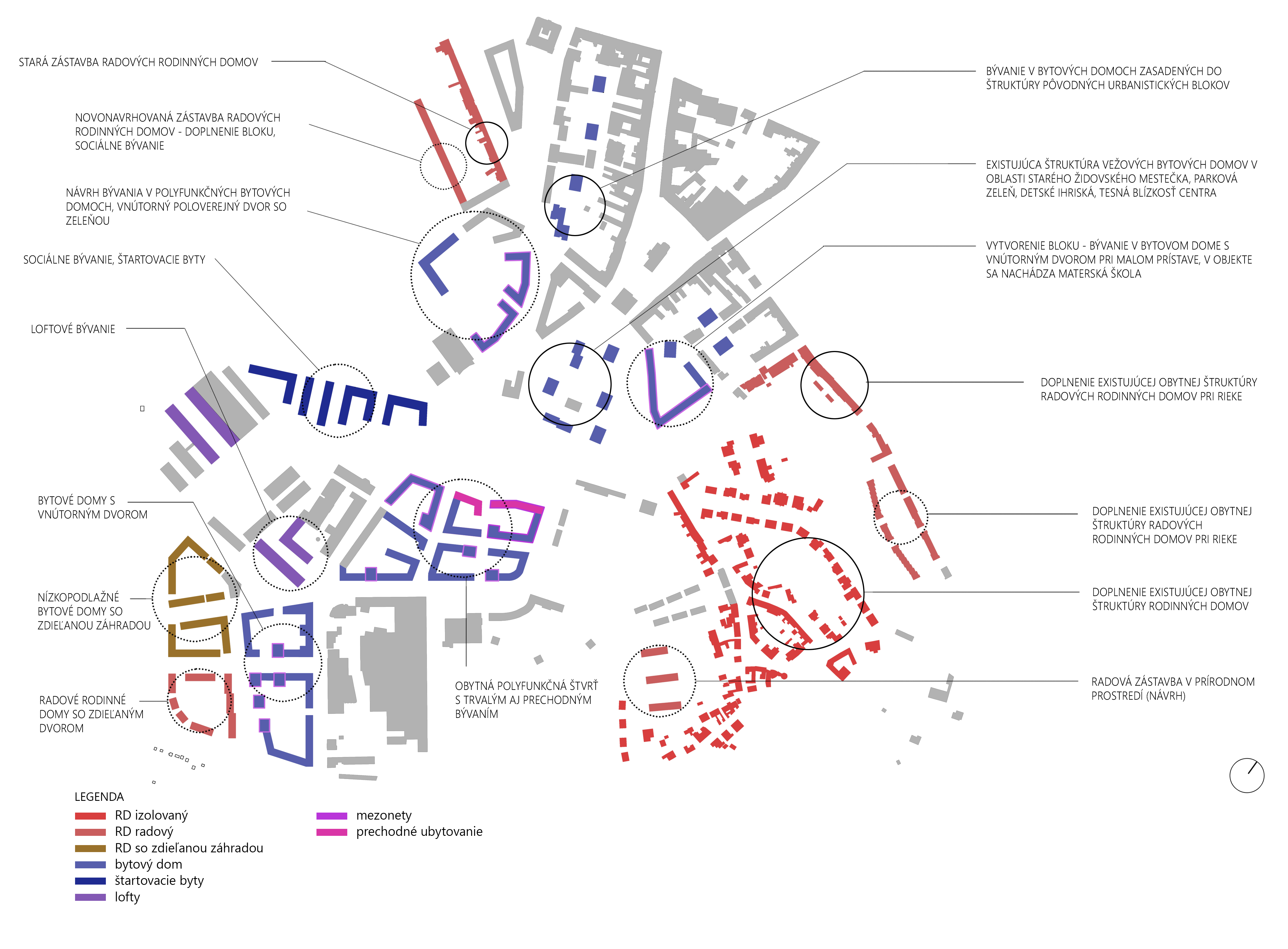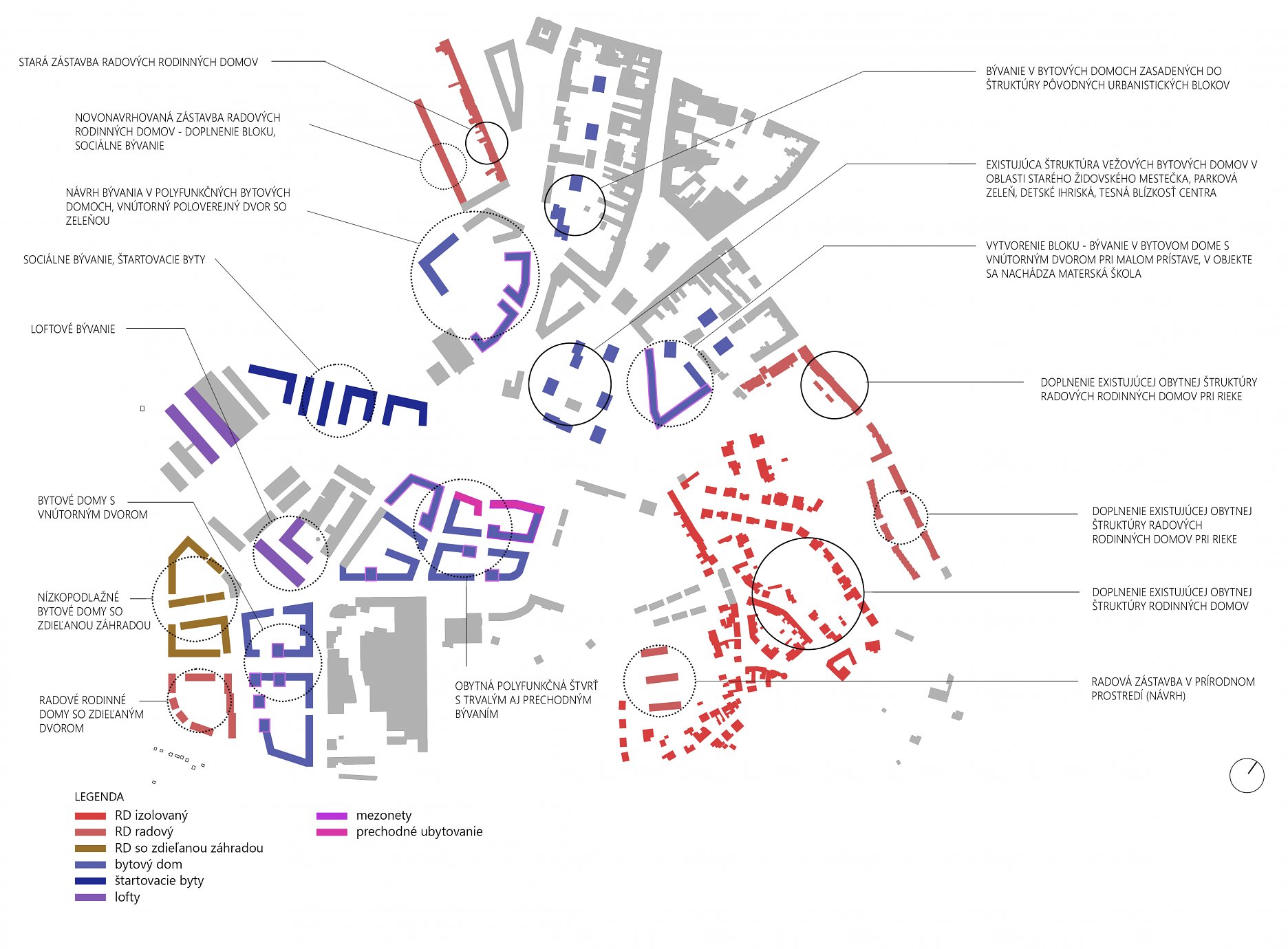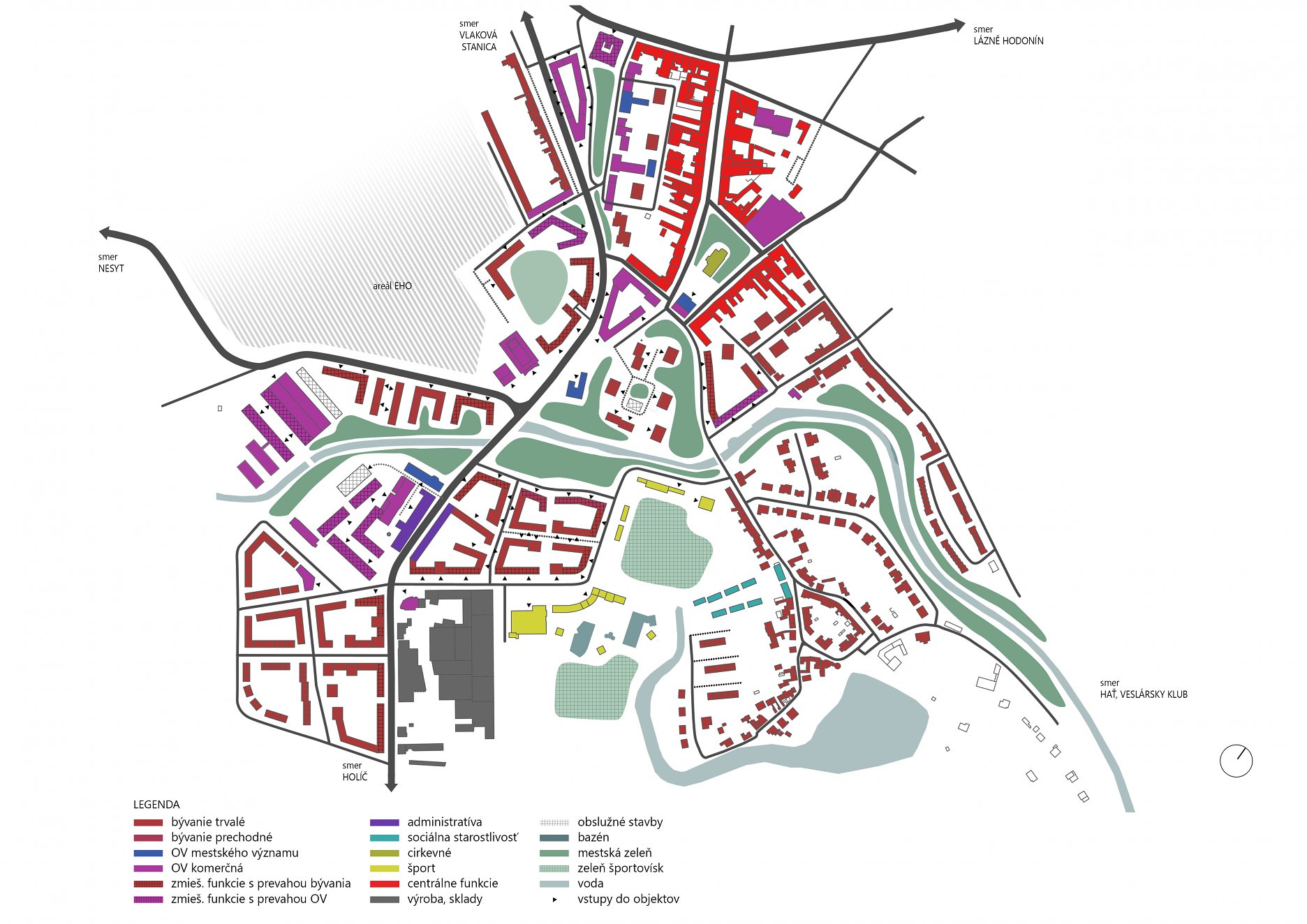 Mestský charakter zóny sa posilňuje vytvorením nových priestorov a štruktúr v riešenom území a ich aktívnym funkčným a prevádzkovým napojením na priwstory už existujúce. Je dôležité dosiahnuť adekvátne „premiešanie funkcií“ tak, aby územie bolo polyfunkčné. Zvyšovaním hustoty priestoru sa zvyšuje jeho mestský charakter a taktiež miera jeho využitia. Dosahuje sa to vytváraním nových plôch bývania, ktoré sú doplnené o plochy občianskej vybavenosti, v nadväznosti na športové a rekreačné plochy. Sieť verejných priestorov zabezpečuje prepojenie štruktúry mesta.