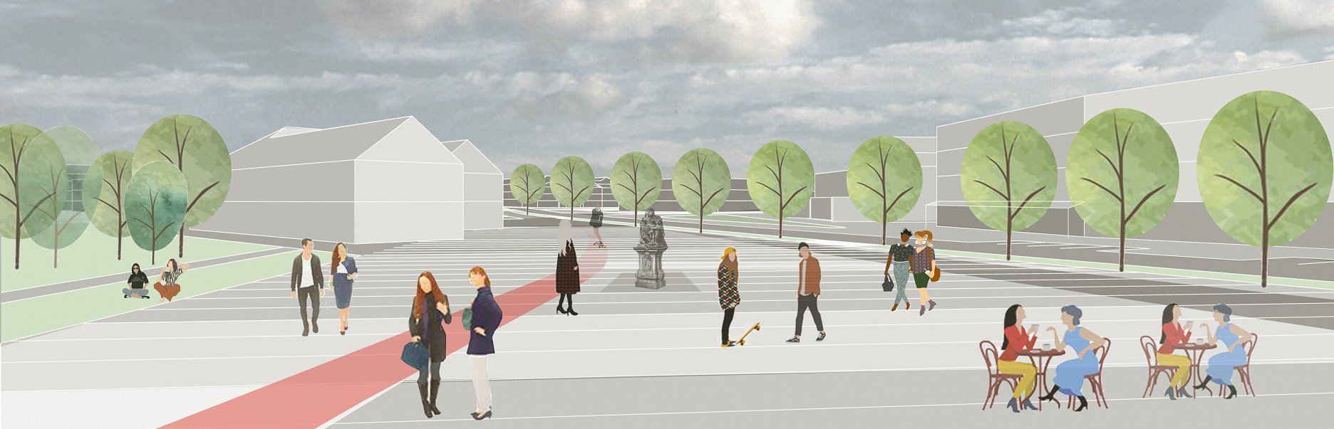 Zadaním návrhu bolo transformovať riešené územie tak, aby sa jednotlivé mestské priestory prepojili a vytvorili sieť záujmových bodov, ktoré podporia život a prácu v tejto časti mesta.