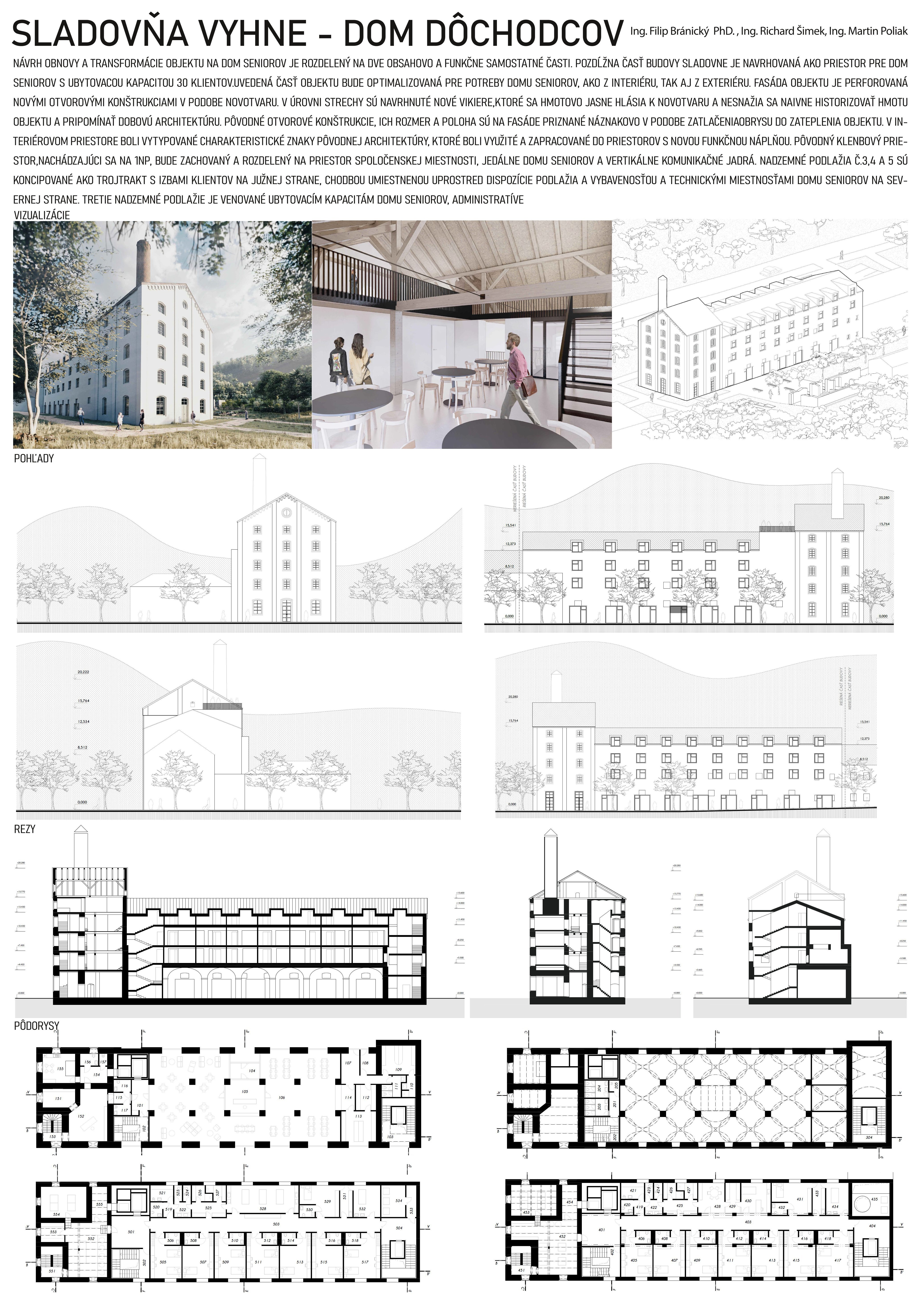 Projekt SLADOVŇA VYHNE - DOM DÔCHODCOV pozitívne prezentuje prístup k transformácií objektu. Samotná téma obsadenia pôvodnej sladovne na účely domu dôchodcov znie zaujímavo. Z objektu je čitateľný vhodný pomer zachovania pôvodného a vstup nového. Hodnotné signifikantné prvky objektu sú v návrhu zachované a obnovené, naopak nové vstupy sú akcentované v podobe súčasných prvkov, ako sú nové otvory v obvodovom plášti, či vikiere v rovine strechy. Súčasný prístup je viditeľný aj v skladbe dispozícií, voľného otvoreného prízemia a členenia funkcií vo vertikálnom smere.
