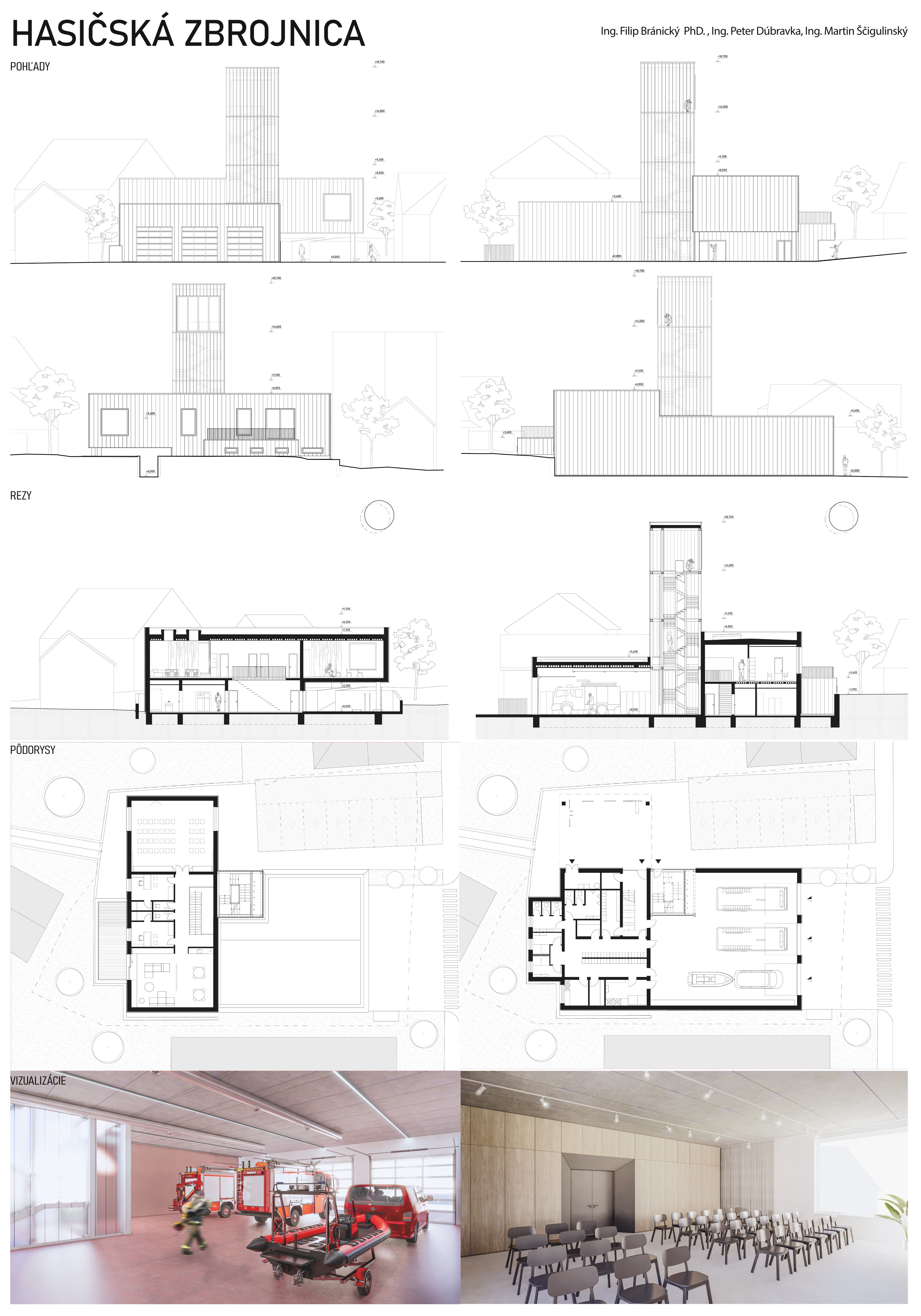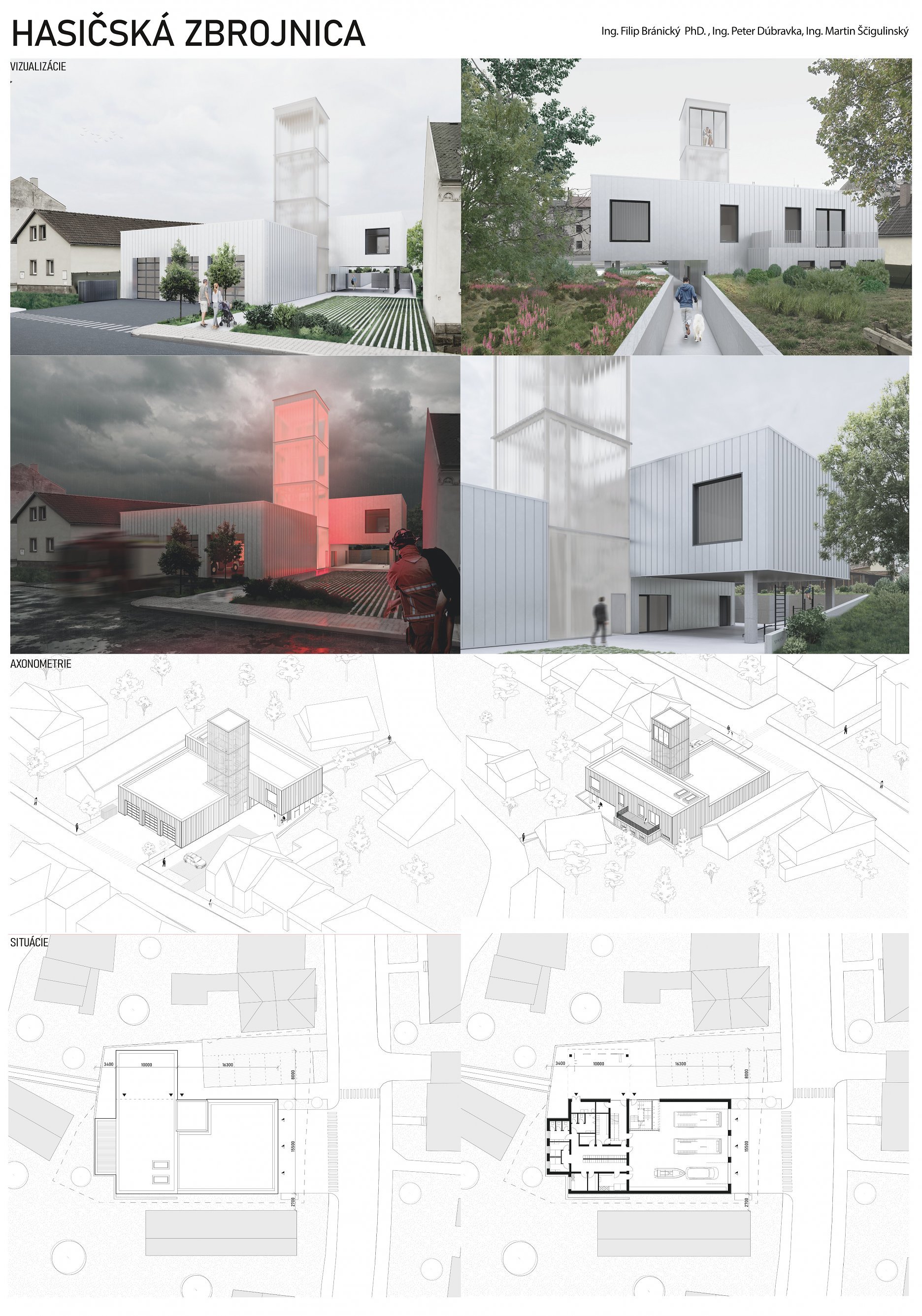 Hasičská zbrojnica je moderným vstupom do existujúcej zástavby rodinných domov. Minimalistická hmota zložená z kvádrov vystupuje vertikálnou vežou nad strešnú rovinu susedných stavieb a spolu s osvetlením dáva jasne najavo svoju funkciu. Zároveň sa stáva výrazným orientačným prvkom tohto územia. Dostupnosť veže z verejného priestranstva pred budovou zbrojnice poskytuje možnosť jej turistického využitia. Rovnako sála nad priechodom je v prípade potreby využiteľná pre širokú verejnosť. Pozitívne možno hodnotiť, to akým spôsobom návrh pristupuje k verejnému priestoru, v ktorom netvorí bariéru, ale naopak plynule ho prepája. Tento projekt je príkladom toho, že aj k návrhu tak účelnej stavby, akou je hasičská zbrojnica, je možné pristupovať tvorivo a nápadito.
