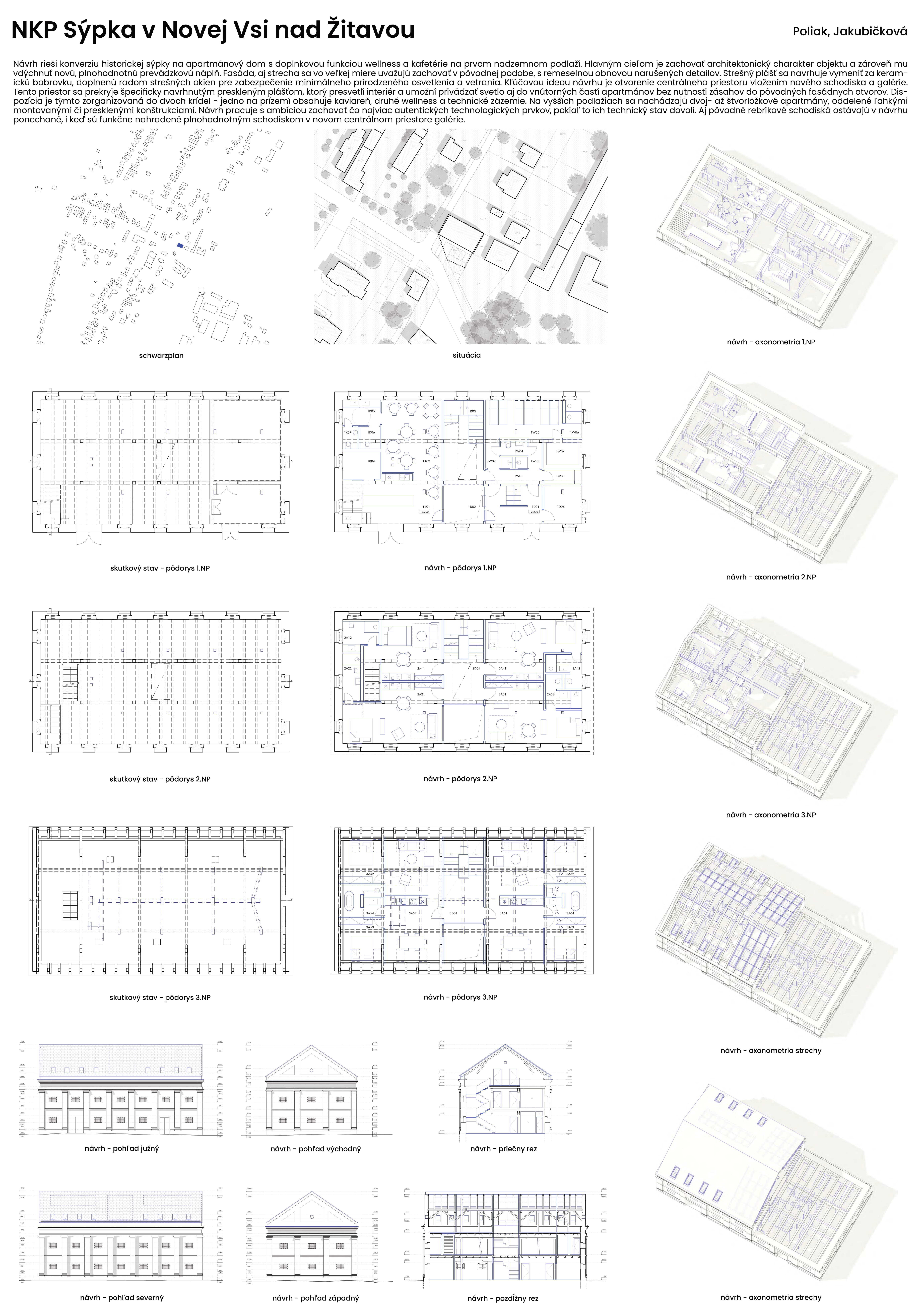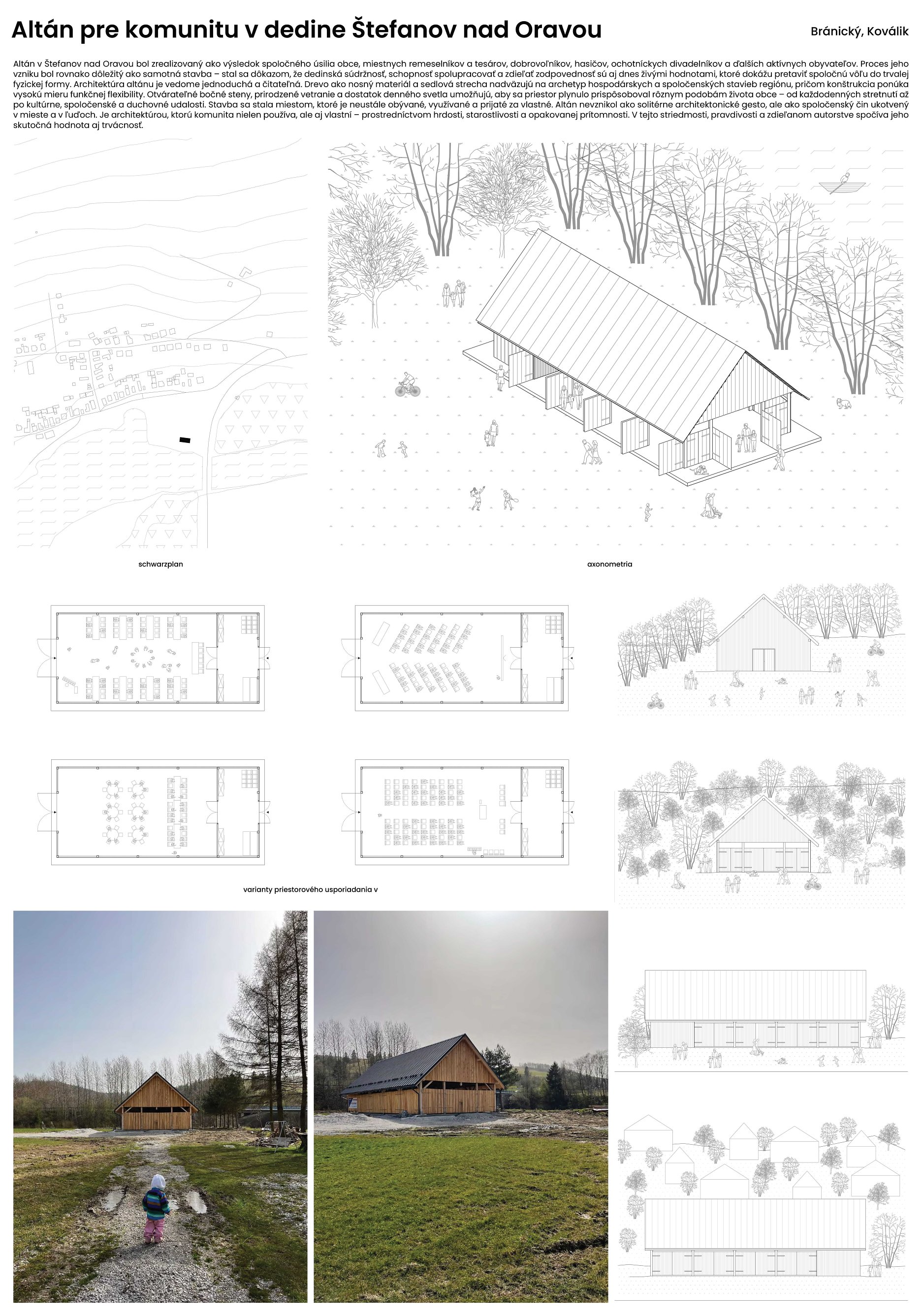 Umelecká činnosť prezentovaná v tomto súbore projektov zachytáva rozmanité polohy súčasnej architektonickej praxe – od verejných stavieb a komunitných zásahov, cez konverzie existujúcich objektov, až po drobné intervencie v krajine a interiéri. Spoločným menovateľom týchto prác je citlivý vzťah ku kontextu, primeraná mierka, udržateľnosť a zodpovednosť voči prostrediu i spoločnosti.