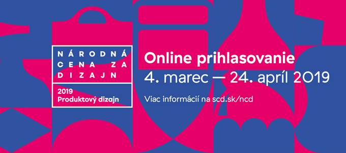 Slovenské centrum dizajnu v spolupráci s Ministerstvom kultúry SR vyhlasuje nový, v poradí už 16. ročník súťaže Národná cena za dizajn.Prihlasovanie diel do súťaže bude prebiehať v termíne 4. 3. – 24. 4. 2019 prostredníctvom online formuláru. Súťaž je v roku 2019 zameraná na produktový dizajn a je určená pre profesionálnych produktových dizajnérov, študentov dizajnu a súvisiacich odborných disciplín, iných odborníkov pracujúcich v oblasti produktového dizajnu a klientov v oblasti produktového dizajnu.