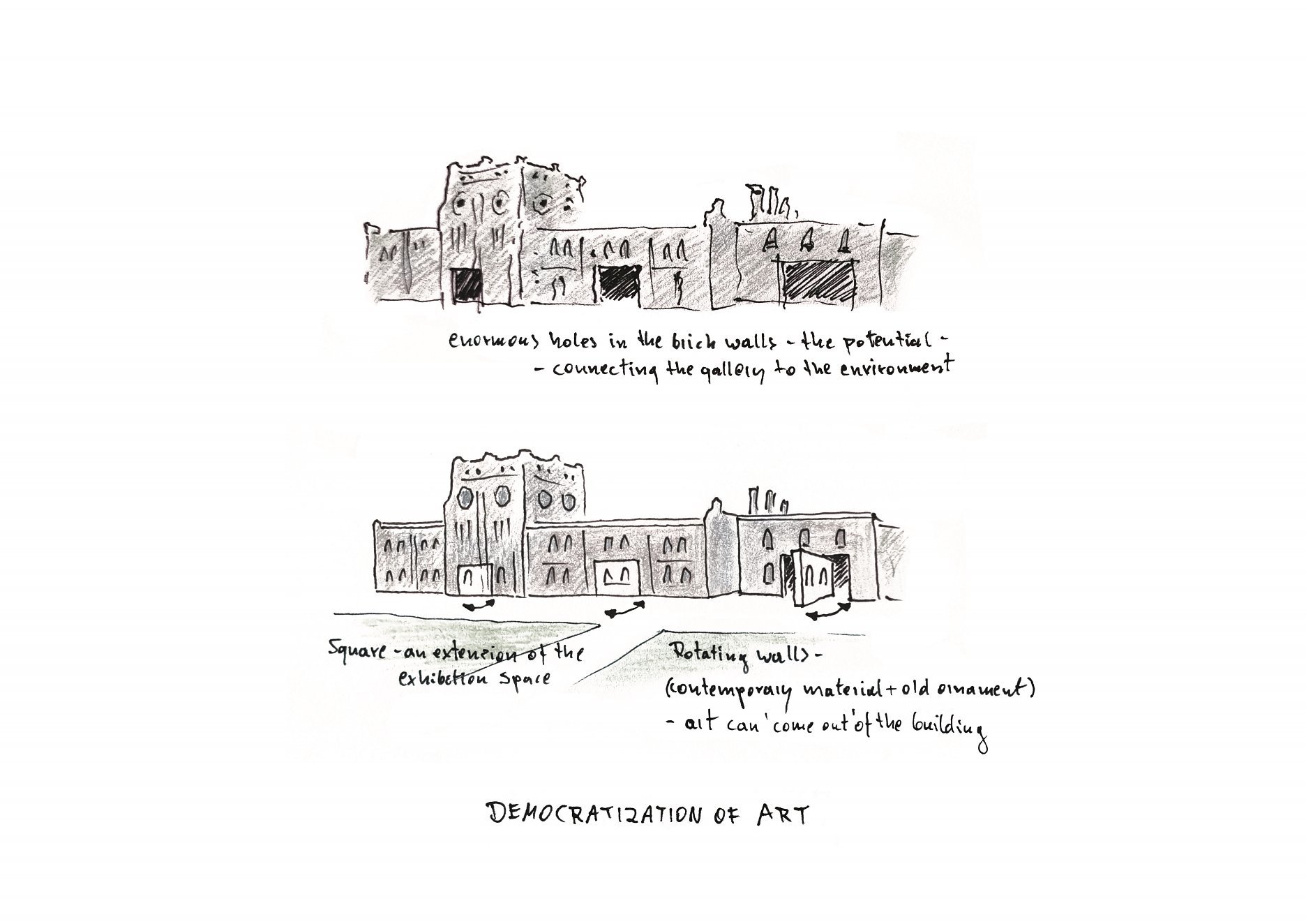 “Záchrana industriálneho objektu a jeho premena na galériu umenia. Okolitý svet s umením spájajú otočné steny. Kontaminovaný priestor v okolí pôvodného bitúnka sme transformovali na umelecký park plný biodiverzity.”