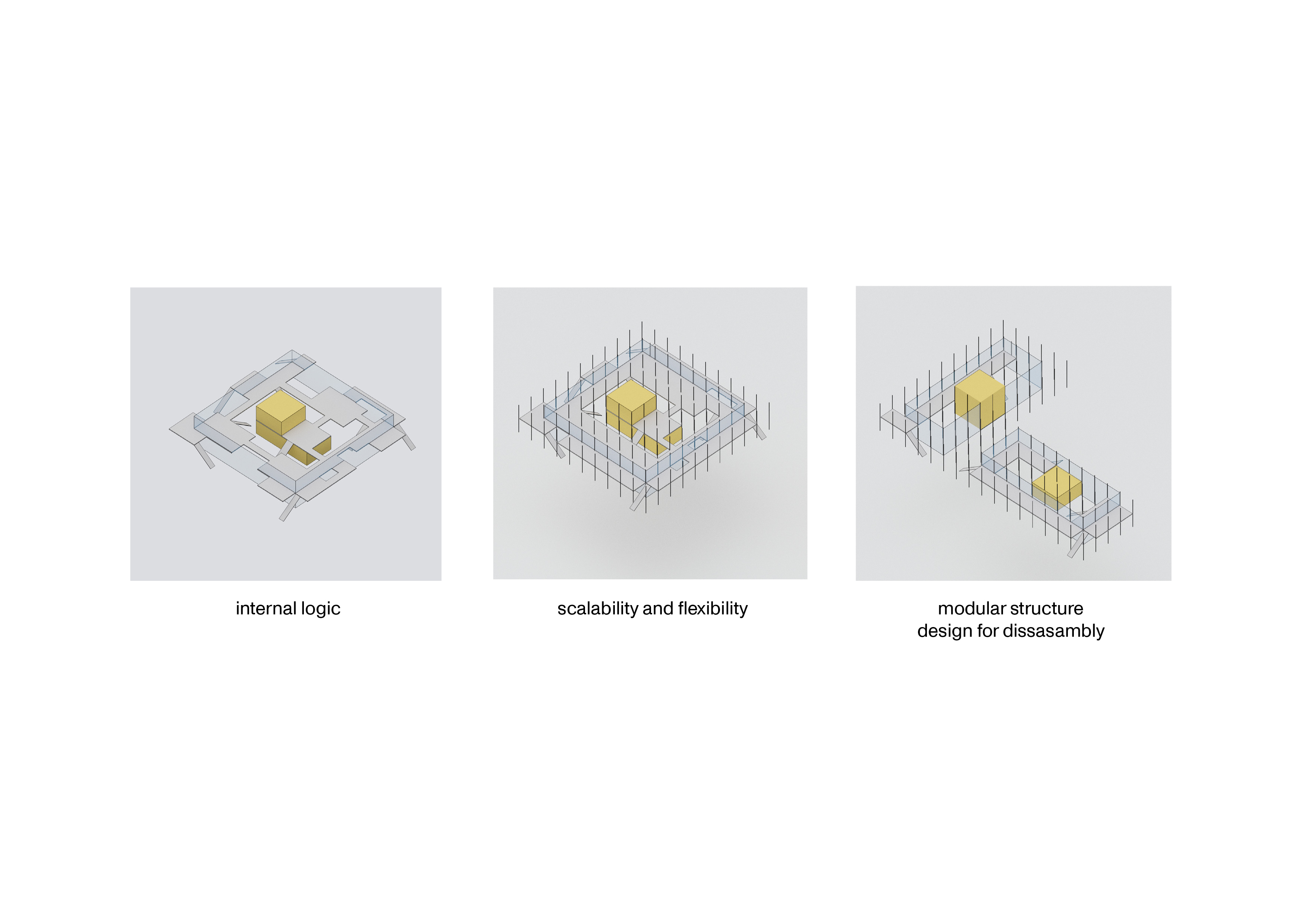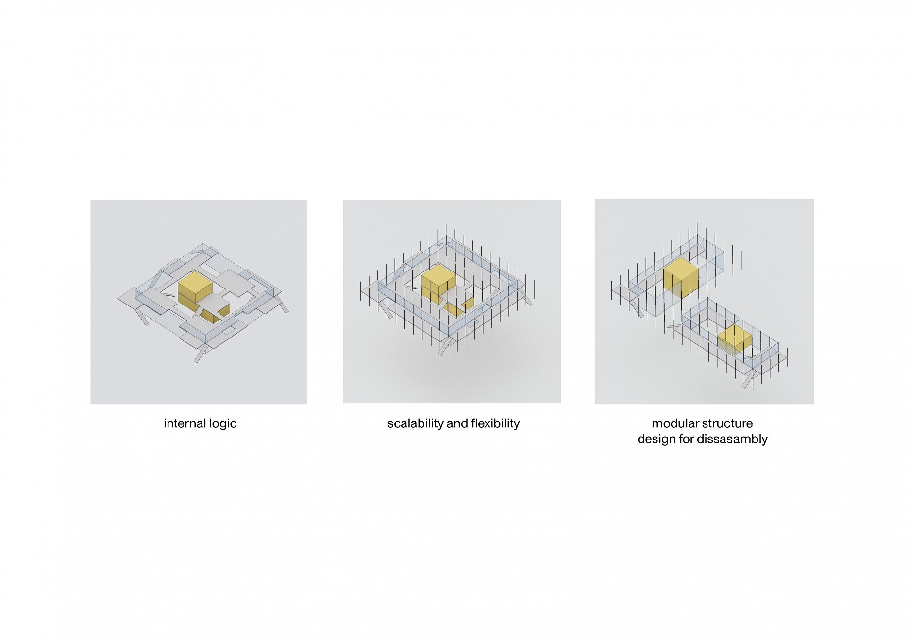 “Študijný pavilón v areáli Technickej univerzity v Braunschweigu je koncipovaný ako otvorený priestor navrhnutý pre rôzne vzdelávacie a voľnočasové aktivity. Princíp ´superštruktúry´, ktorá umožňuje používateľom meniť a novo konfigurovať dispozíciu tak, aby zodpovedala stále sa meniacim požiadavkám v kontexte rýchlo sa rozvíjajúceho kampusu.”