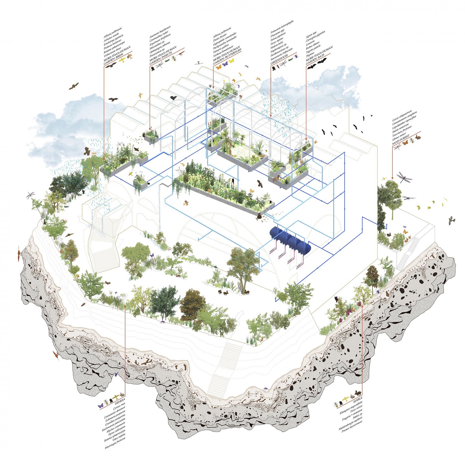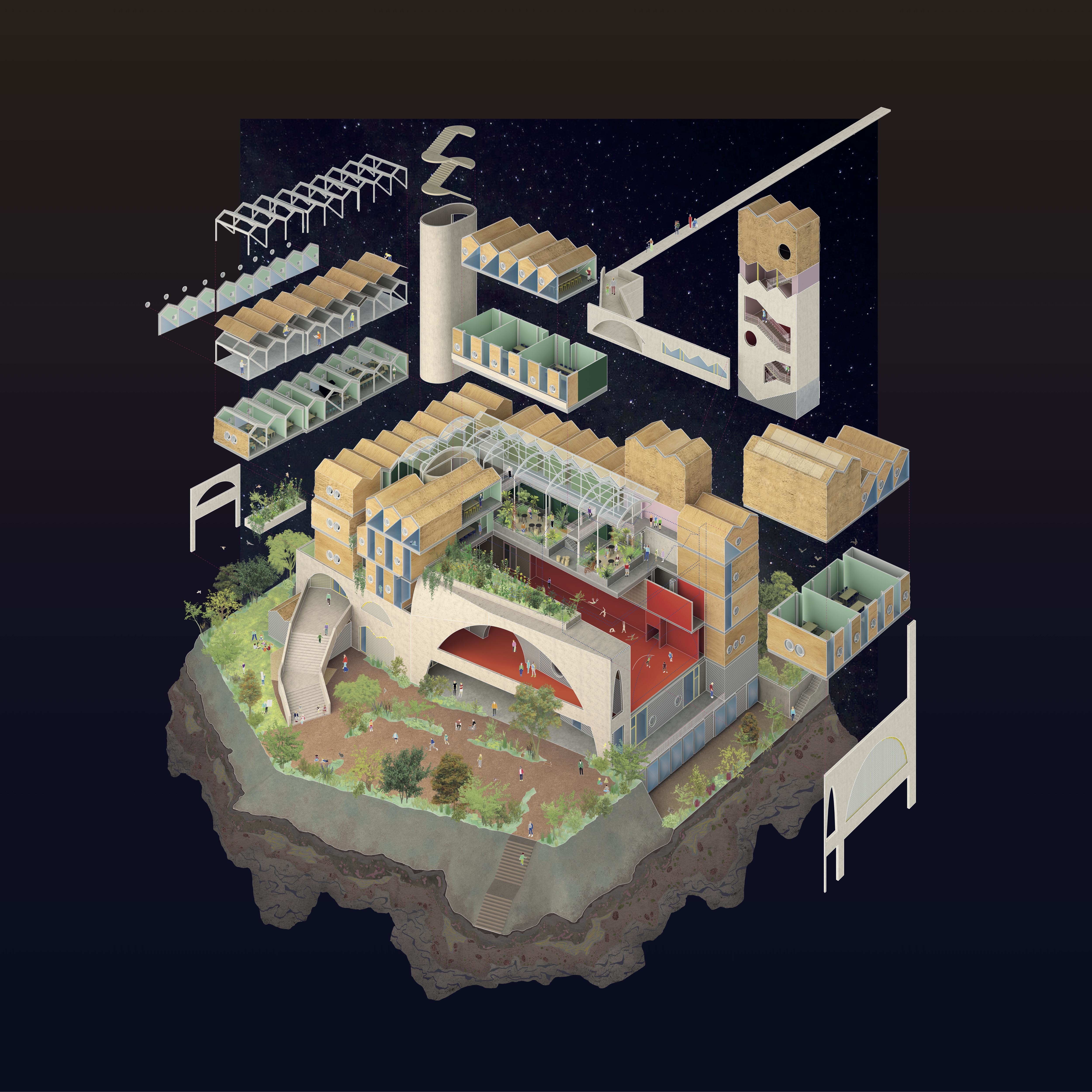 “Inovatívna novostavba, ktorá vznikla v úzkom dialógu s učiteľmi, študentmi a rodičmi. Rozvíja ich nápady, nadšenie, vyhýba sa priemerovaniu a homogenizácii. Komplikovaná vrstevnatosť prostredia sa stáva čitateľnou a zážitkovou. Škola funguje ako súbor rôznych podnebí, ekosystémov, architektonických tradícií a štýlov. Výsledok podnecuje zvedavosť a kolektívne sebavzdelávanie”