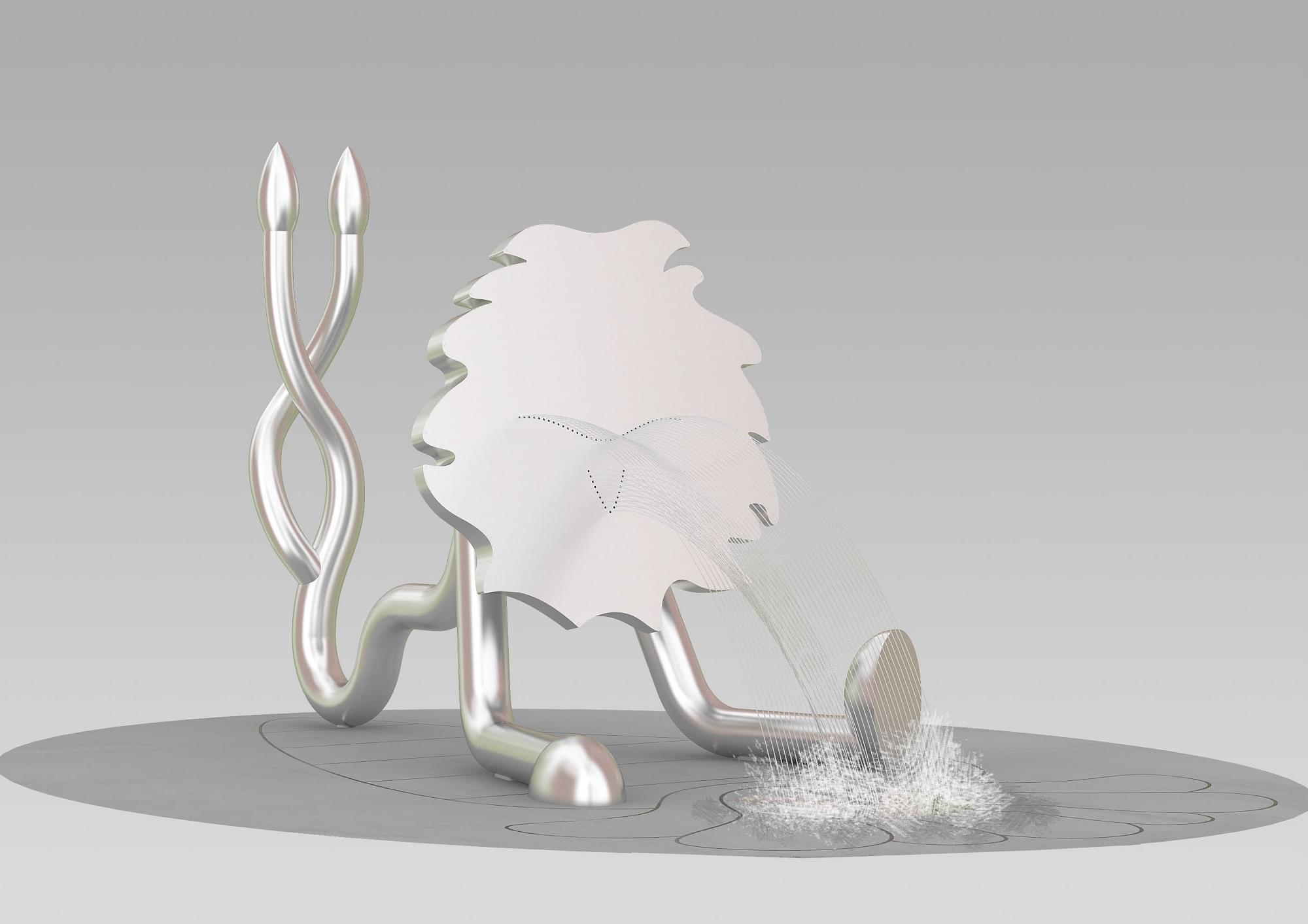 "Návrh vychází z přímočaré symboliky, která se váže k lokalitě. Ústřední motiv objektu se sestává z ikonického dvouocasého lva a cukrové řepy. Při historické rešerši nás zaujala zmínka o ochranné známce, kterou cukrovar používal (lva s dvěma ocasy) jako výraz českého podnikání. Přestože je tento heraldický symbol spjat obecně s českými zeměmi a státním znakem, pro nás v tomto případě znamená hlavně ochránce místa a historického odkazu. Kombinací s cukrovou řepou připomínáme významnou minulost spjatou s průmyslovou érou. Lev jako ležící skulptura na terénním podkladu ve tvaru řepného kořene s listy, proto název ´Lev co hlídá řepu´. Touto jasnou a jednoduchou hrou znaků chceme podpořit atmosféru náměstí tak, aby byl objekt srozumitelný pro obyvatele či návštěvníky a mohl být zároveň výrazným místotvorným prvkem."
