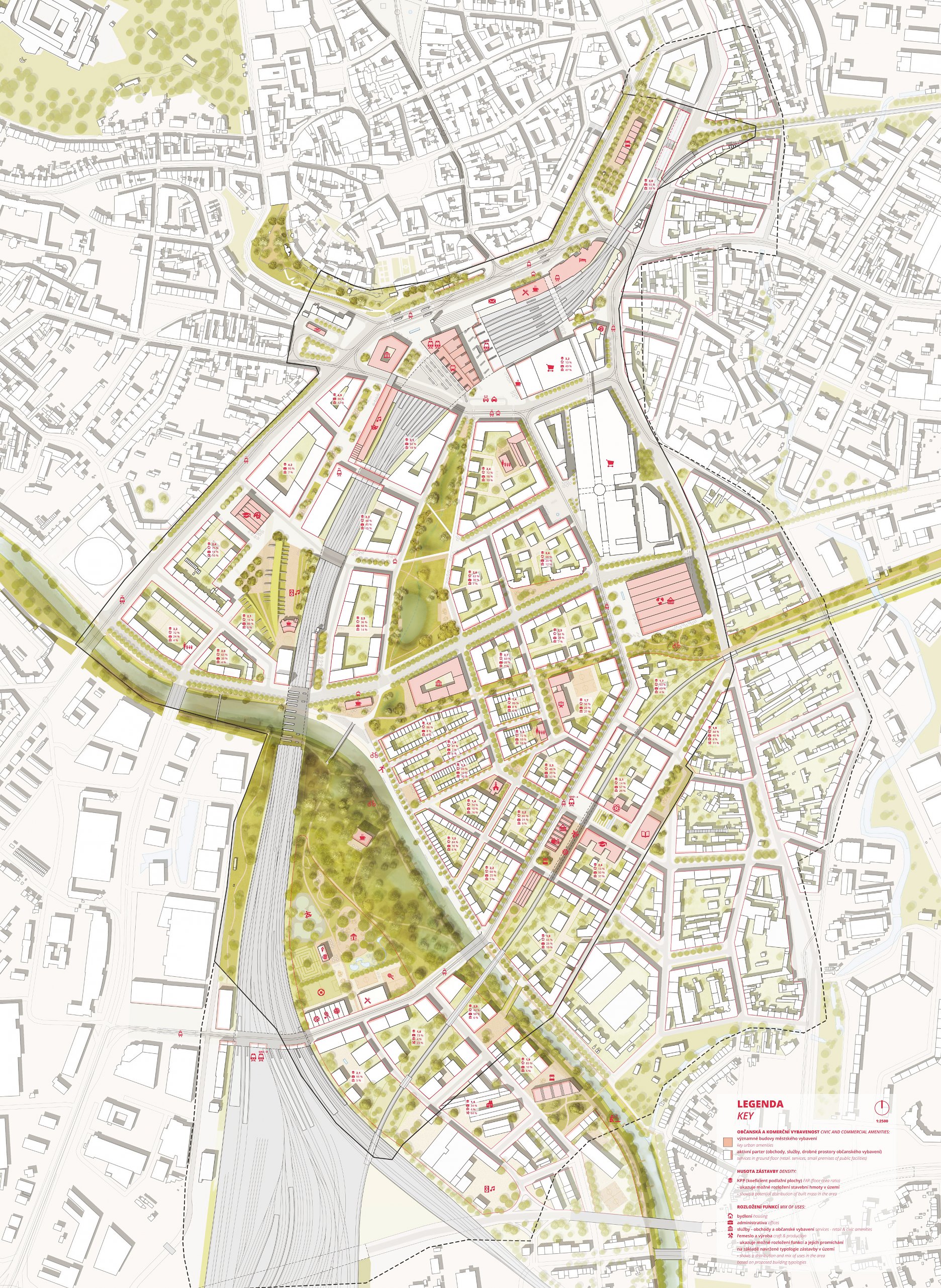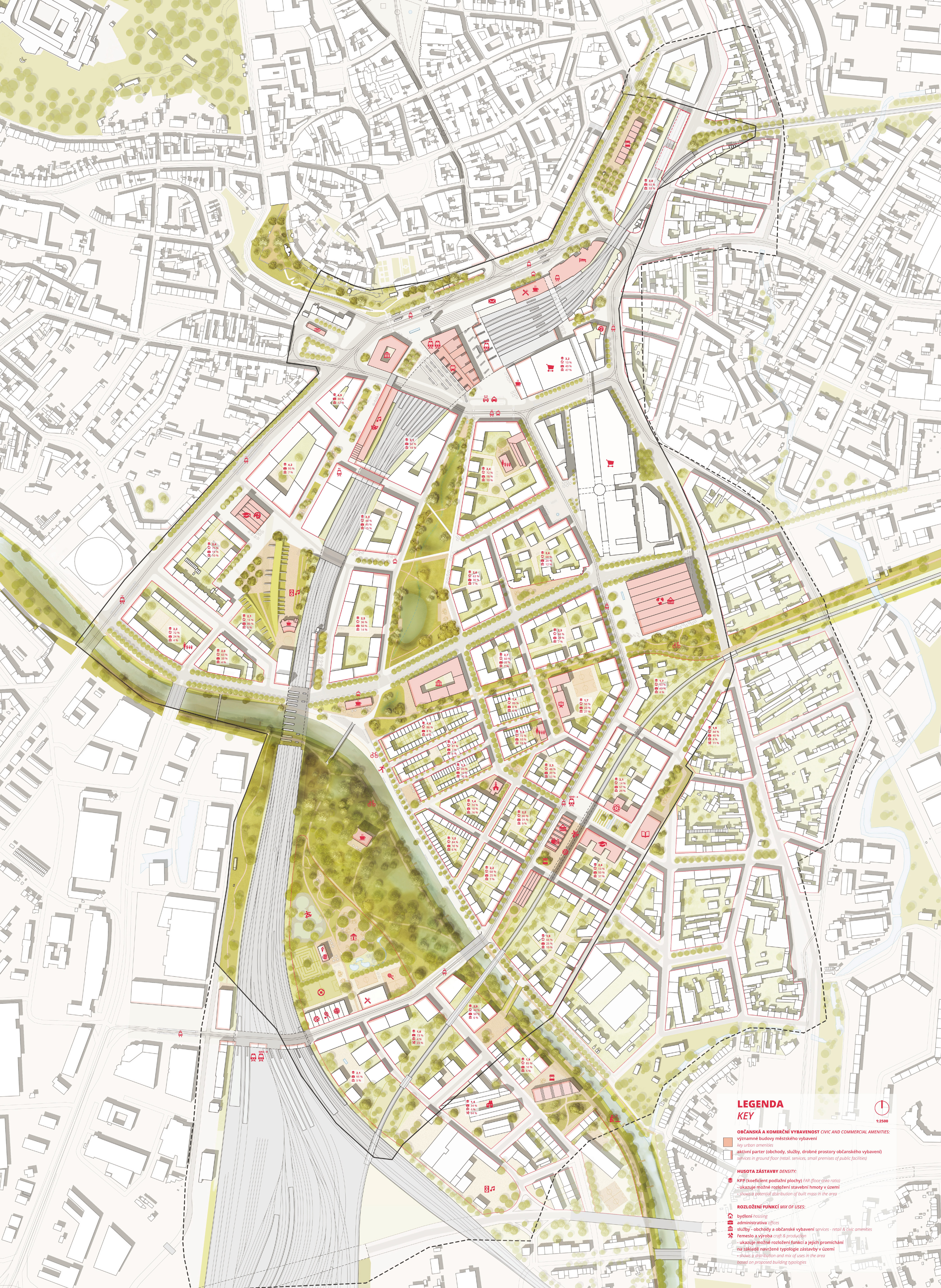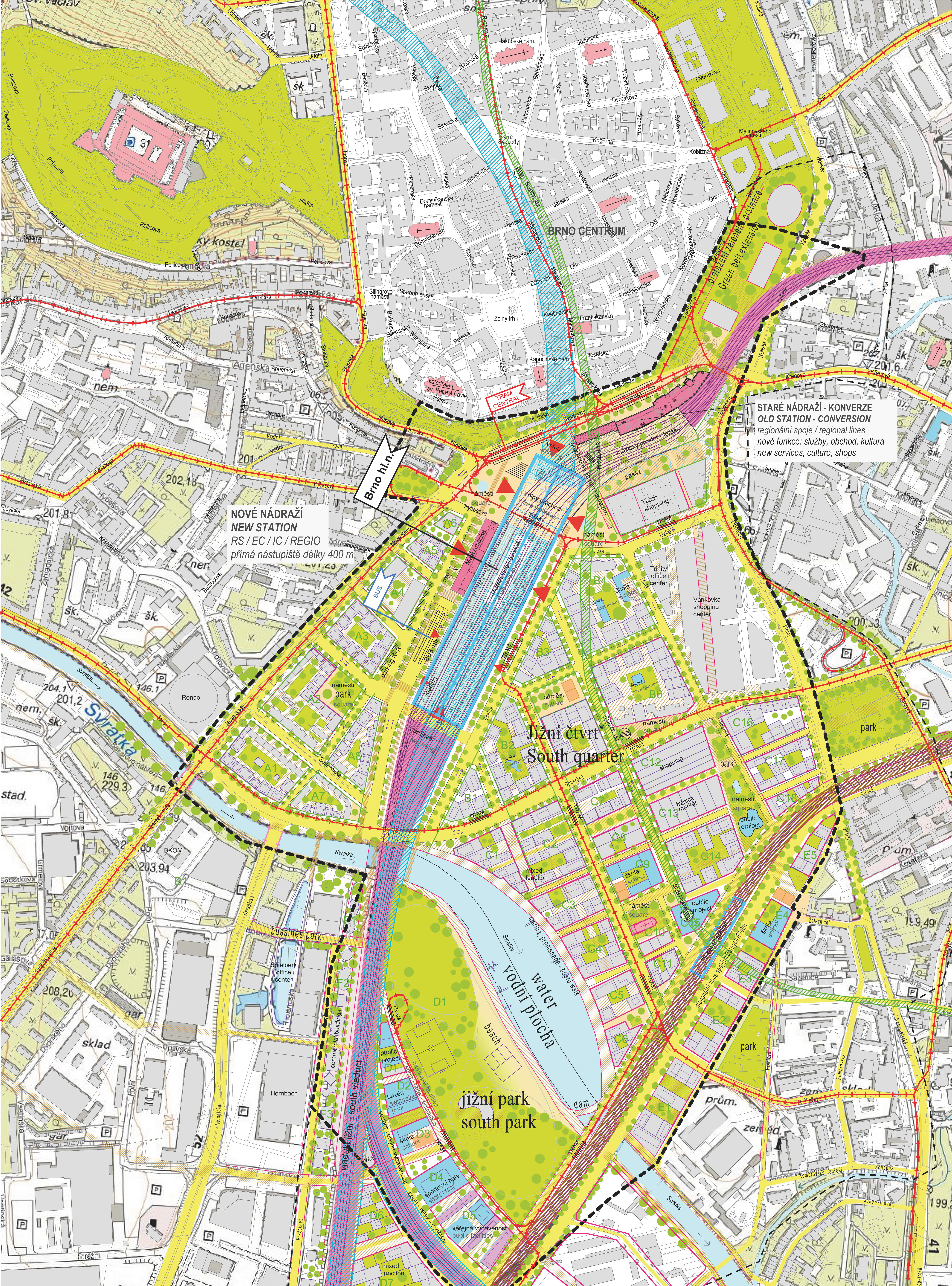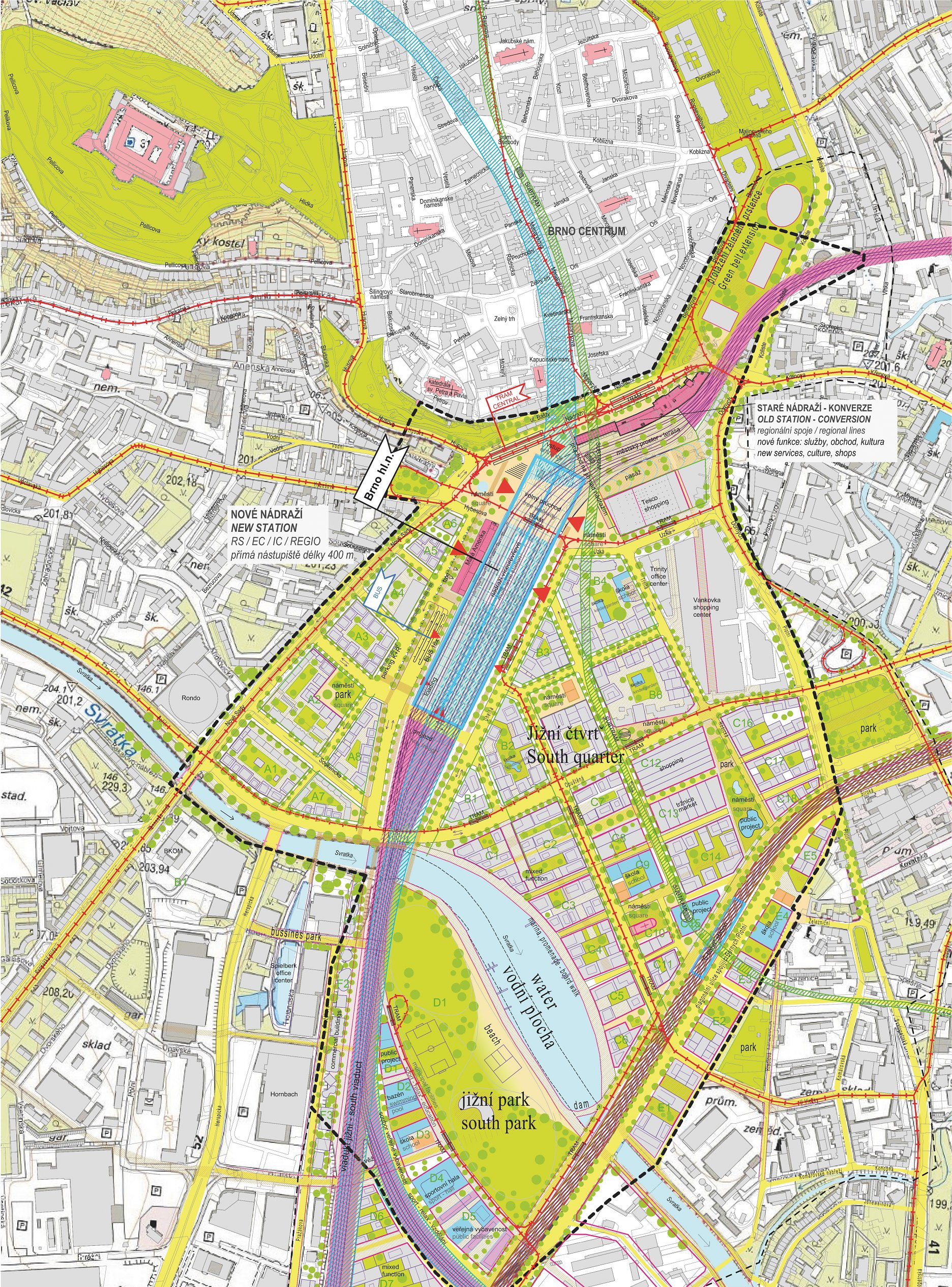 Do súťaže bolo zaslaných 58 návrhov z Českej republiky, Európy, USA a Číny. Vo veľkej konkurencii zvíťazili UNIT architekti, ktorý pre júžnú časť centra ponúkli realistický koncept postupného dorastania s atraktívnym centrálnym parkom, dôrazom na rozmanitosť a kvalitu bývania a rešpektom k charakteru okolitých štvrtí.