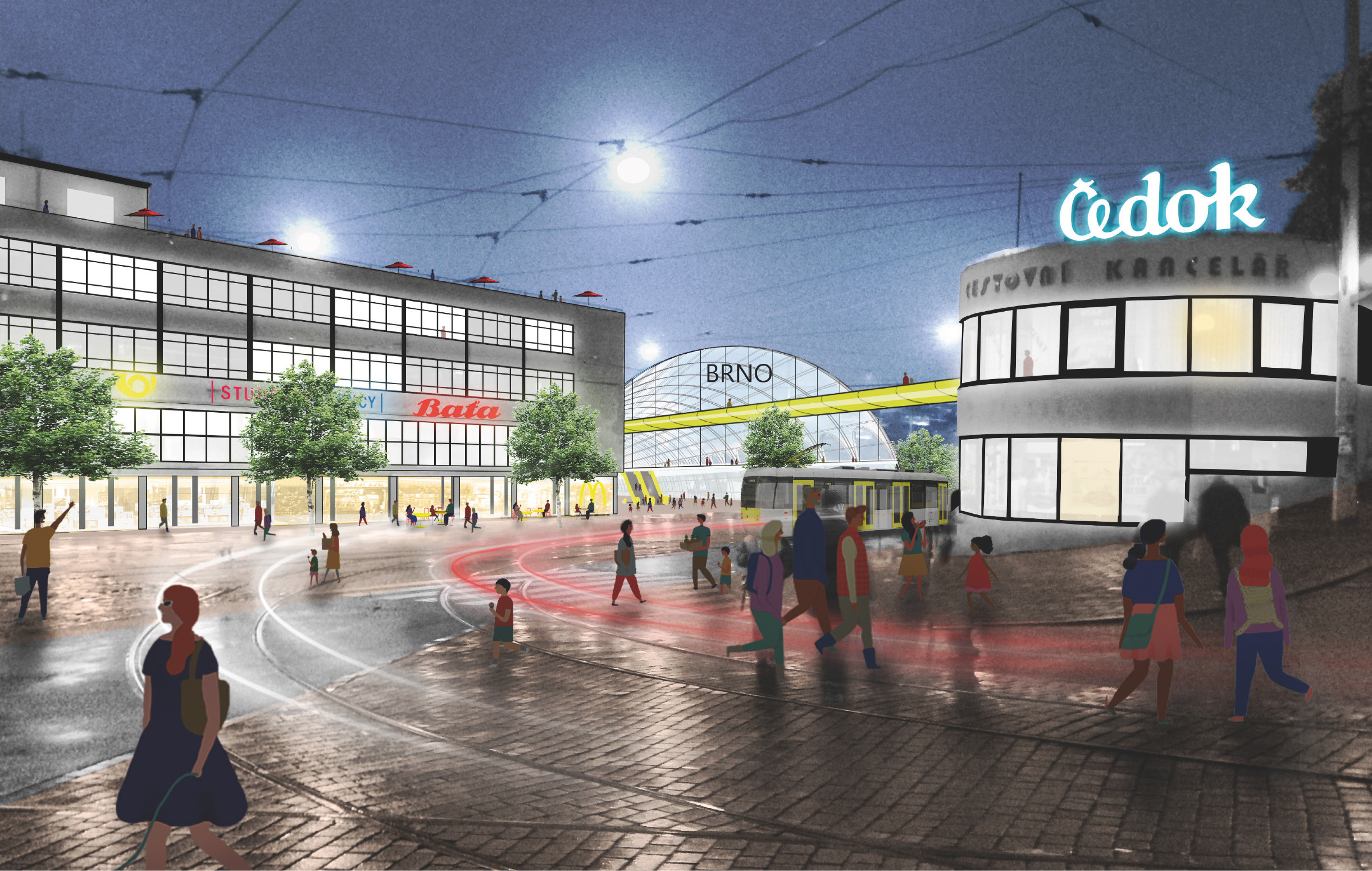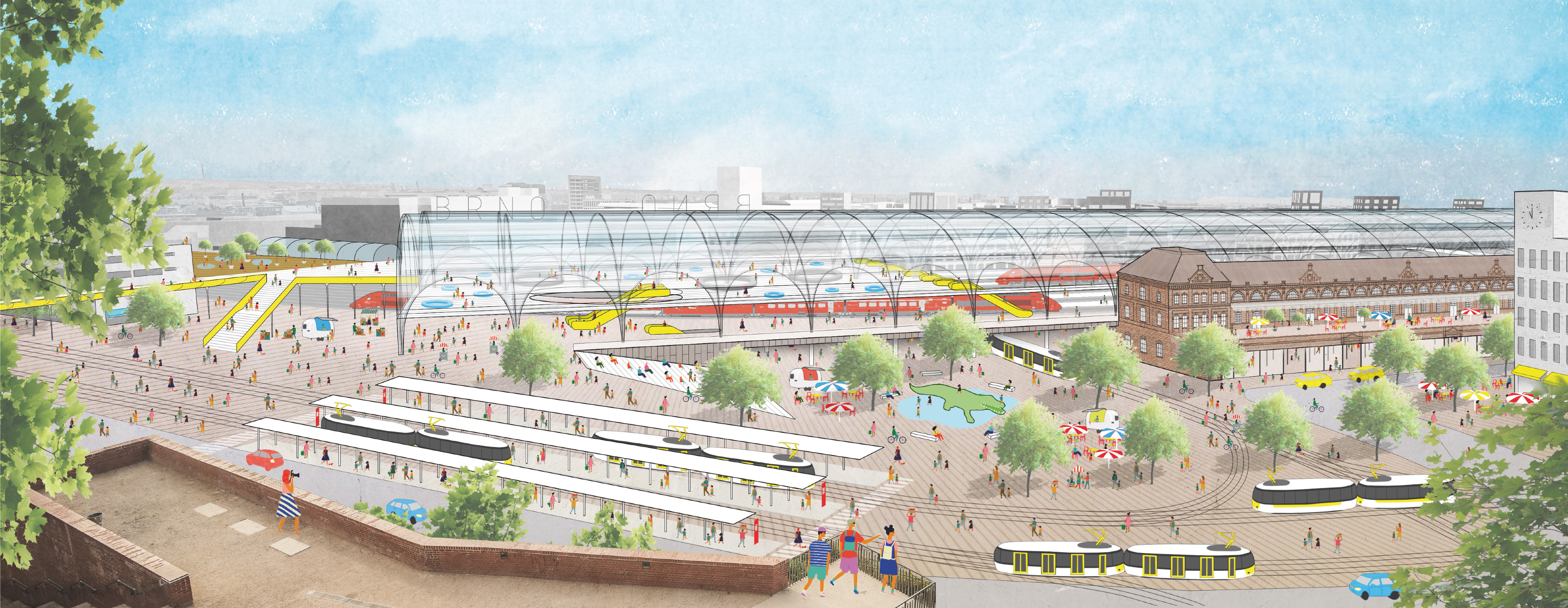 U návrhu, který je oceněn třetí cenou porota také ocenila jasnou vizi a pestrost nové čtvrtí a v neposlední řadě "jako velkou přednost projektu porota vnímá koncept opětovného využity historických budov původního nádraží a Malé Ameriky, stejně jako odkrytí arkád viaduktu."