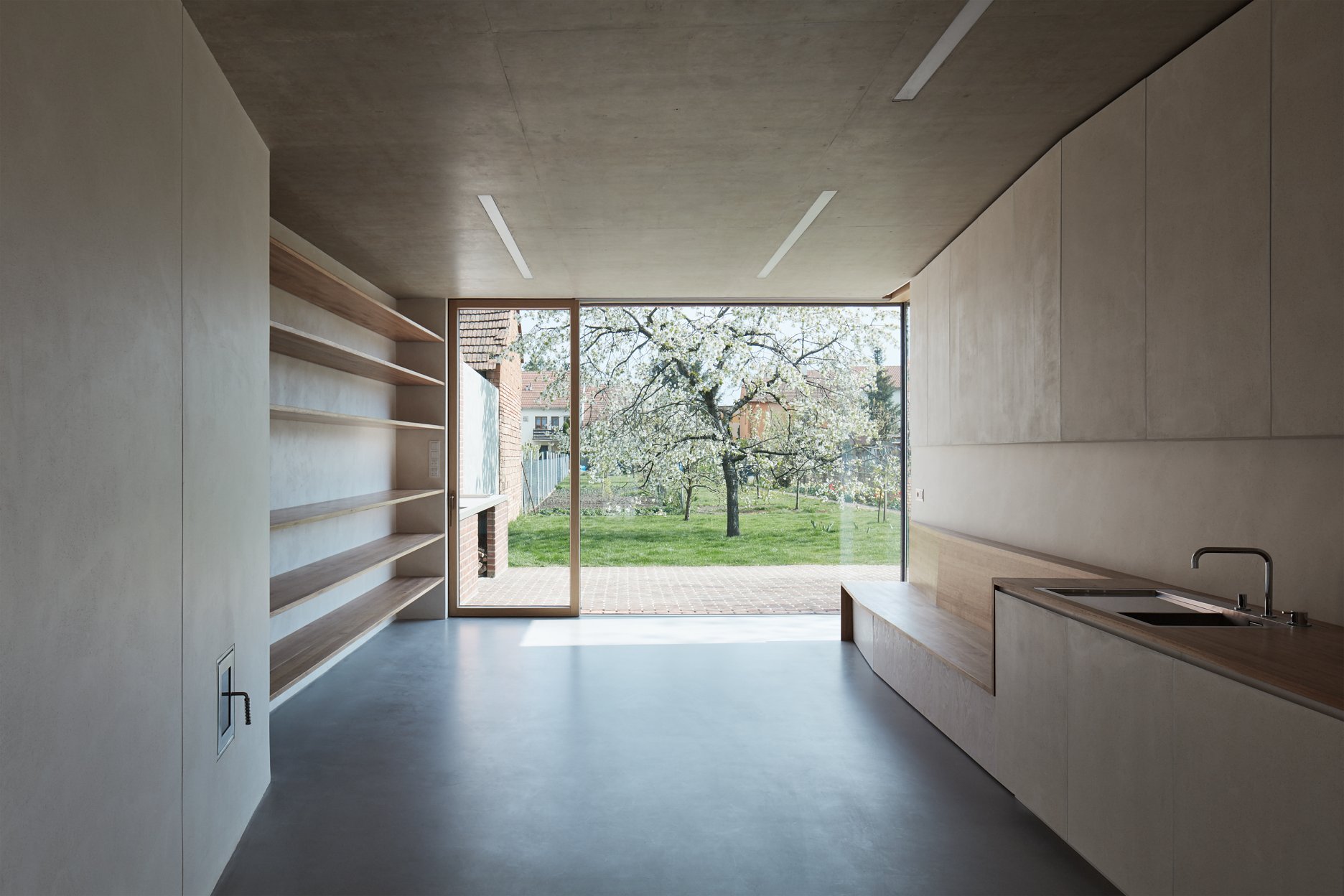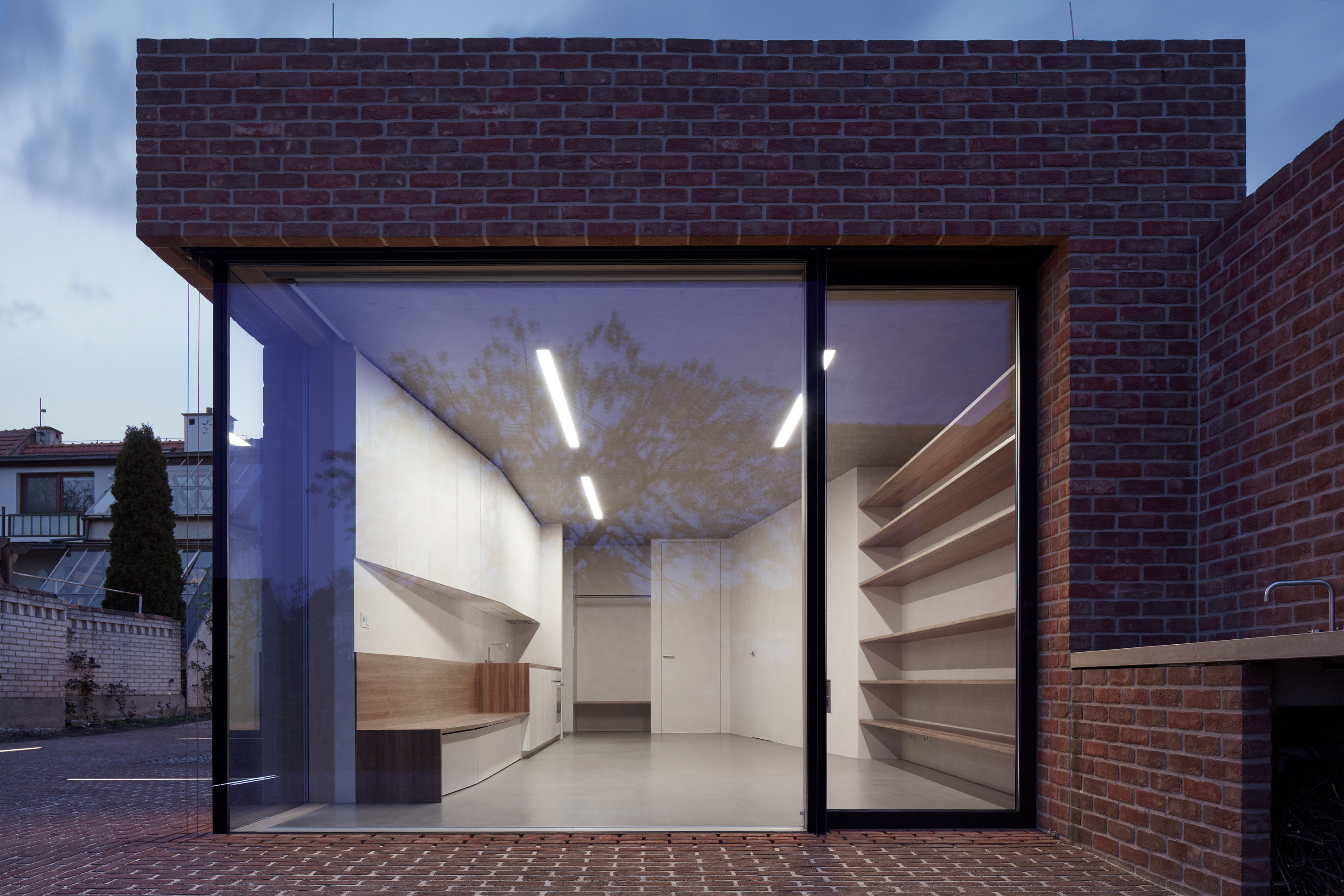 Dom v tehlovej záhrade - vlastný dom architekta Ján Proksu je tehlová novostavba citlivo a elegantne zasadená do tradičnej zástavby obce Prušánky.