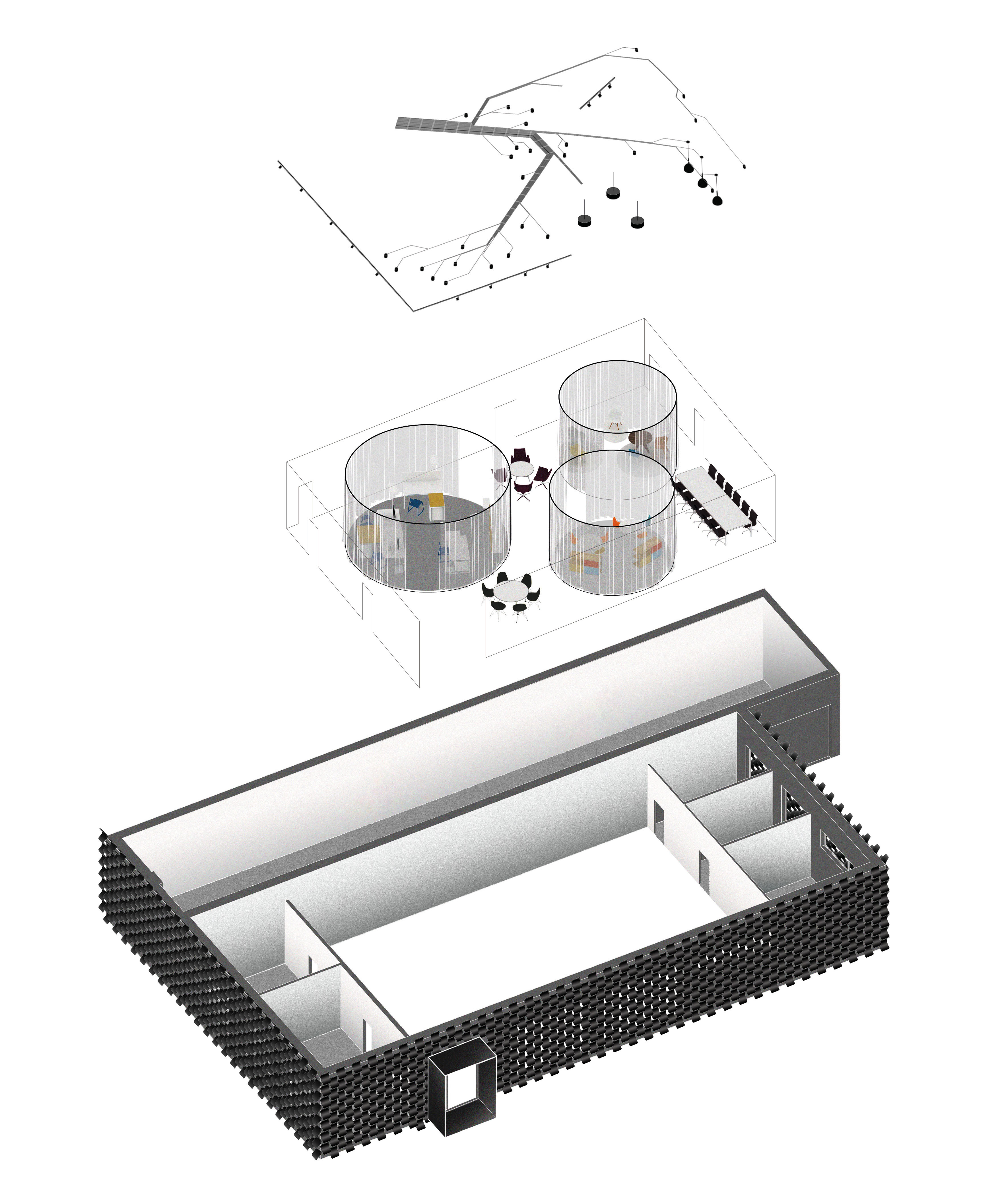 Jak je možné - v soutěži o nejlepší architektonický projekt - posuzovat krabici pokrytou plastovými židlemi „ztracenou“ v obecném kontextu mezi předměstskou výstavbou a silnicí? Ve své podstatě není Galerie nábytku v Brně vlastně nic než jen předměstská krabice programově podobná svým sousedům - a přesto se zdá být víc než jen to - lehoučká interpretace svého programu, s jasným vztahem k nejbližšímu okolí a ke kovovému „světu“, ve kterém se snaží zabydlet: využitím stávající budovy, odstraněním všech jejích zbytečností, obalením polykarbonátem a oblečením do „šatů“ skládajících se z toho, co se v ní vyrábí - plastových skořepinových židlí. Židle vytvářejí zároveň značku, obraz i povrch. Člověk musí tento projekt ocenit za jeho odvahu a úspěšný výsledek, za důkaz toho, že žádný program či místo není tak špatné, aby nestálo za (pečlivé) architektonické ztvárnění.