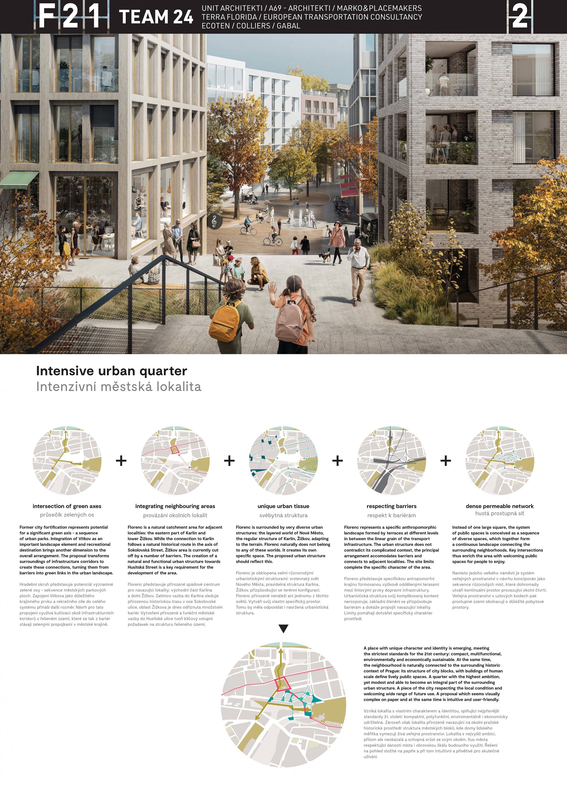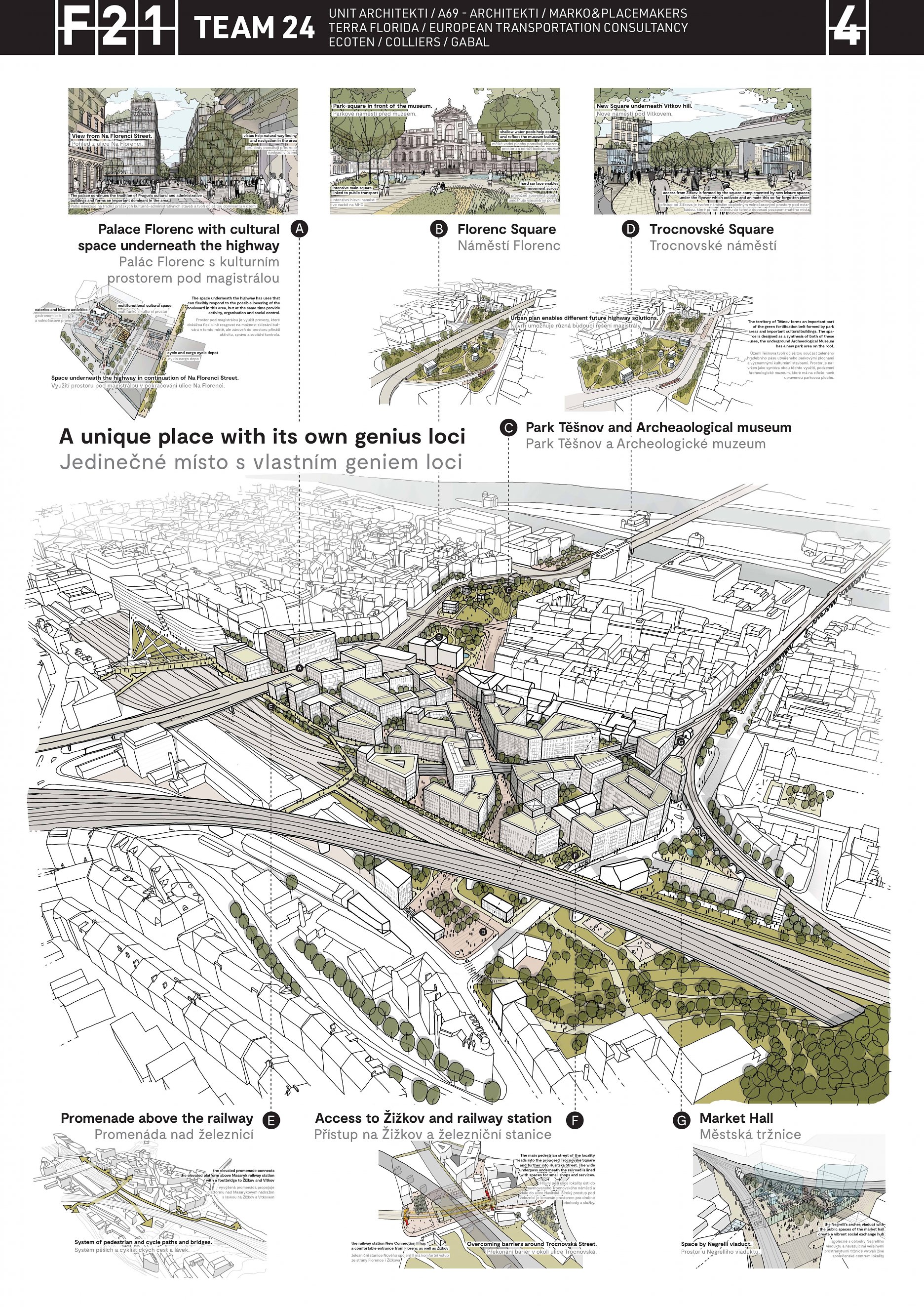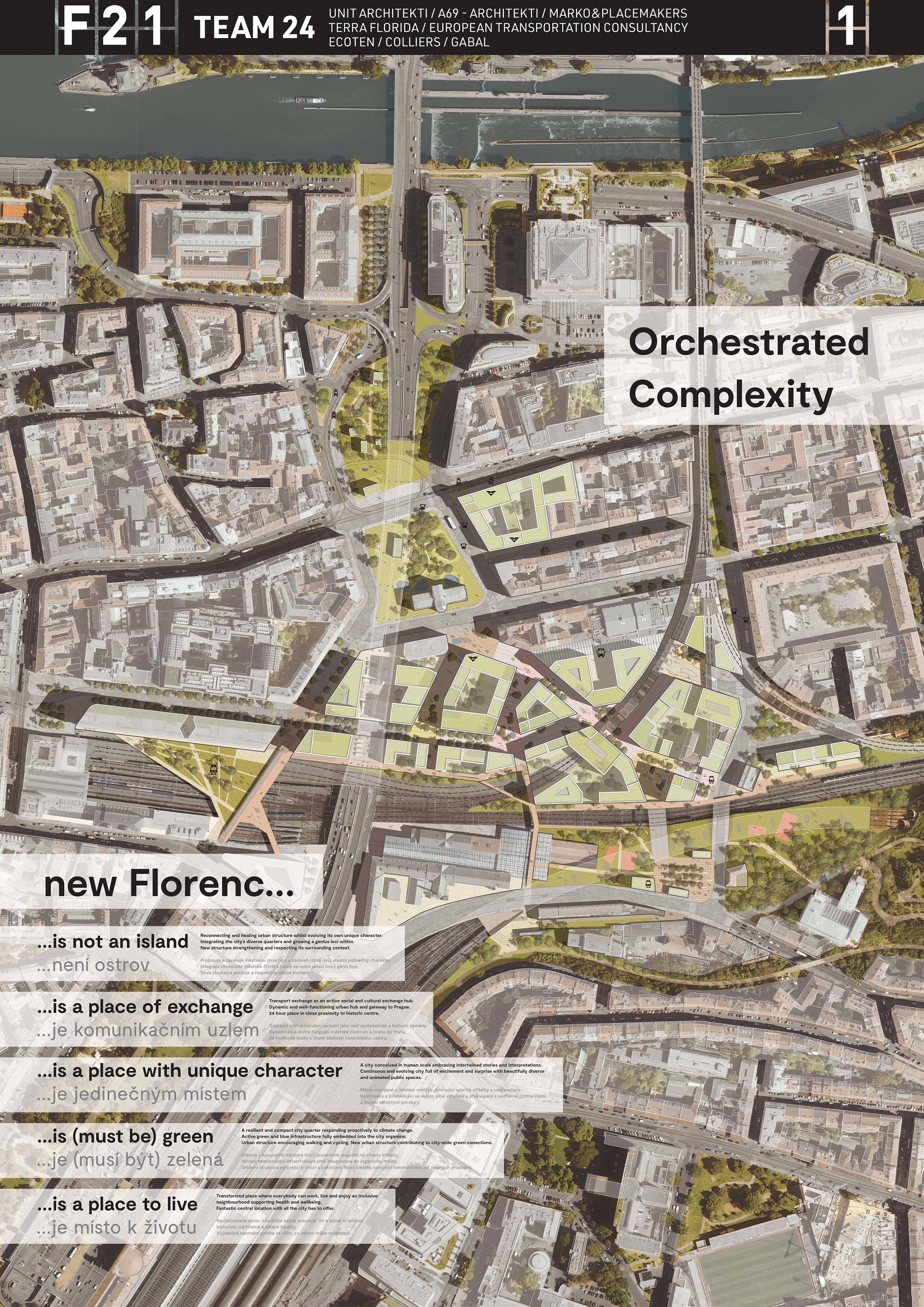 "Navrhujeme, aby se Florenc 21 stala obojí, klíčovým infrastrukturním uzlem pro Prahu i živým městským centrem, nikoli urbánní černou dírou. Namísto prosazování myšlenky shora dolů s nesouvisejícími městskými organizacemi nebo s nevhodnou logikou, navrhujeme podpořit a vylepšit stávající kvality města a lokality – historické a prostorové kvality Negrelliho viaduktu, Těšnovský park na severu, novou výstavbu v lokalitě, blízkost centra města. Všechny tyto prvky přispívají a formují nový urbanistický rozvoj.