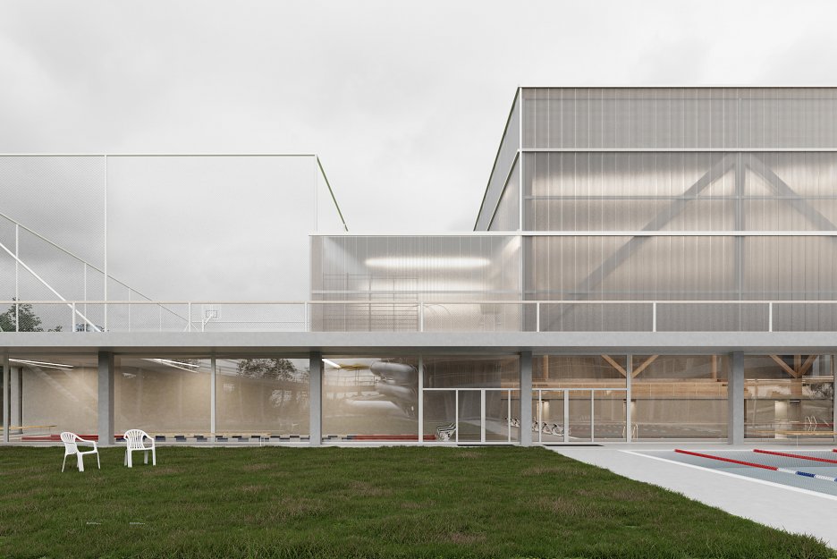Víťazný návrh vsadil na prepojenie jednotlivých častí pobytovými ochodzami. Vzniká tak kompaktný blok, sústredený okolo vonkajšieho dvora. Architektúra odráža atmosféru a účely priestorov. Architekti zvolili hygienickú nerez, ľahké drevené konštrukcie, translucentnú polykarbonátovú fasádu a siete porastené vegetáciou. Počíta sa s inteligentným technologickým riešením vodného cyklu a energiou obnoviteľných zdrojov. Bazén v lokalite Borská pole môže v budúcnosti tvoriť príjemné rozšírenie vysokoškolského kampusu a mestskej časti, ktoré ešte len hľadá svoju identitu.