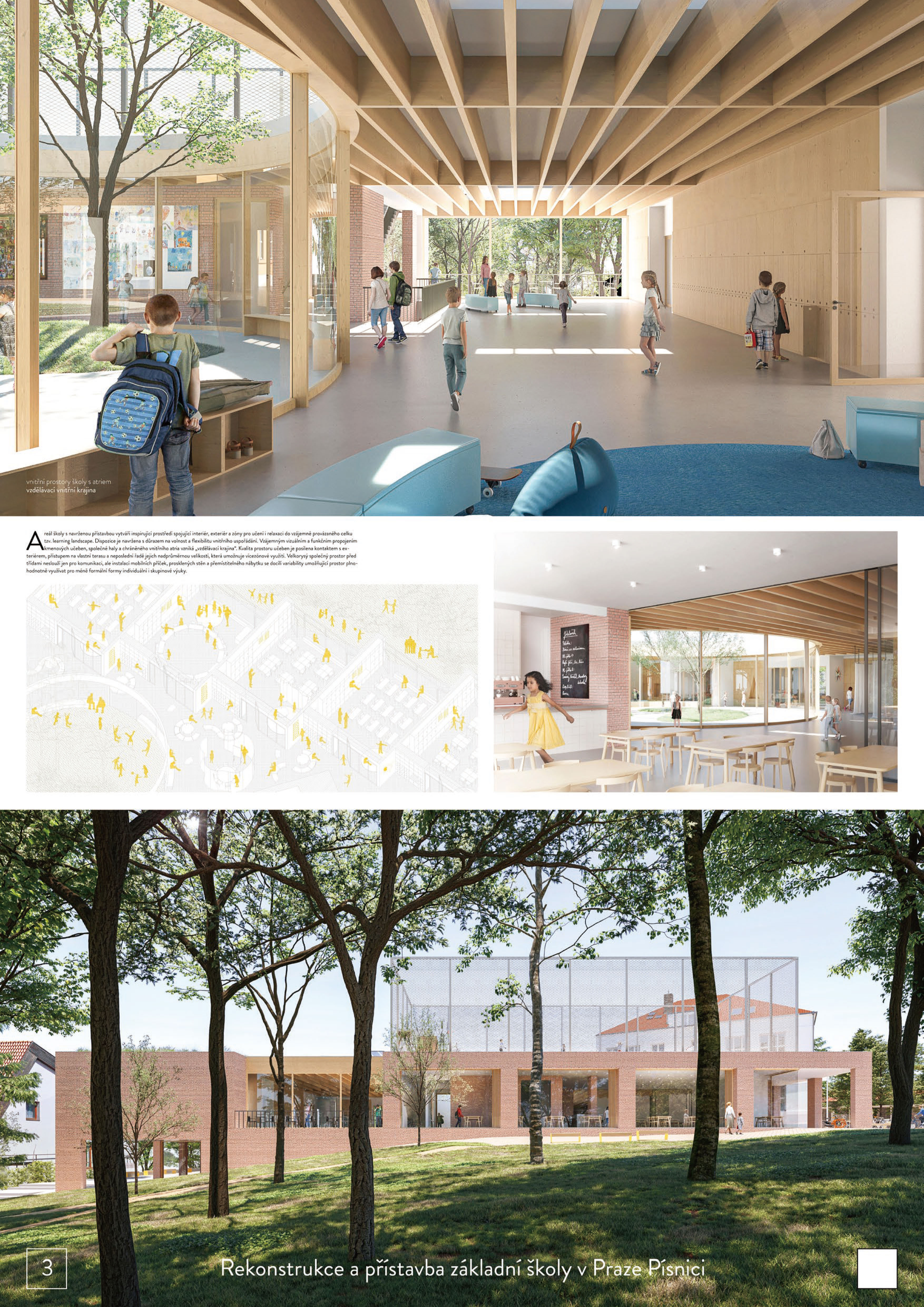 Včera bola vyhodnotená súťaž na revitalizáciu budovy a areálu bývalého Gymnázia Mateja Bela vo Zvolene, pred časom sme publikovali výsledky súťaže na modernizáciu a rozšírenie kapacít základnej školy v Lozorne, alebo kvalitne obsadenú medzinárodnú súťaž "Sportovní hala pro tělesnou výchovu - Nová Paka", v ktorej sa presadil slovenský autorský kolektív. Aj v tomto kontexte predstavujeme výsledky súťaže na rekonštrukciu a prístavbu historickej budovy základnej školy s rozšírenou výučbou jazykov, ktorú Mestská časť Praha - Libuš vyhlásila v decembri minulého roku.