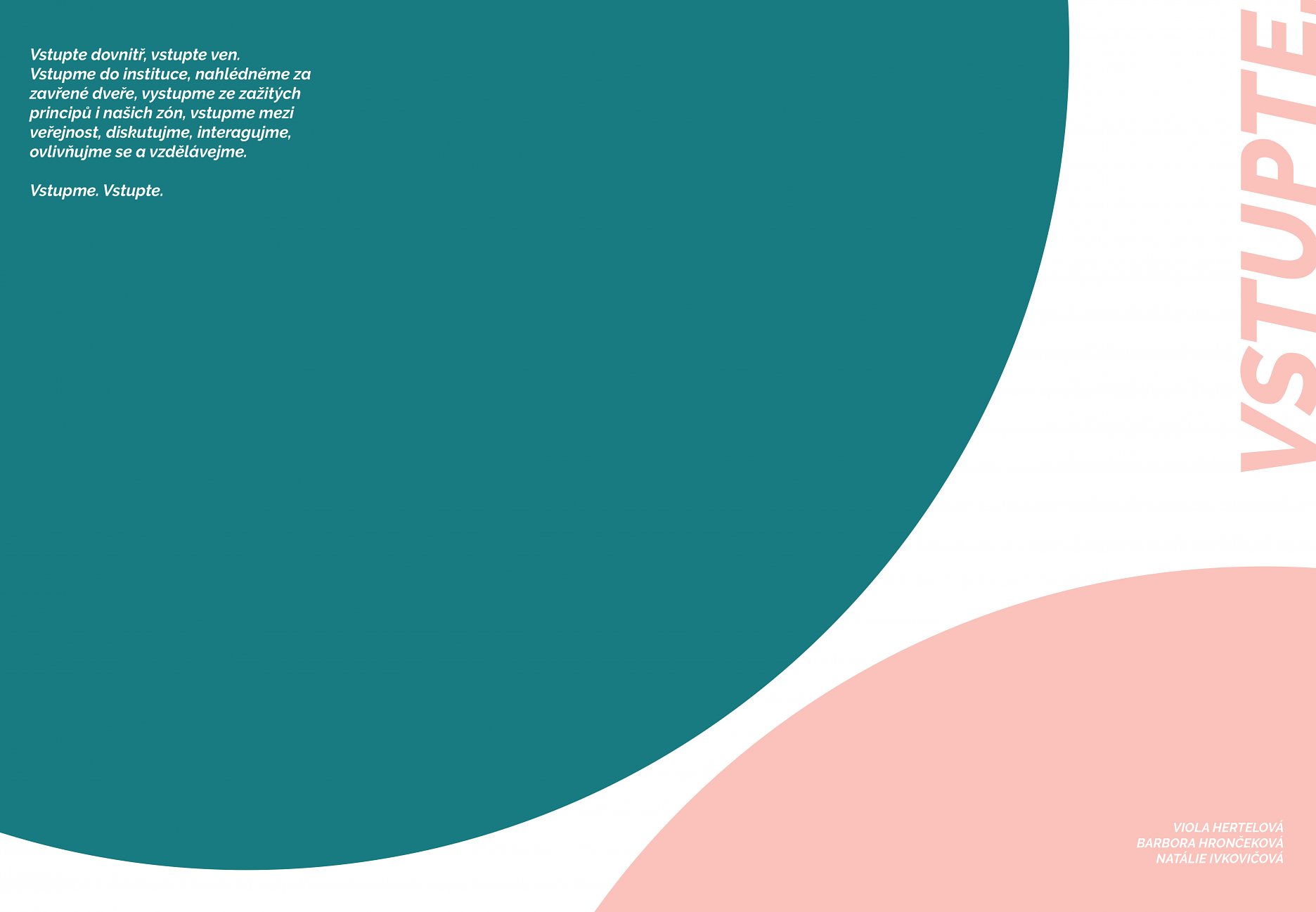 Anotácia: Vstupte dovnitř, vstupme ven. Vstupme do instituce, nahlédněme za zavřené dveře, vystupme ze zažitých principů i našich zón, vstupme mezi veřejnost, diskutujme, interagujme, ovlivňujme se a vzdělávejme. Vstupme. Vstupte.