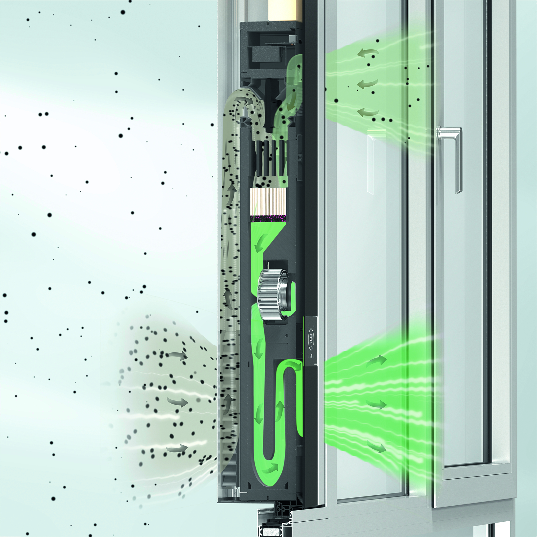 Do okenného profilu integrovaný ventilačný systém disponuje viacúrovňovým vysoko výkonným vzduchovým filtrom, ktorý prichádzajúci vzduch zbavuje nežiaducich nečistôt - prachu a ďalších častíc, škodlivých pre ľudské zdravie a vyskytujúcich sa hlavne v mestách. Pri recirkulácii je vzduch vo vnútri miestnosti čistený tak kvalitne, že žiadne ďalšie filtračné jednotky nie sú potrebné. Najmenšie častice, alergény a škodlivé zlúčeniny pod jeden mikrometer sa zo vzduchu odfiltrujú s účinnosťou 99,5 %. Vysoko účinné čistenie vzduchu je dosiahnuté prostredníctvom tesne zloženej elektrostaticky nabitej polypropylénovej membrány, ktorá je mimoriadne odolná a výkonná. Vrstva vyrobená zo zmesi aktívneho uhlia a manganistanu draselného (KMnO4) eliminuje nepríjemné zápachy, baktérie a toxické látky. Filter, ktorého výmena je veľmi jednoduchá, sa v závislosti na prevádzke a úrovni znečistenia ovzdušia mení po šiestich až deviatich mesiacoch.