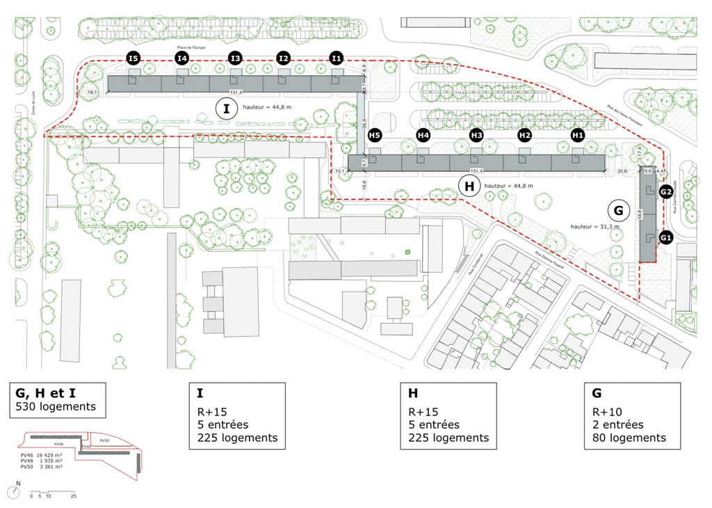 Monumentálne monolitické obytné bloky nepatrili pred rekonštrukciou medzi atraktívne miesta na život. Málo svetla, plytké balkóny, zlé teplotechnické parametre obvodových konštrukcií... Projekt sa zameral na rekonštrukciu trojice bytových domov, ktorých náplň z prevažnej časti tvorilo sociálne bývanie. Ide o prvú fázu programu rekonštrukcie "Cité du Grand Parc" v Bordeaux.