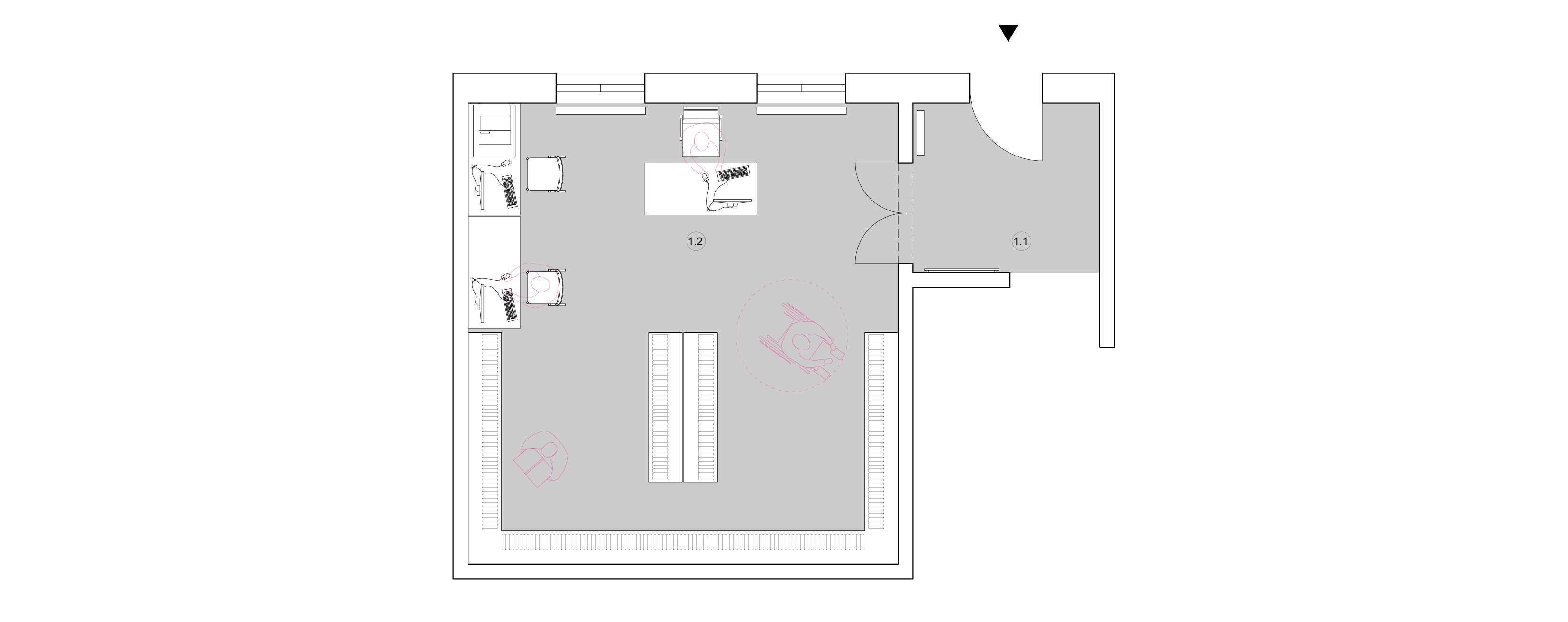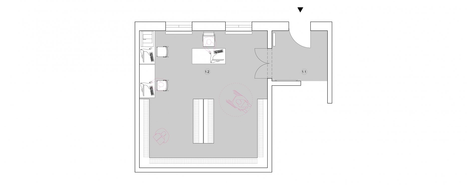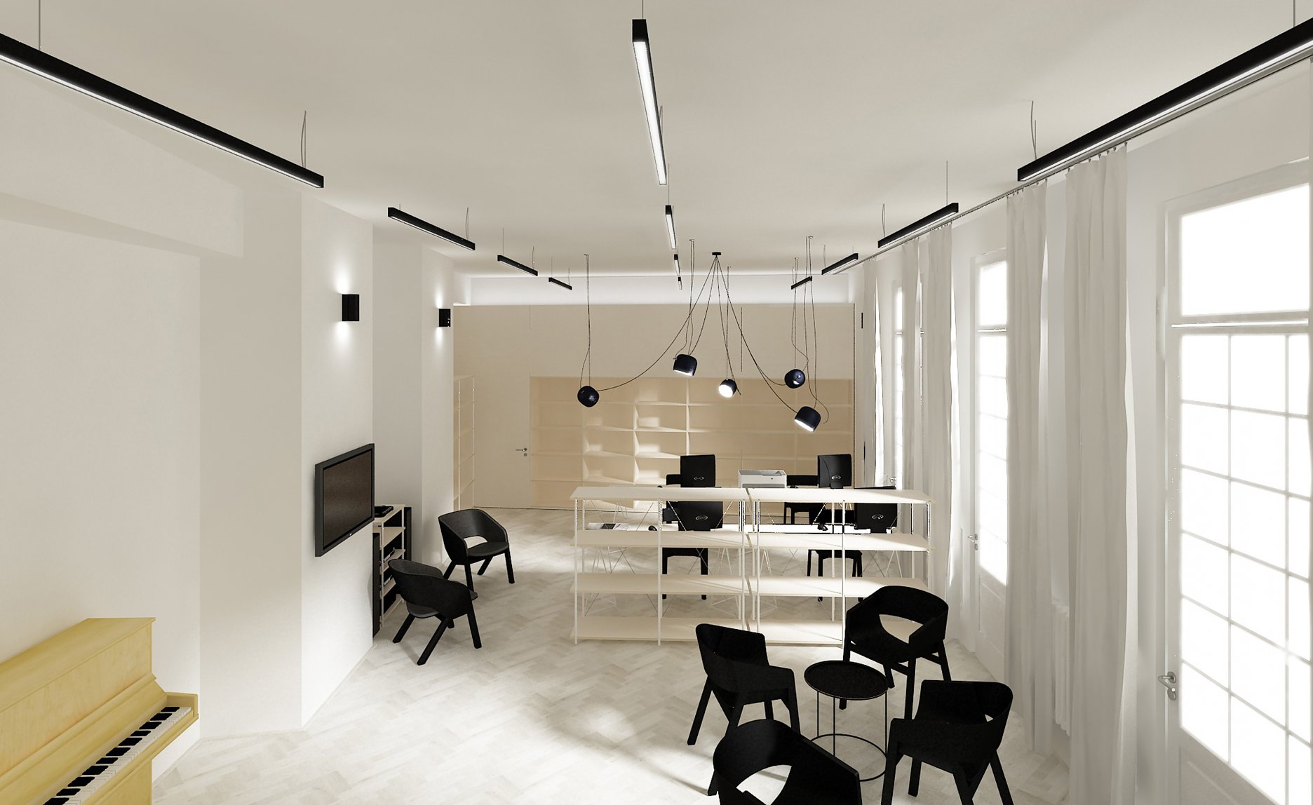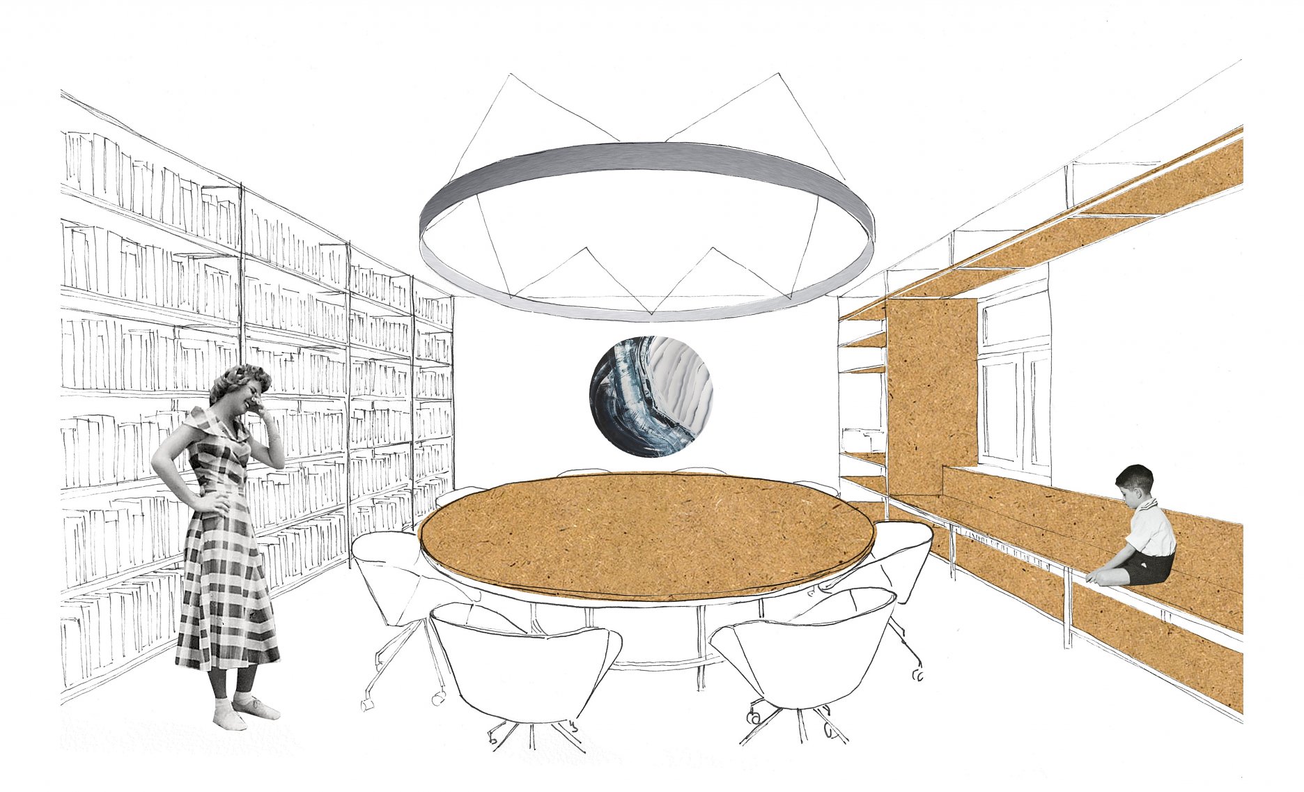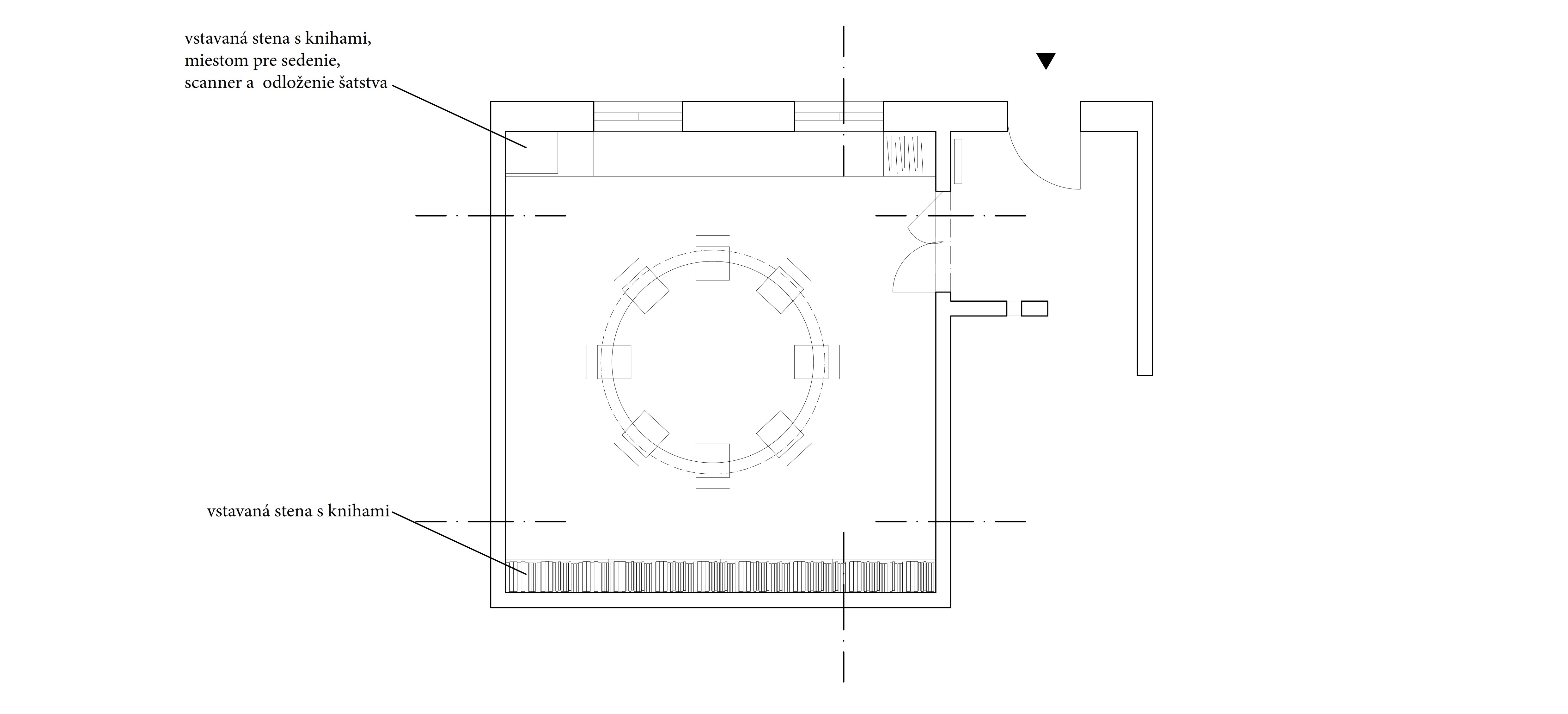 Ťažiskom návrhu sa stalo jednoznačné riešenie systému regálov knižnice v miestnosti 2.2, ktoré architekti jasne umiestnili na zadnú stenu, pričom jej orientáciou voči jestvujúcej stene s nikami vznikol v zadnej časti priestor na odkladanie mobiliáru. Toto si vyžiadalo zbúranie jestvujúcej sadrokartónovej priečky, čím sa predtým predelená izba scelila. Návrh taktiež pracuje so systémom delenia priestoru pomocou ťažkého textilného závesu. Návrh prináša kvalitnú artikuláciu v kontexte členitého priestoru. Priestory 1.1 a 1.2 architekti riešili čisto a utilitárne, umiestnením regálov po obvode miestnosti. Ako nedostatok hodnotila porota dorazenie regálu na niky v priestore 2.2, pričom nebola vyžitá možnosť premennej hĺbky. Je to však problém riešiteľný v ďalšom stupni projektu.