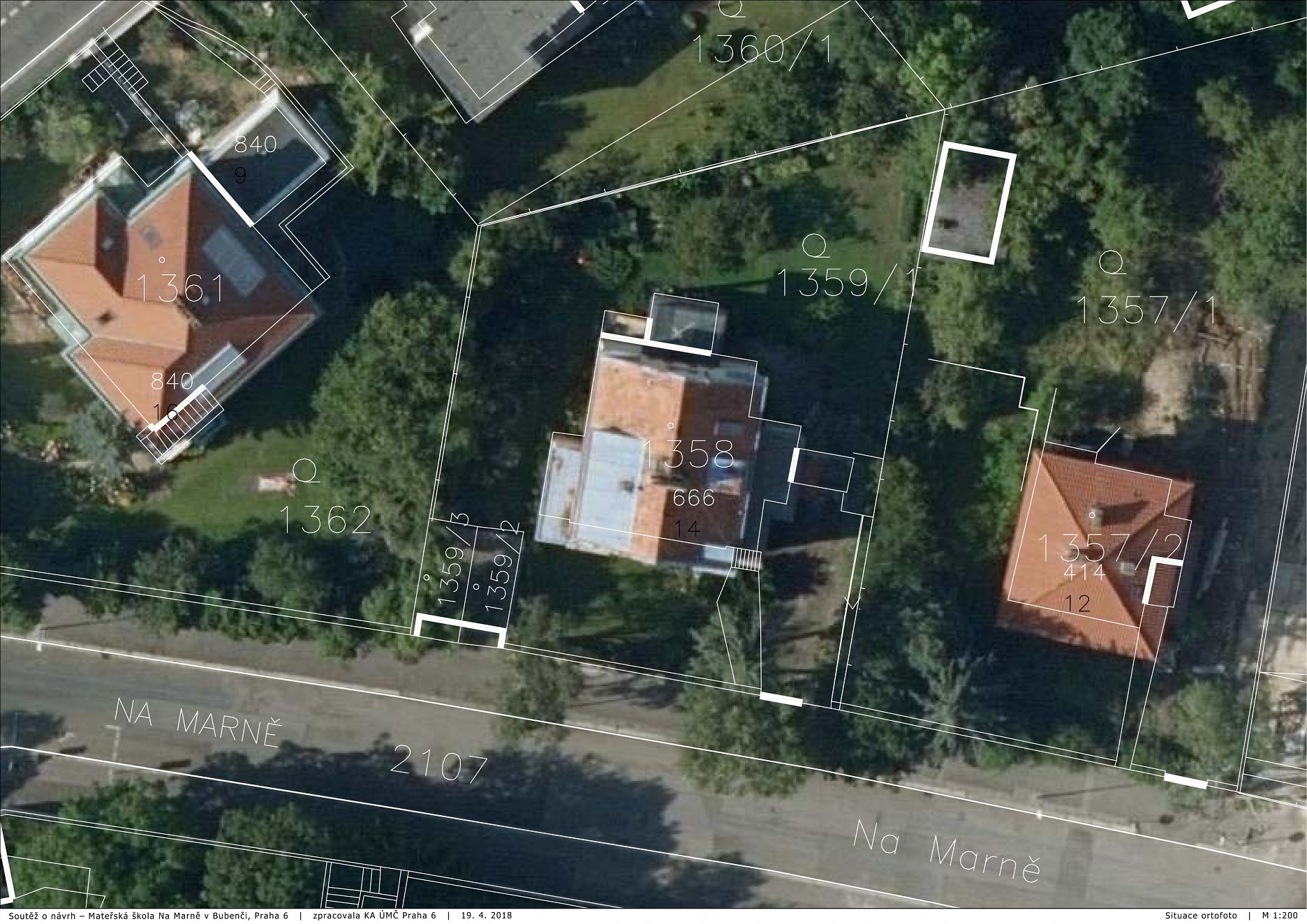 Předmětem soutěže je návrh a zpracování architektonického řešení novostavby dvoutřídní mateřské školy na adrese Na Marně 14, Praha 6. Pozemek se nachází ve vilové zástavbě v Bubenči, na parc. č. 1358, 1359/1, 1359/2, 1359/3 v k. ú. Bubeneč.