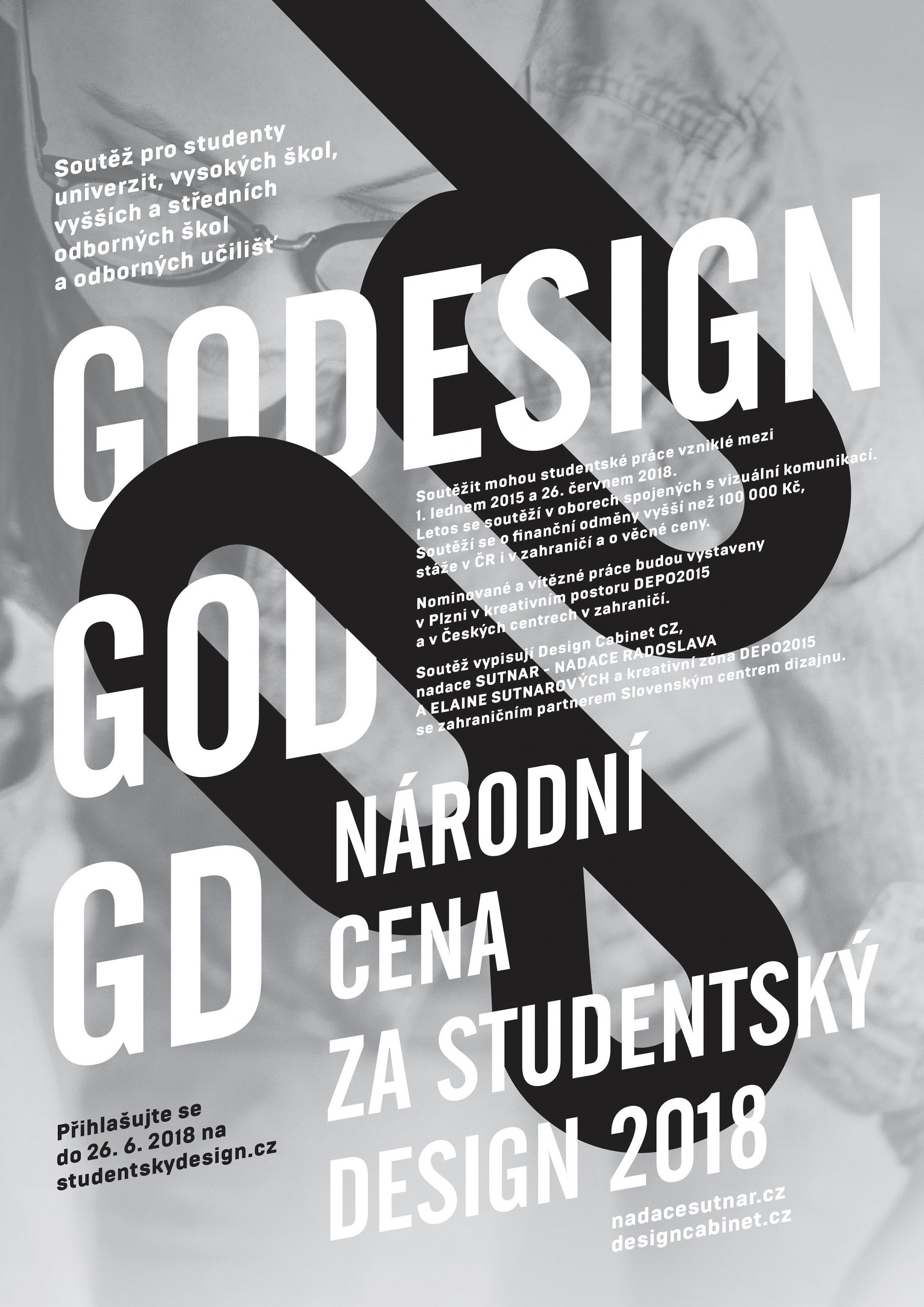 Ceny: Vysoké školy a univerzity súťažia o Národnú cenu za študentský dizajn 2018 * GRAND, vyššie odborné školy a stredné školy o Národnú cenu za študentský dizajn 2018 * JUNIOR, všetci potom o Excelentný študentský dizajn 2018 a Dobrý študentský dizajn 2018. Nezávisle na porotách udeľujú ceny dekani škôl a riaditelia významných múzeí, odborných združení, inštitúcií a firiem. Ocenení študenti získajú finančné odmeny v celkovej výške viac ako 100 000 Kč, stáže v zahraničí a v ČR a odmeny rôznych firiem.