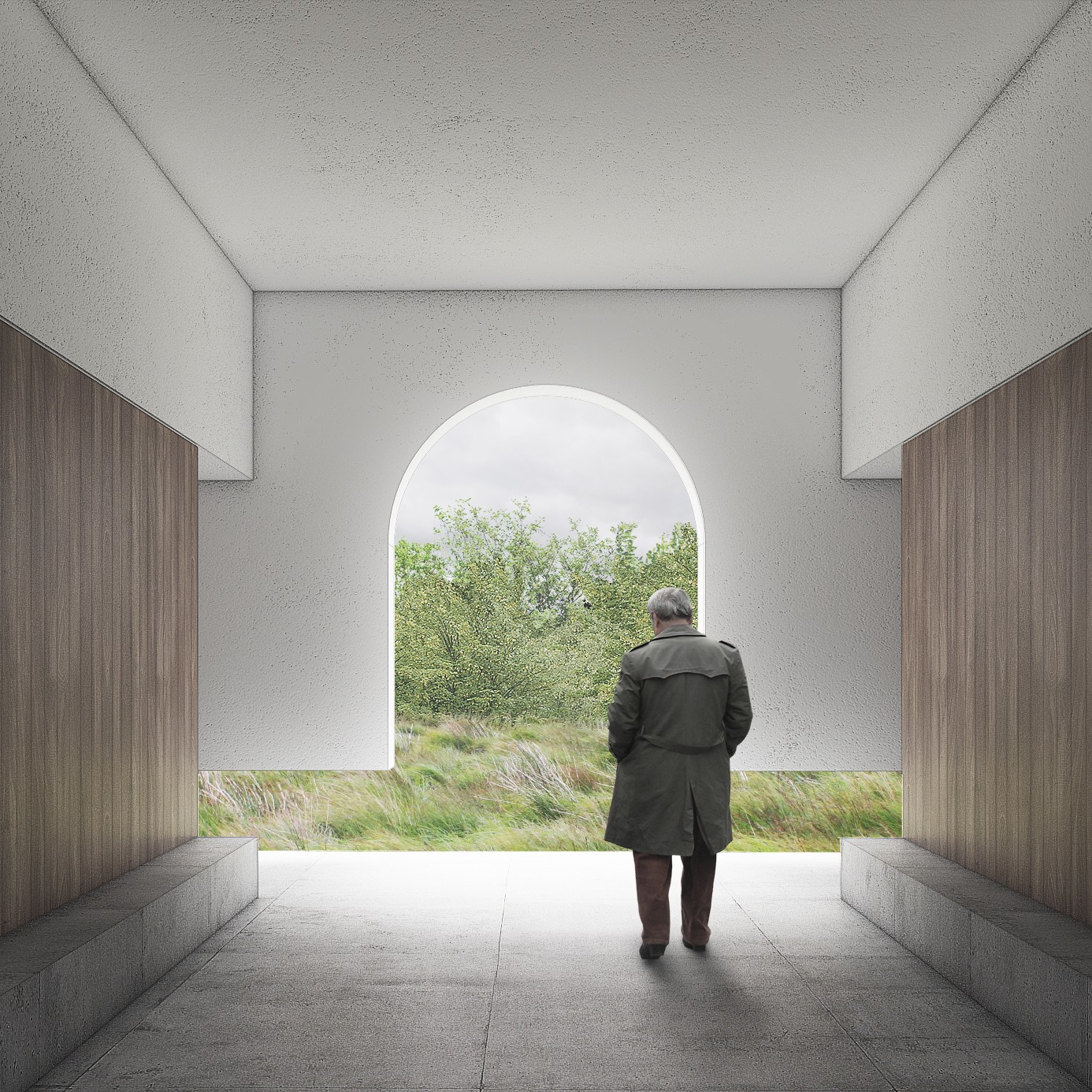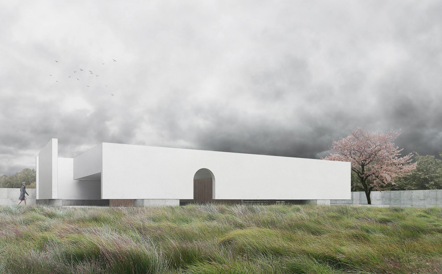 Návrh začleňuje všechny provozy k obvodové zdi hřbitova a soustřeďuje těžiště do prostoru hřbitova - porota oceňuje myšlenku úspornosti a recyklace jako jedno z hlavních témat - koncept návrhu je silný, ale není propracovaný, ztvárnění umožňuje různé interpretace - z ekonomického hlediska se jedná o jeden z nejúspornějších návrhů, zároveň se nabízí otázka, zda to není na úkor prostorového komfortu