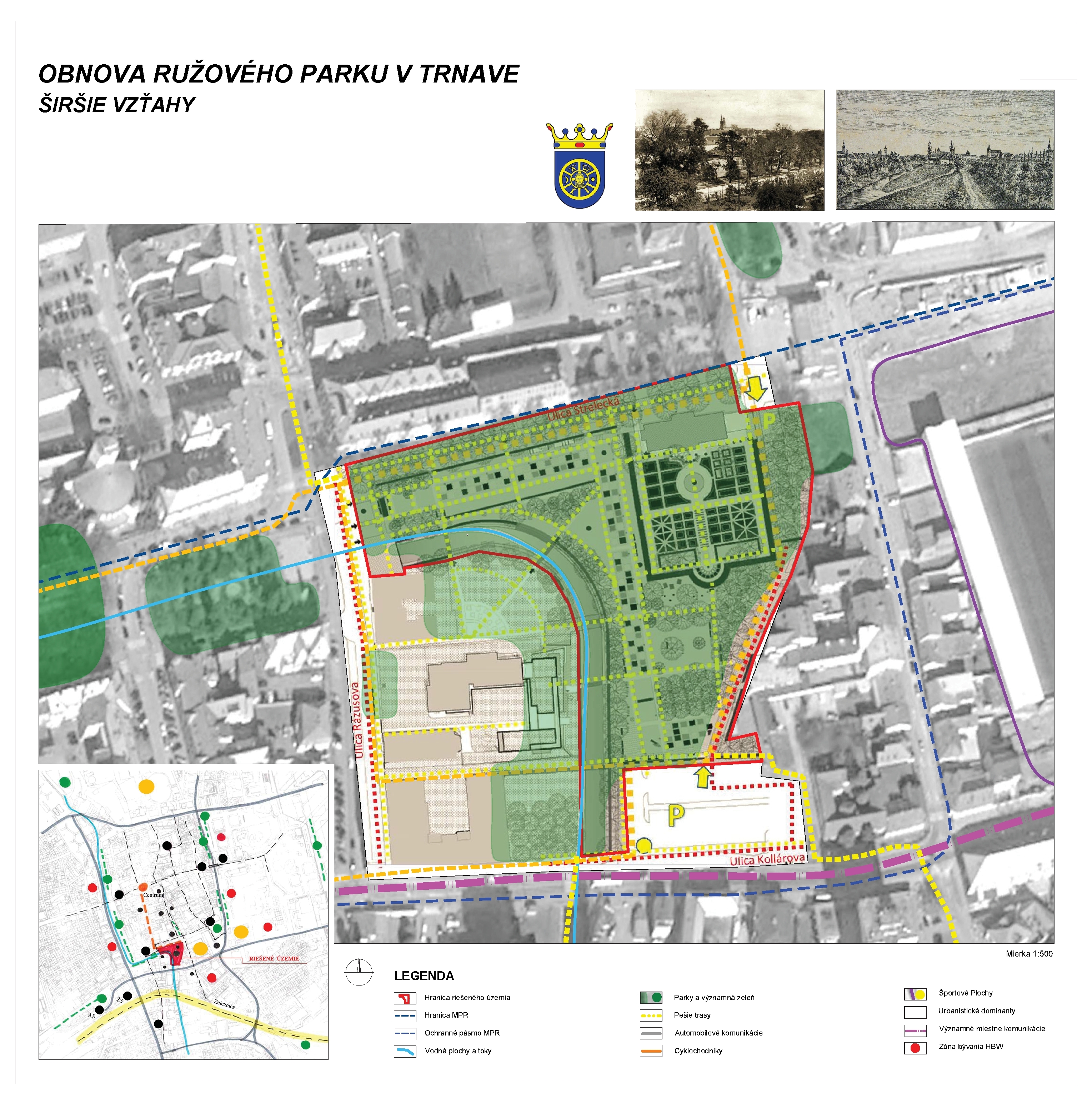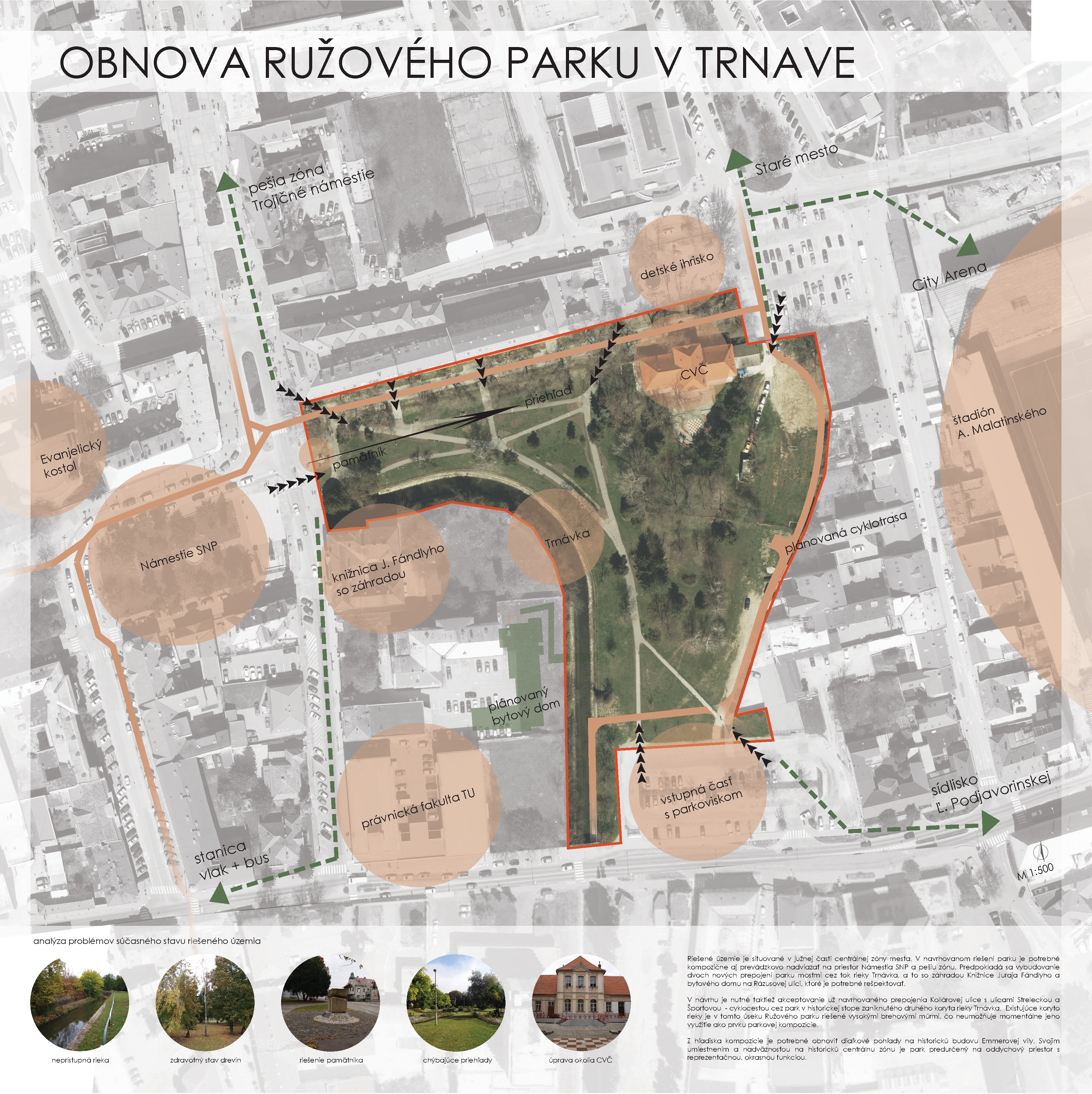 Vyhľasovateľ hľadal najlepší návrh komplexnej obnovy Ružového parku tak, aby boli splnené náročné funkčné a prevádzkové požiadavky, s požiadavkami na najvyššiu kvalitu urbanisticko – architektonického a krajinárskeho riešenia. Park sa nachádza v ochrannom pásme Mestskej pamiatkovej rezervácie Trnava.