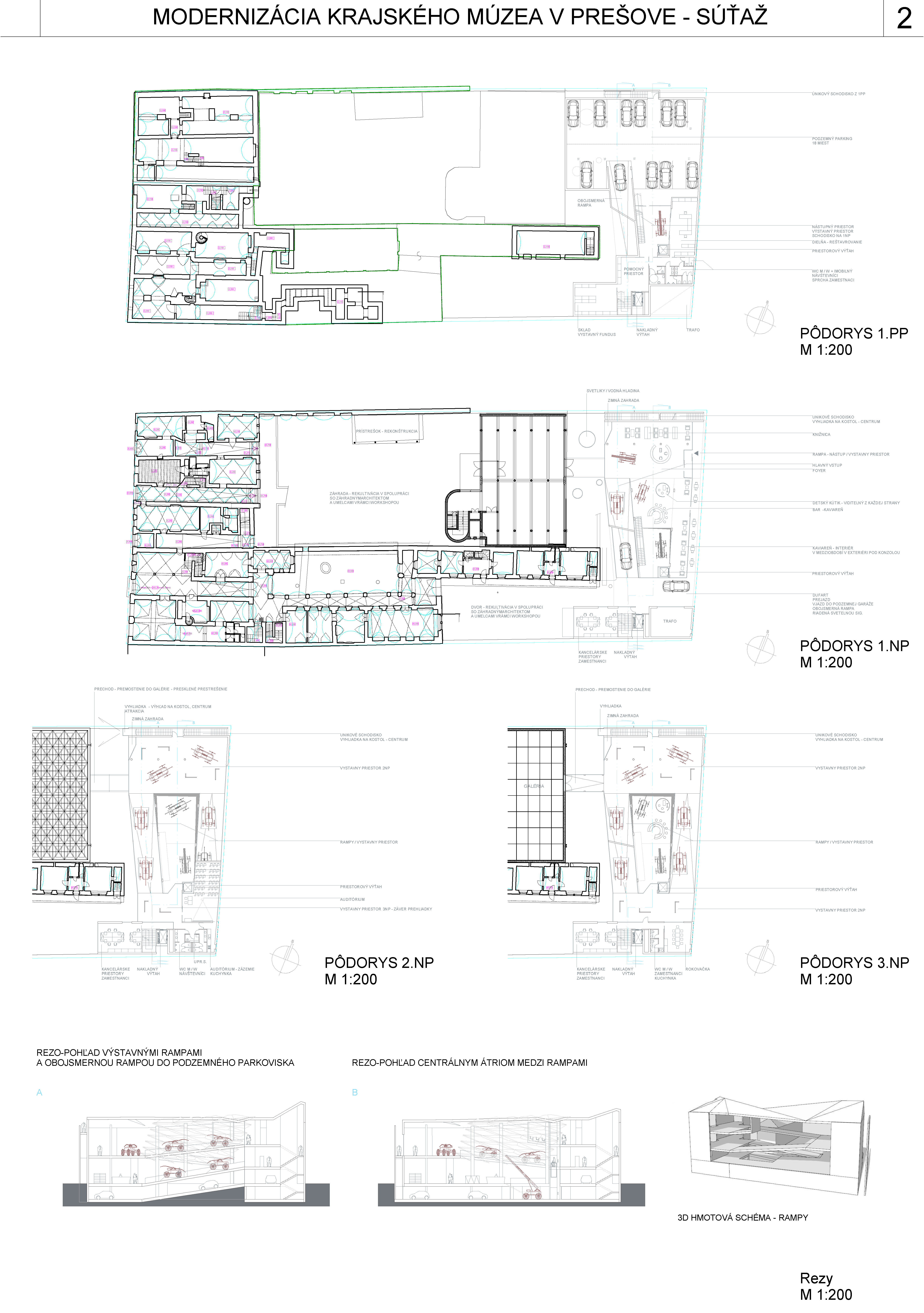 Návrh dodržal základné požiadavky na hmotové riešenie objektu a členenie fasády. Najlepším spôsobom rieši funkčné využitie parteru s prepojením na staršie objekty a dobre narába s vonkajšími priestormi múzea, ktoré diferencuje na rôzne priestory a zároveň umožňuje ich rôzne využitie. Vhodne a citlivo navrhuje dvorové priestory, umiestnenie kaviarne a posluchárne je vysoko efektívne a ponúka správne využitie pri zachovaní mierky. Dobrým spôsobom rieši vnútornú prevádzku múzea. Používa rovnaký princíp presvetlenia výstavných priestorov ako na existujúcej výstavnej hale, zároveň parafrázuje sedlovú strechu. Plocha fasády ponúka priestor pre vytvorenie „živej“ fasády. Návrh sebavedome a čisto pristupuje k riešeniu dvorov. Návrh sa úplne nevysporiadal s podmienkami KPÚ Prešov o štruktúrovanosti výrazu objektu do Slovenskej ulice.
