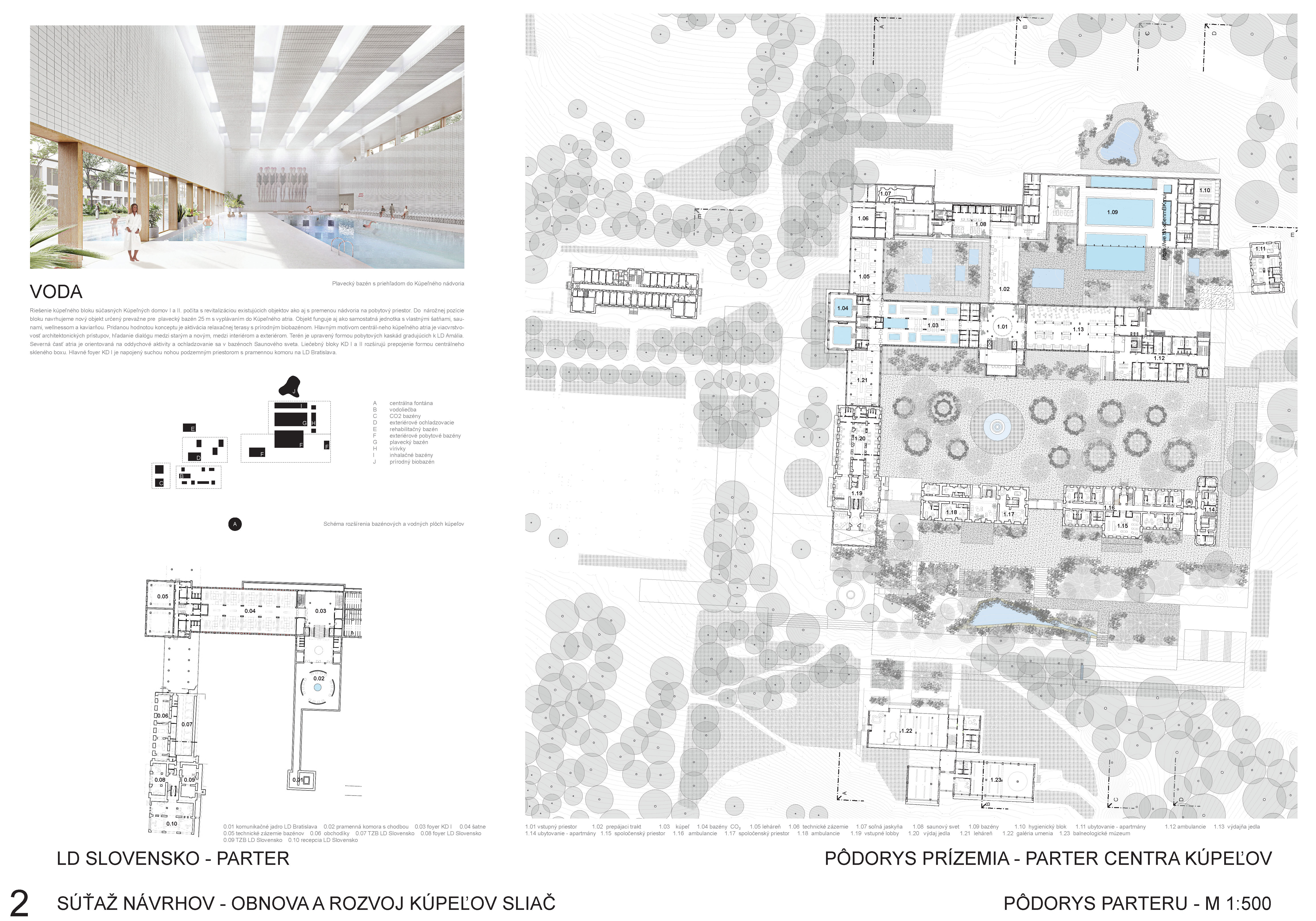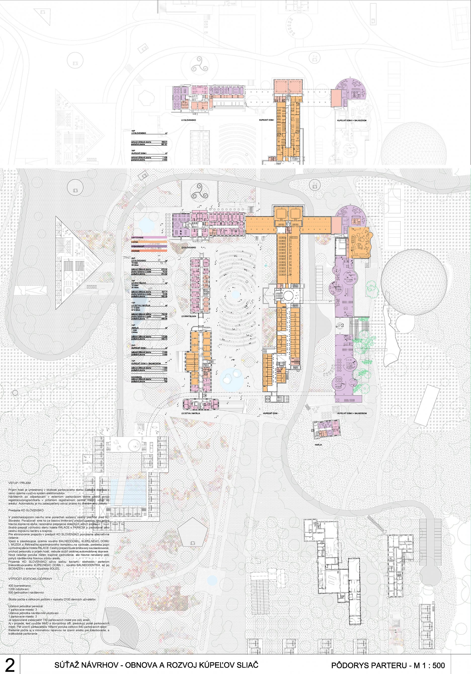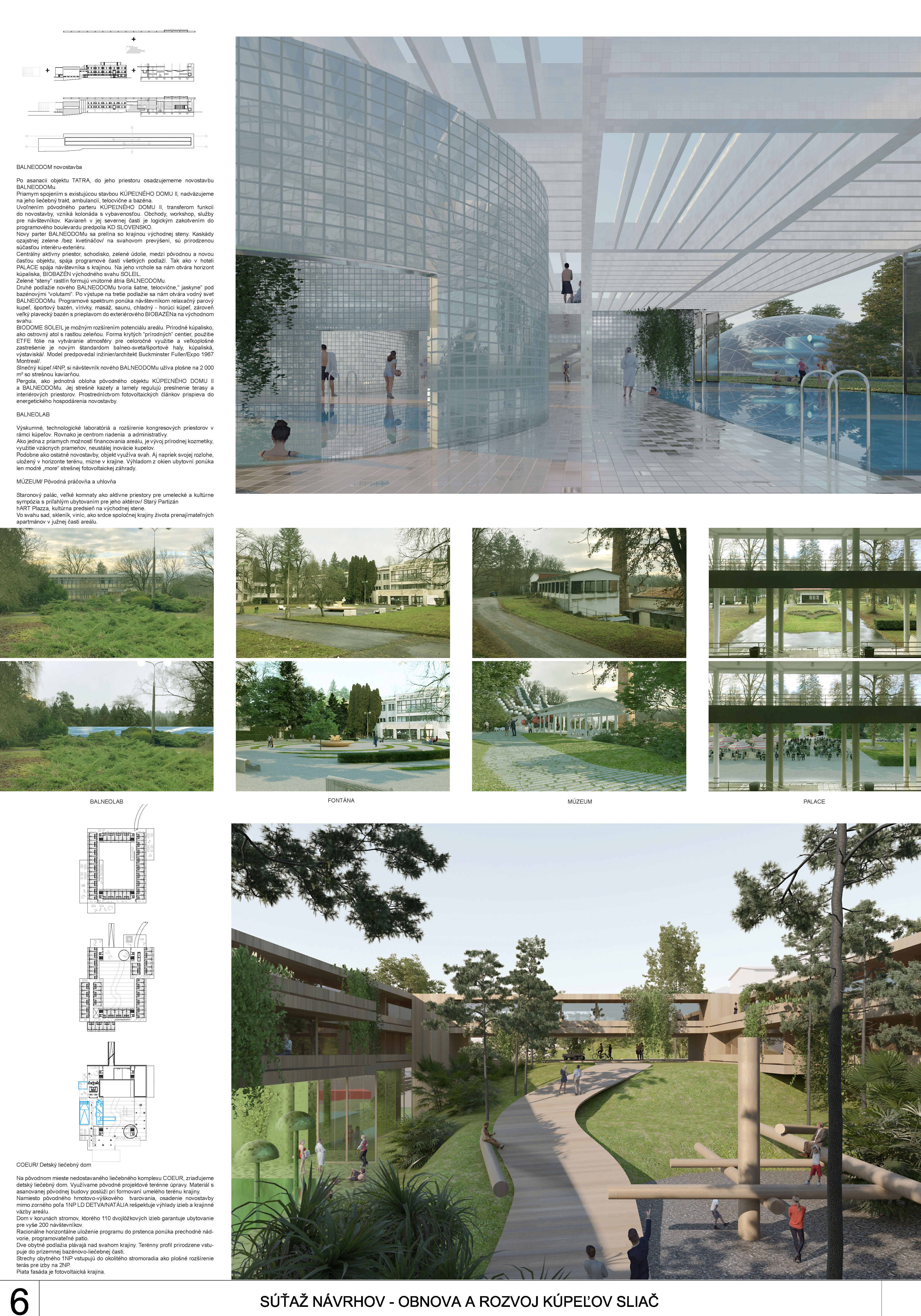 - do územia sebavedome vkladá novú architektonickú vrstvu balneoterapie, balneolab-u a sférickou kupolou prekrytý biobazén,