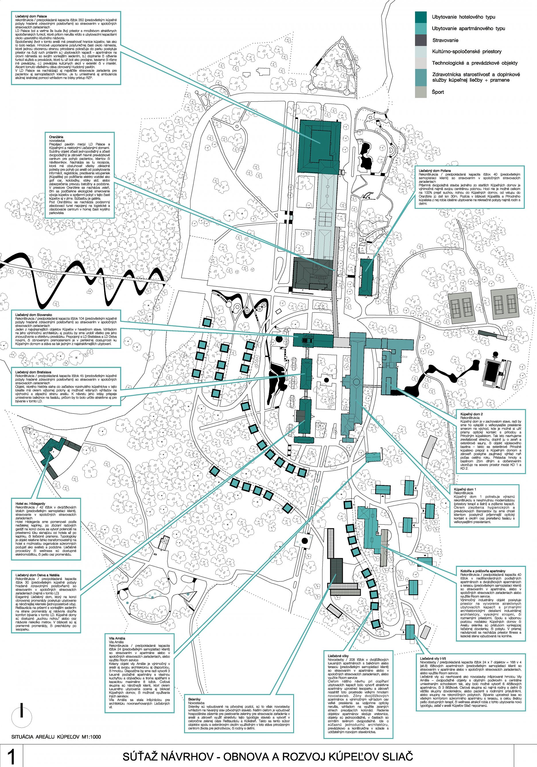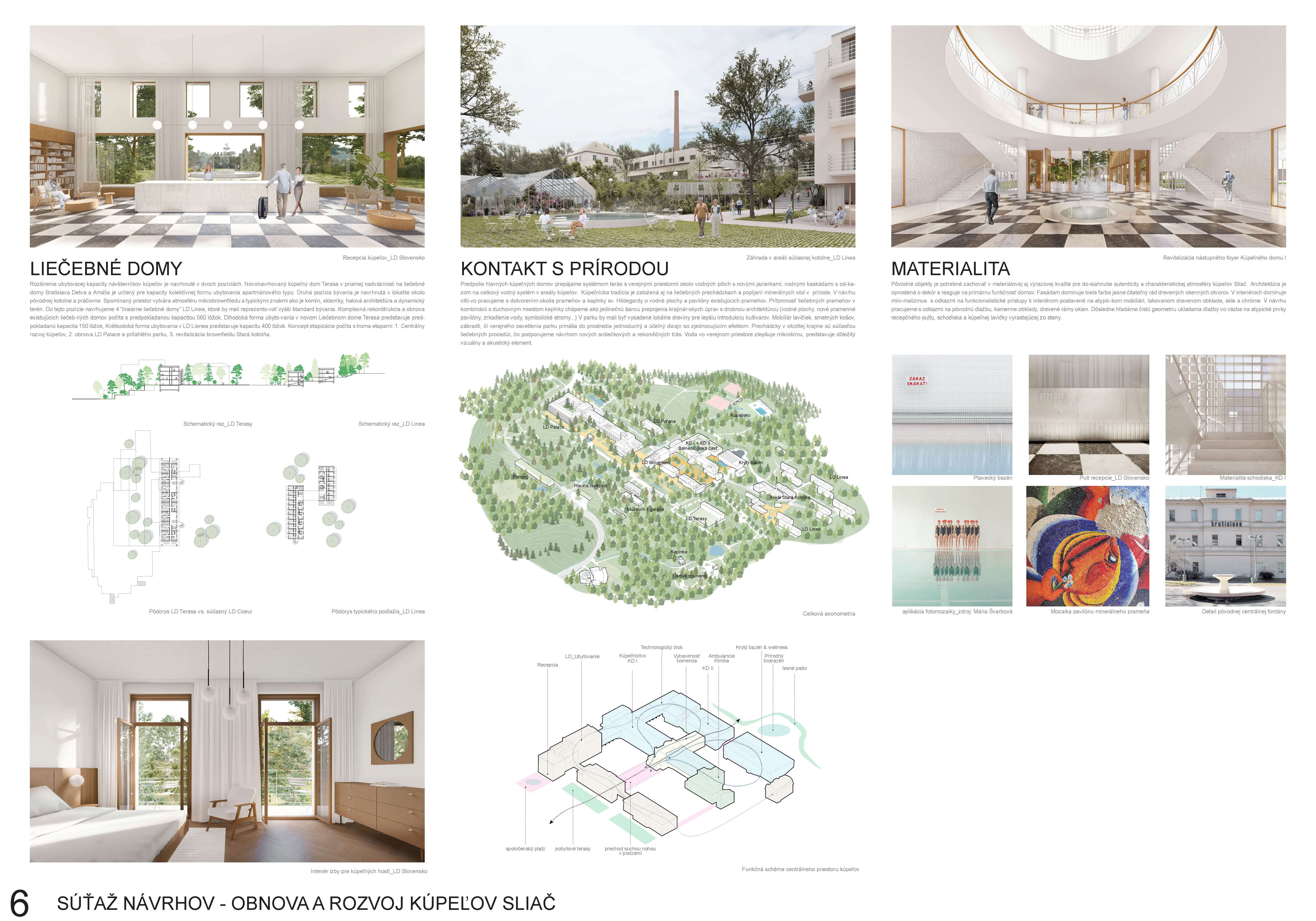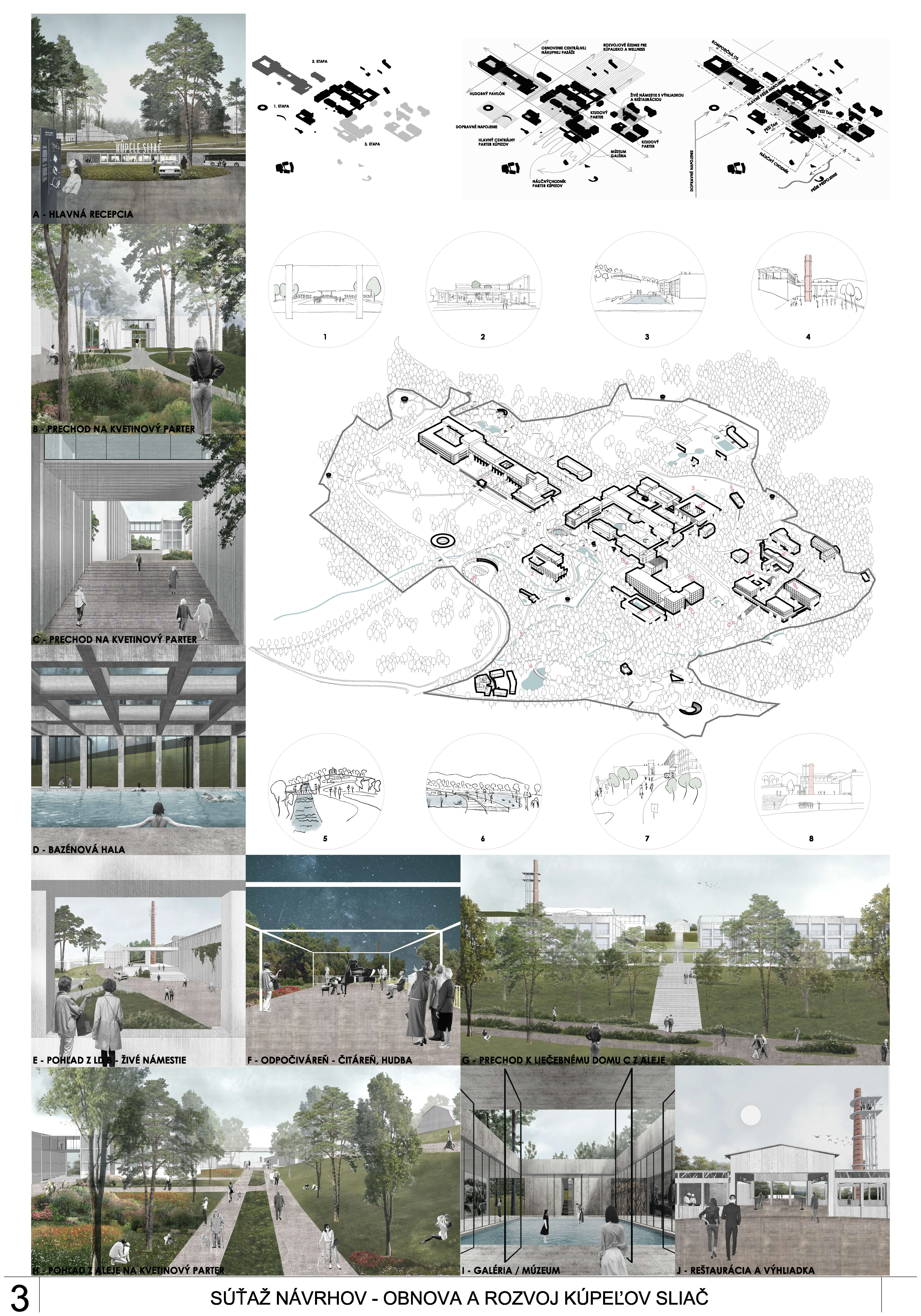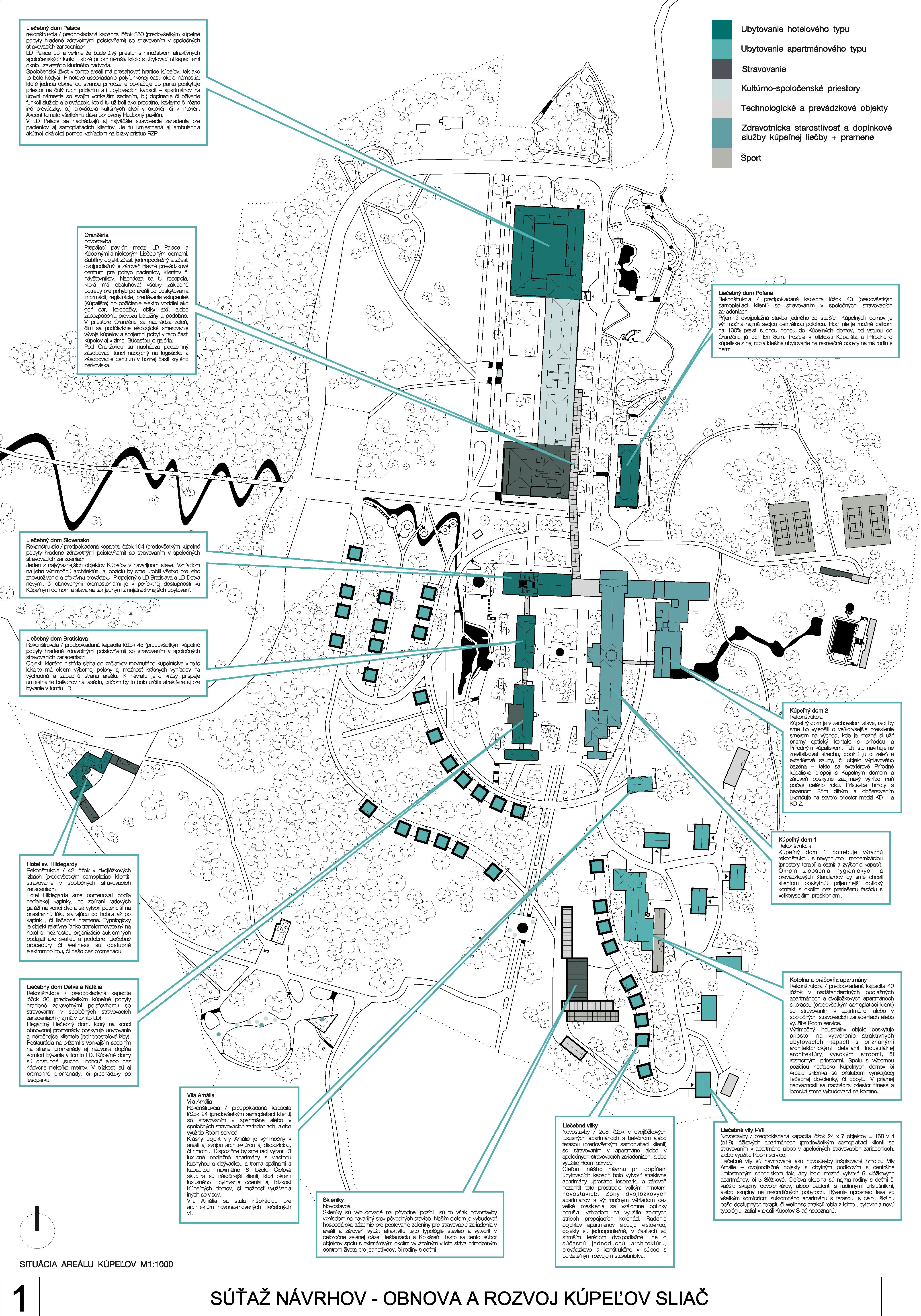 - presvedčivo rieši dispozičné a prevádzkové usporiadanie objektov v centre kúpeľov