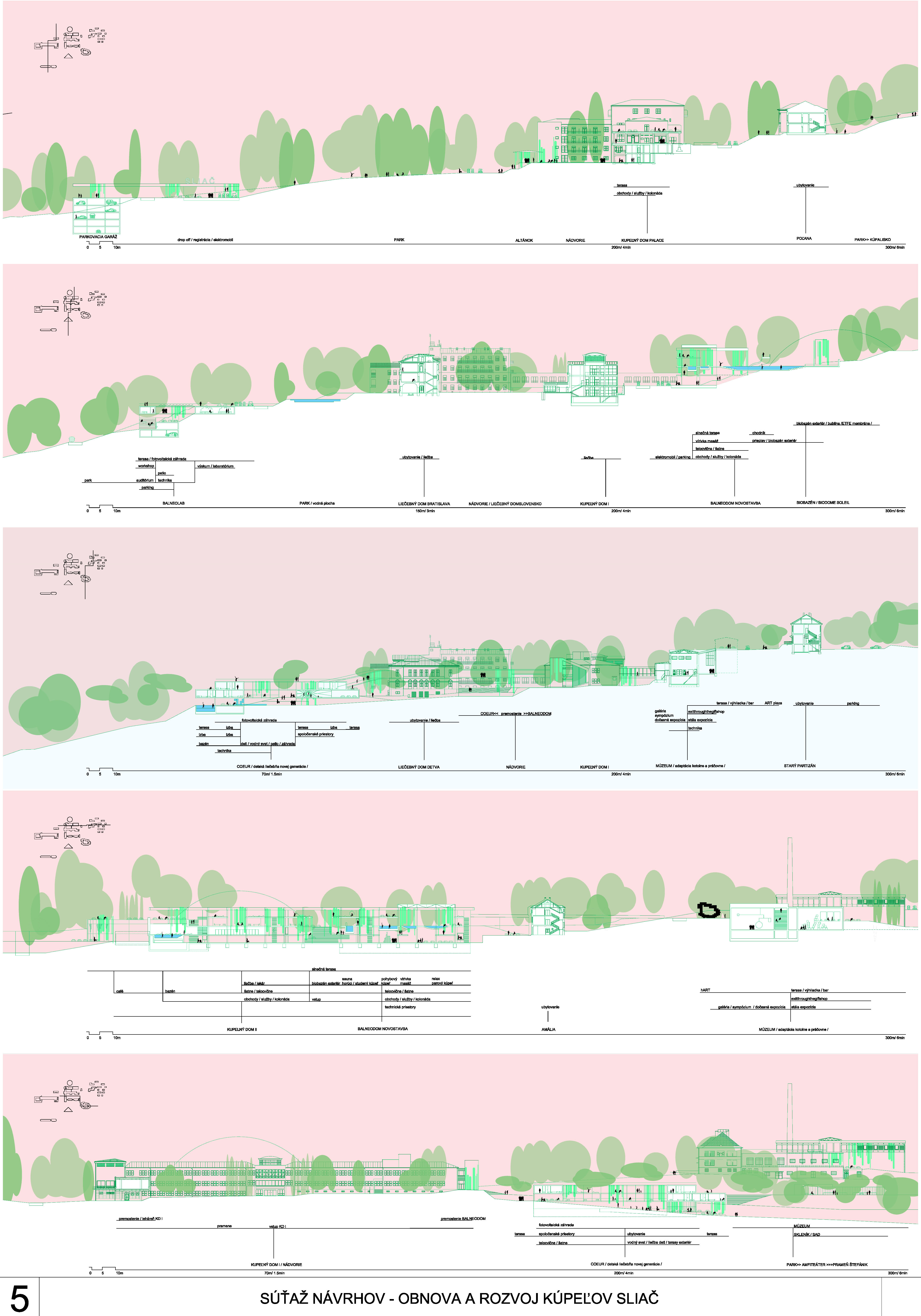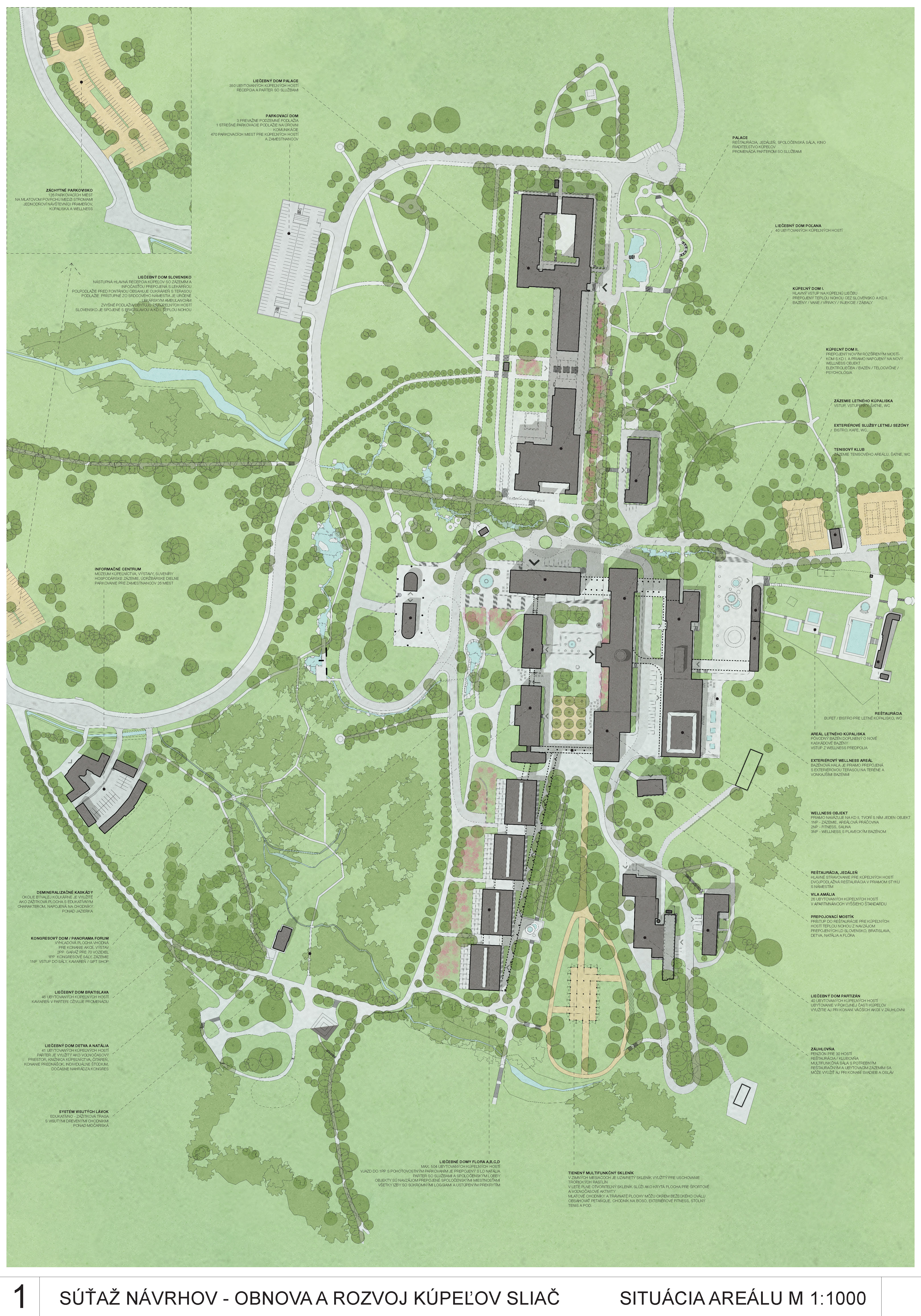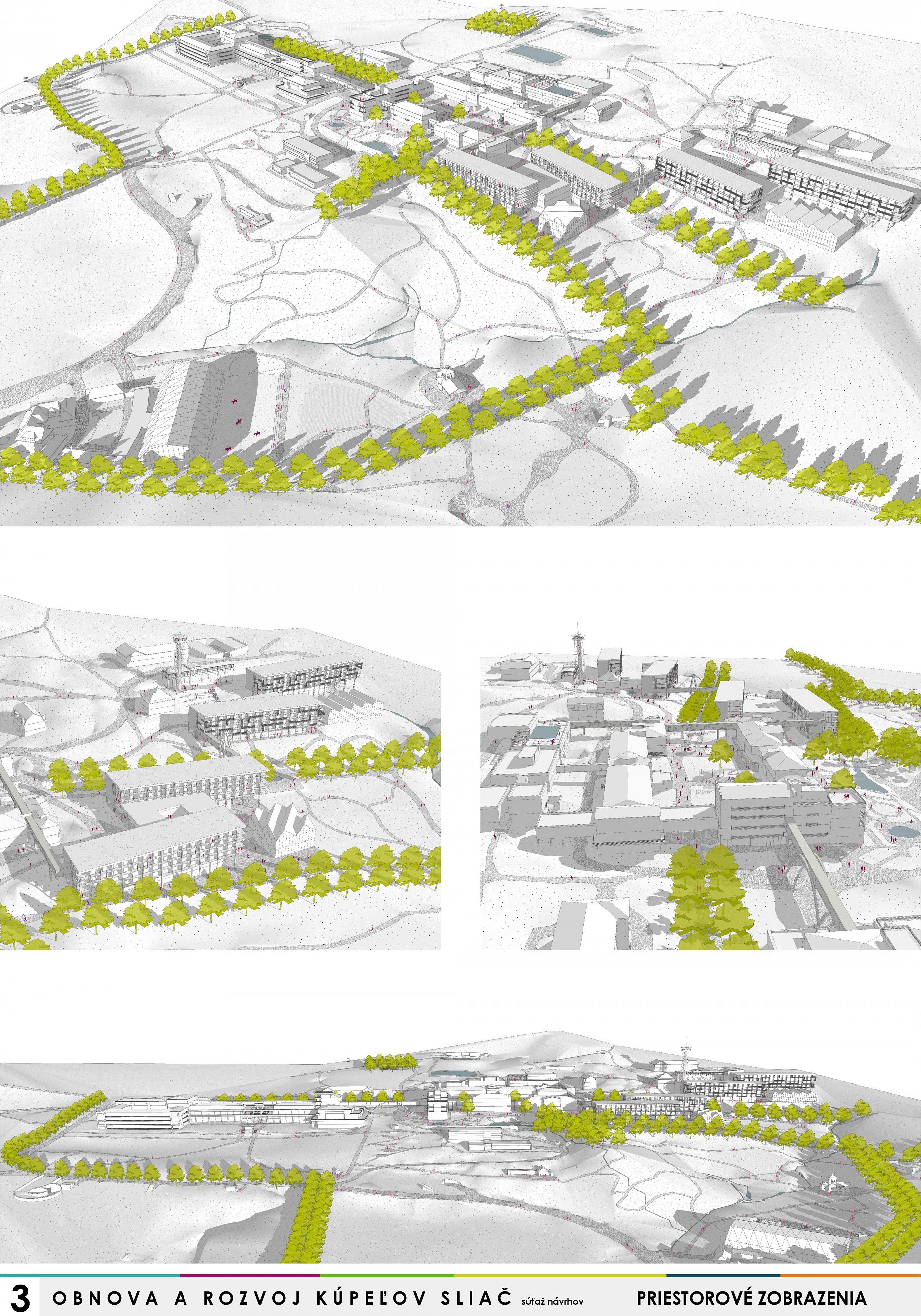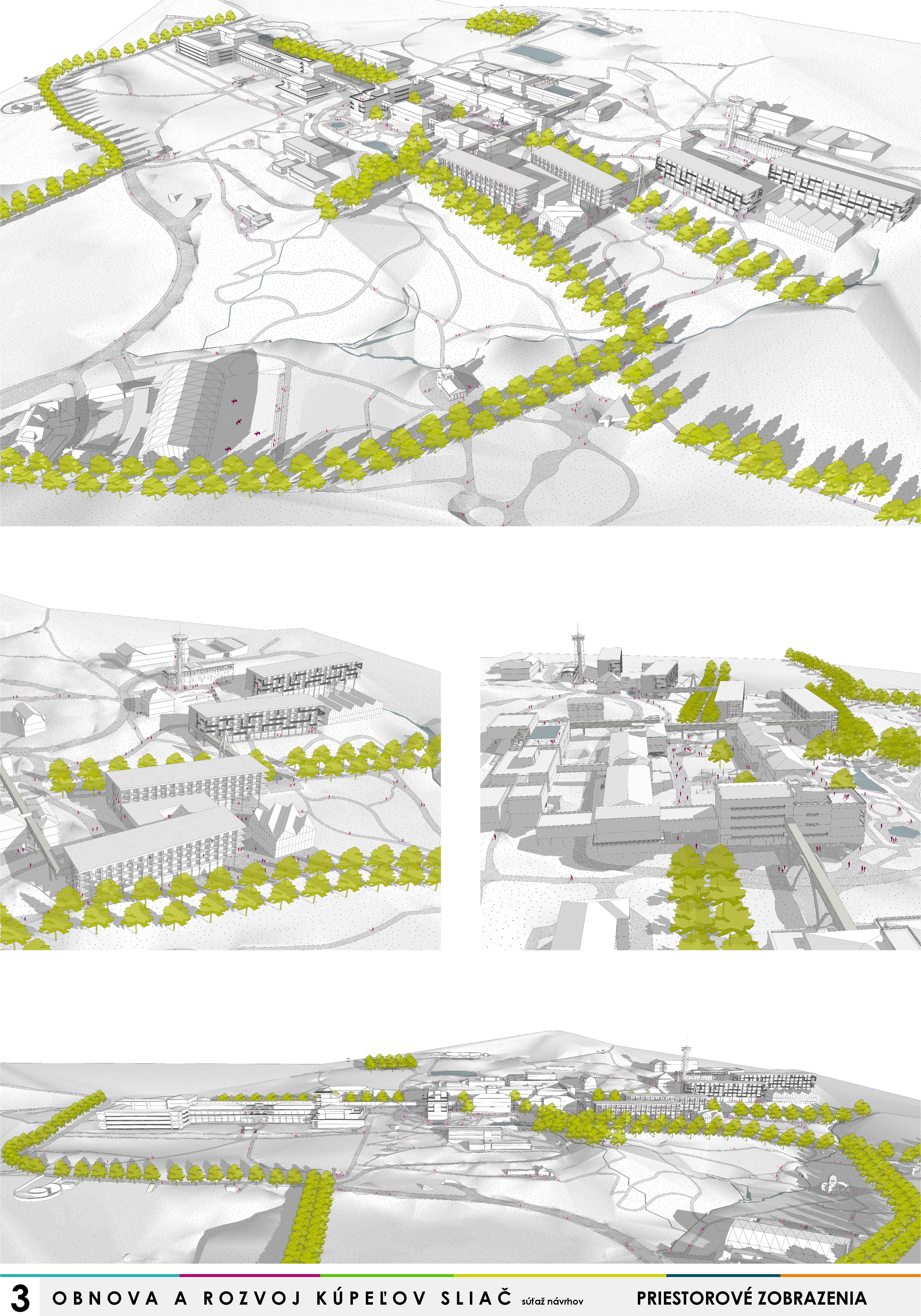 - presvedčivo rieši dispozičné a prevádzkové usporiadanie objektov v centre kúpeľov