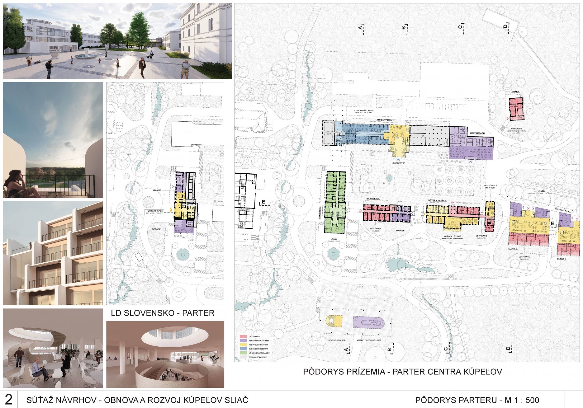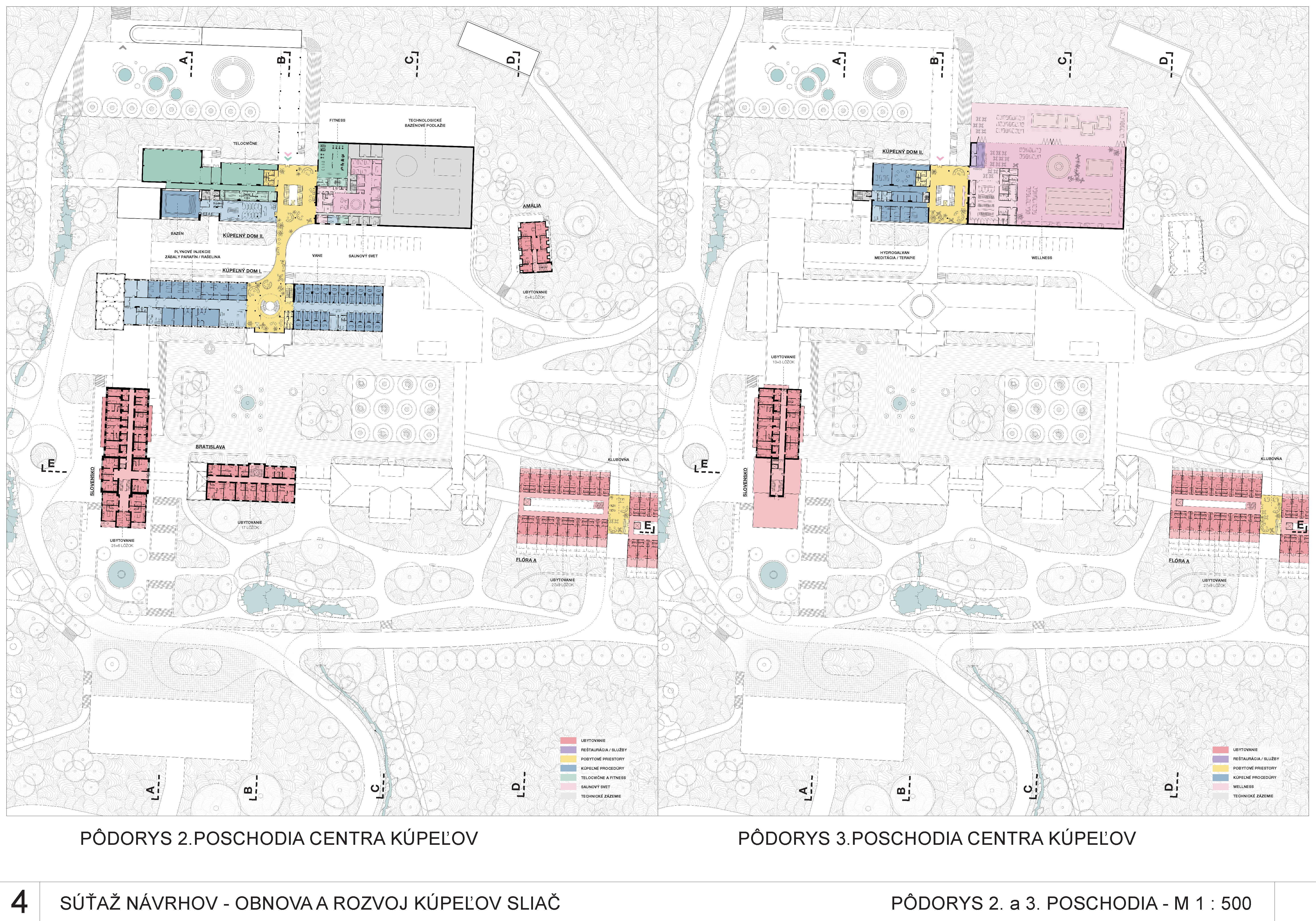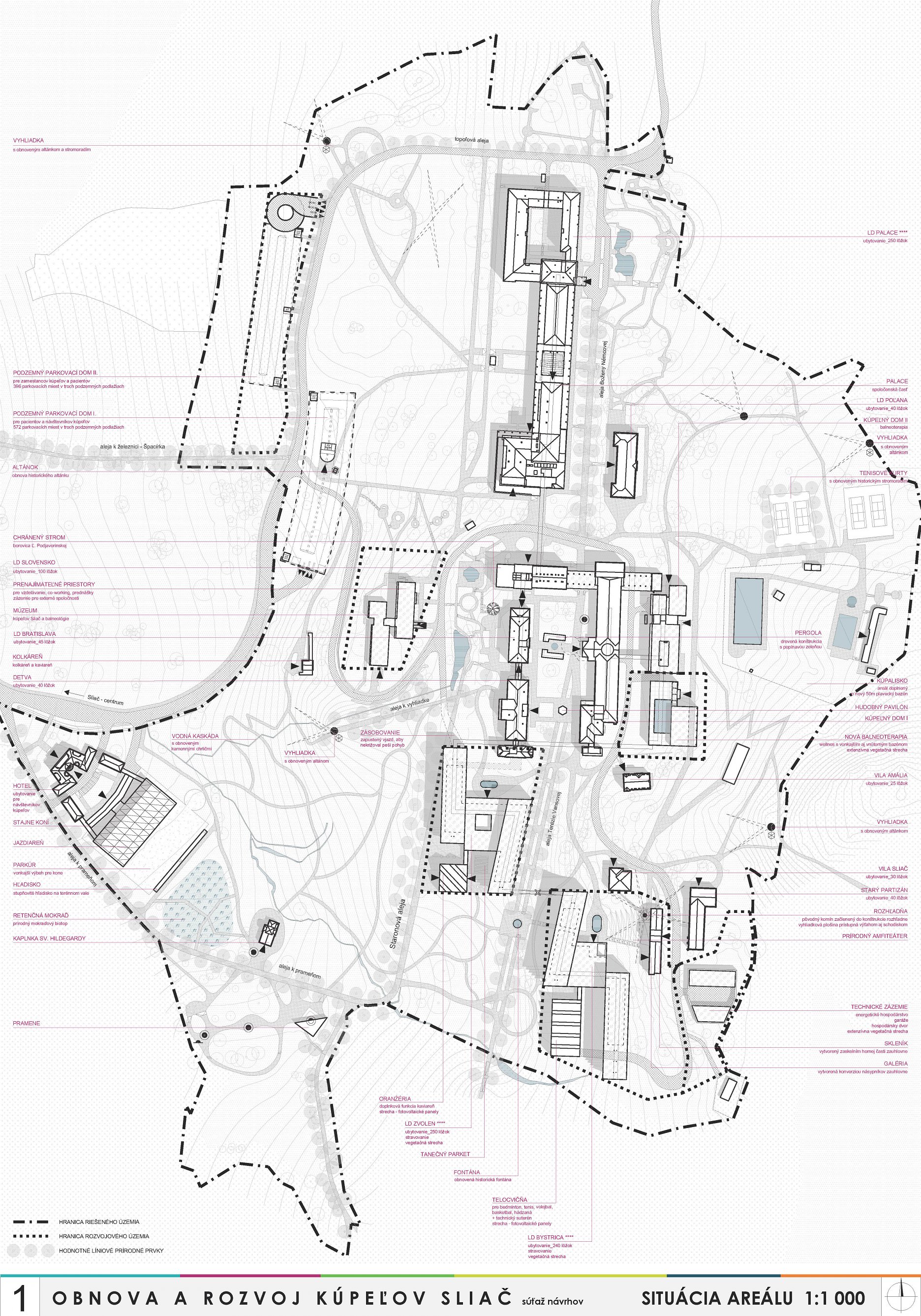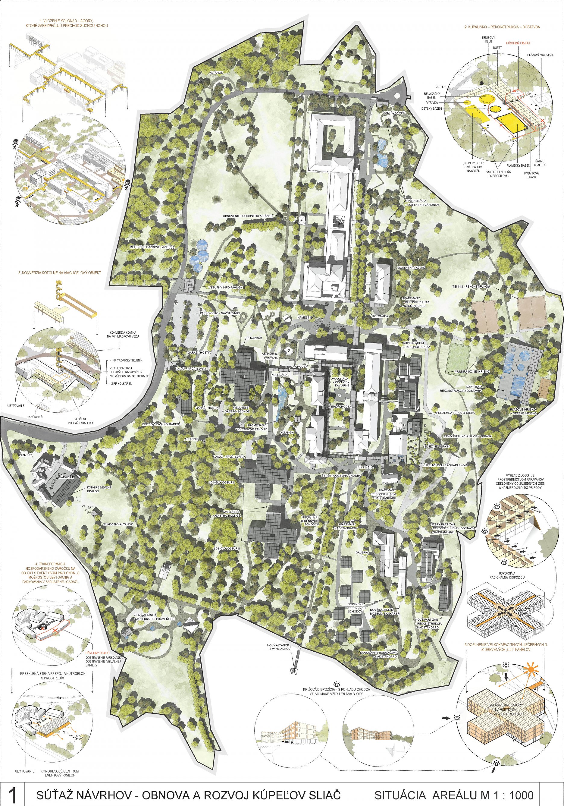 - presvedčivo rieši dispozičné a prevádzkové usporiadanie objektov v centre kúpeľov