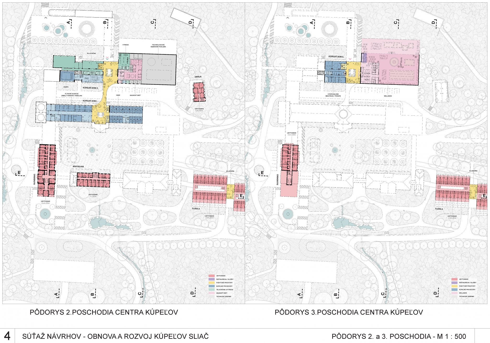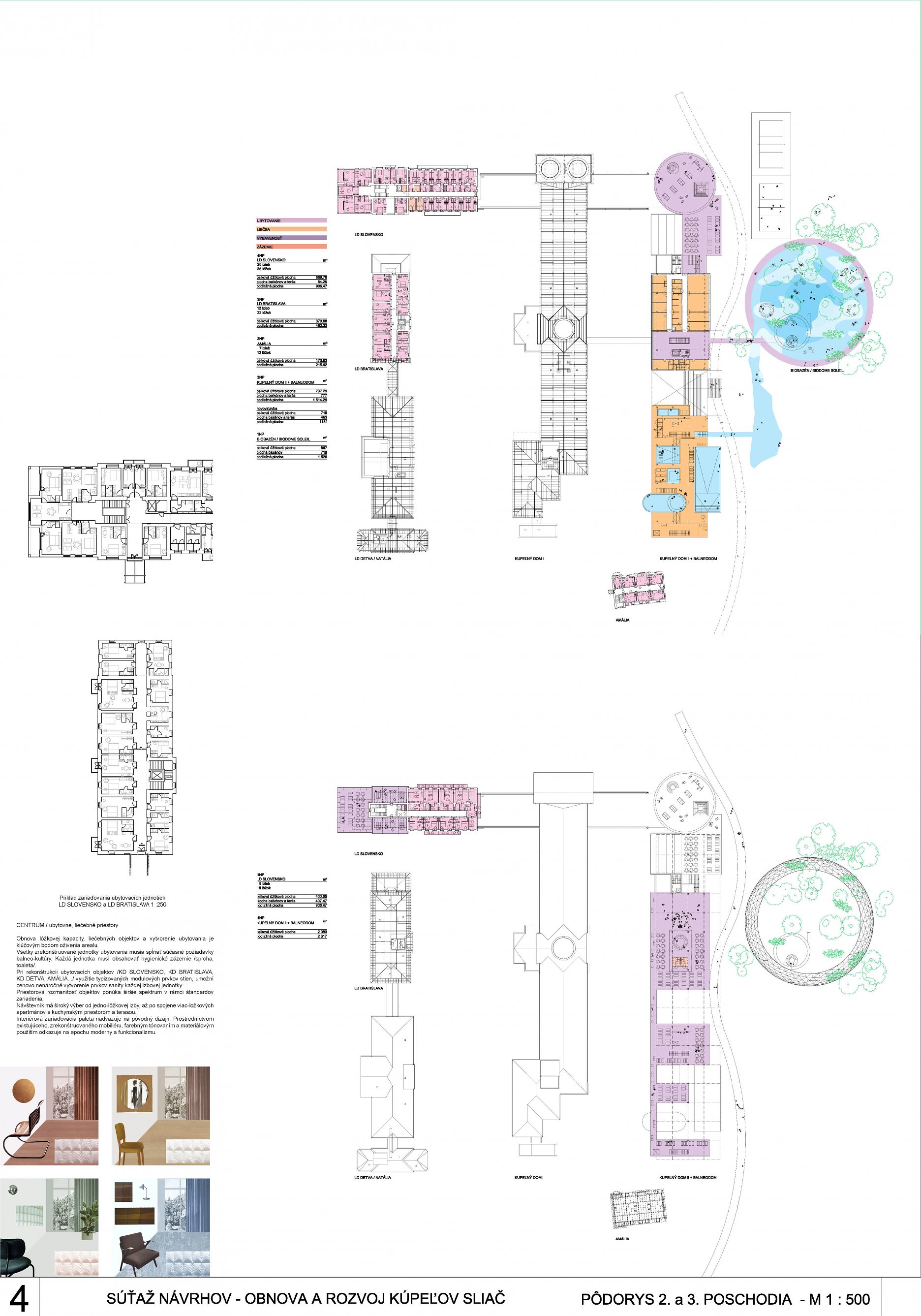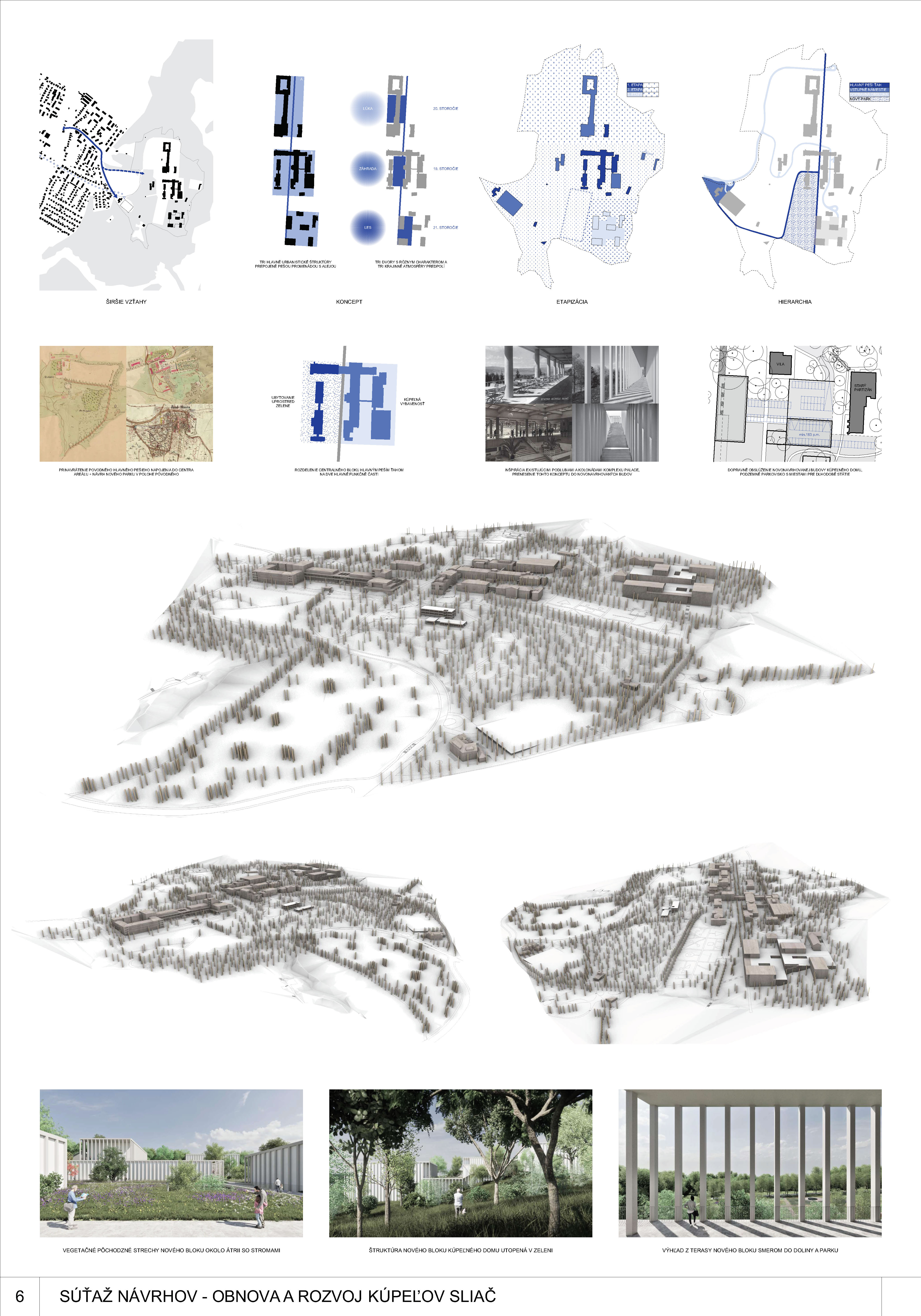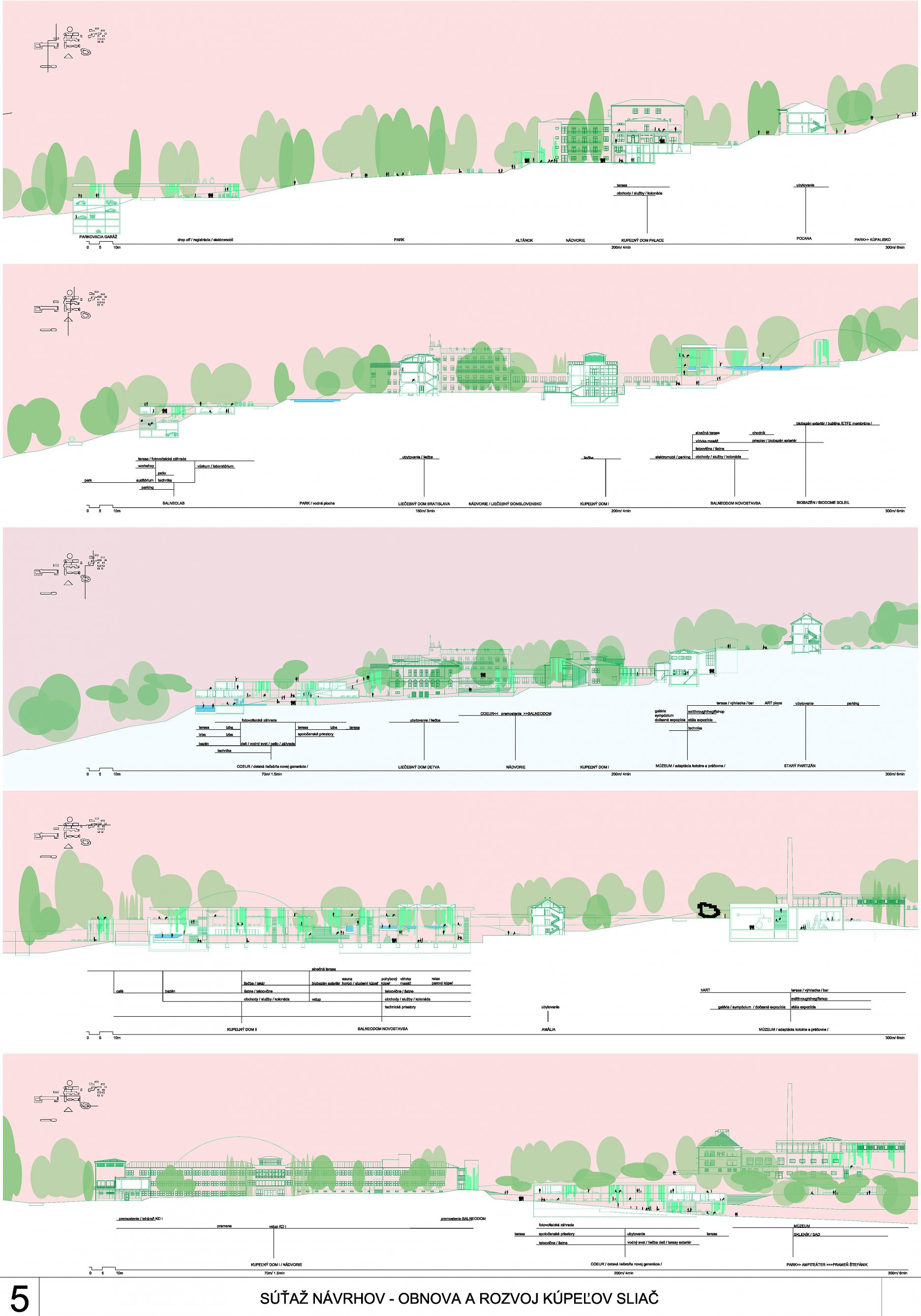 - presvedčivo rieši dispozičné a prevádzkové usporiadanie objektov v centre kúpeľov