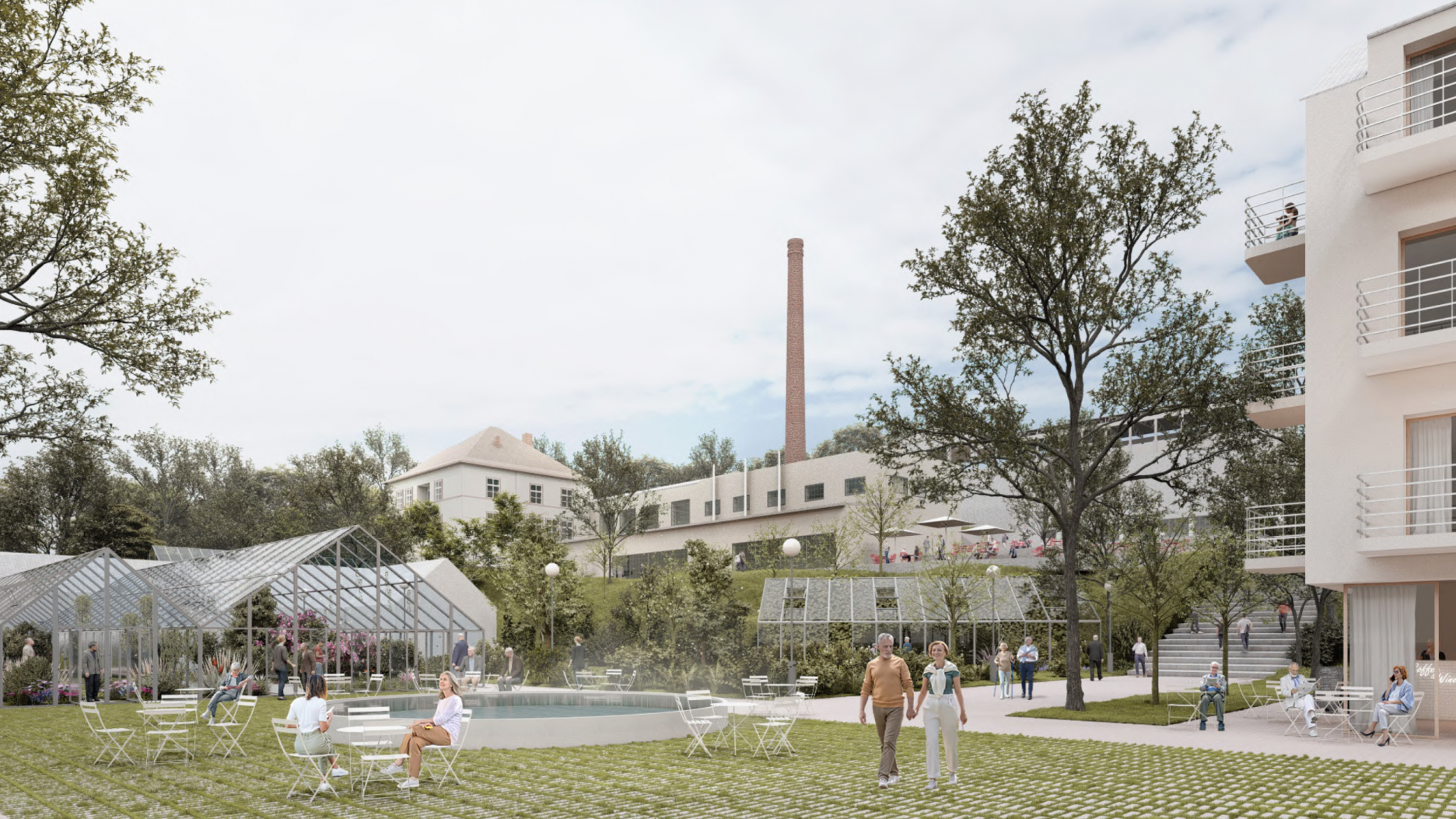 - v mieste bývalého LD Coeur hľadá historické súvislosti, obnovuje zaniknutý park a dopĺňa pavilón reštaurácie a skleníka,
