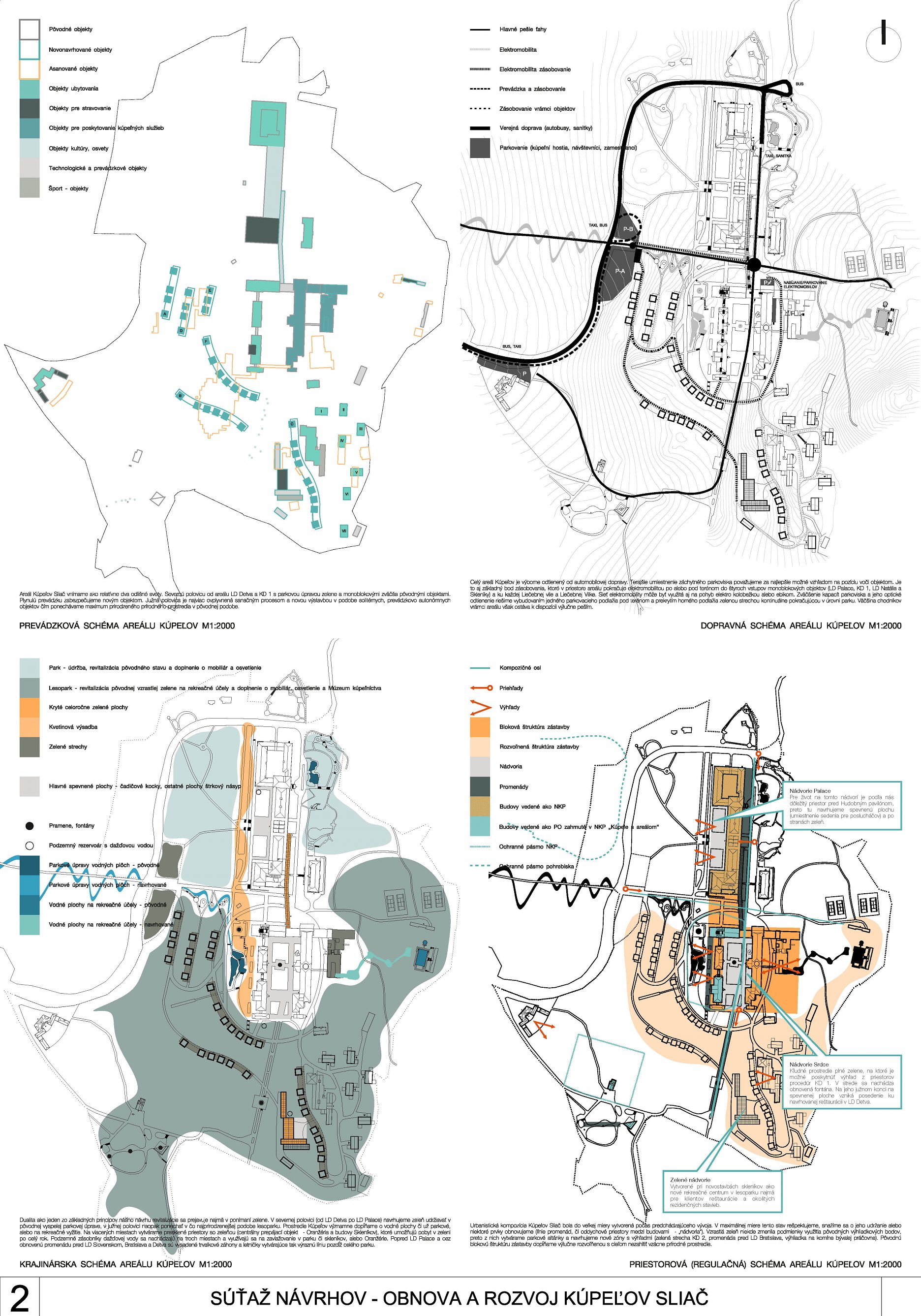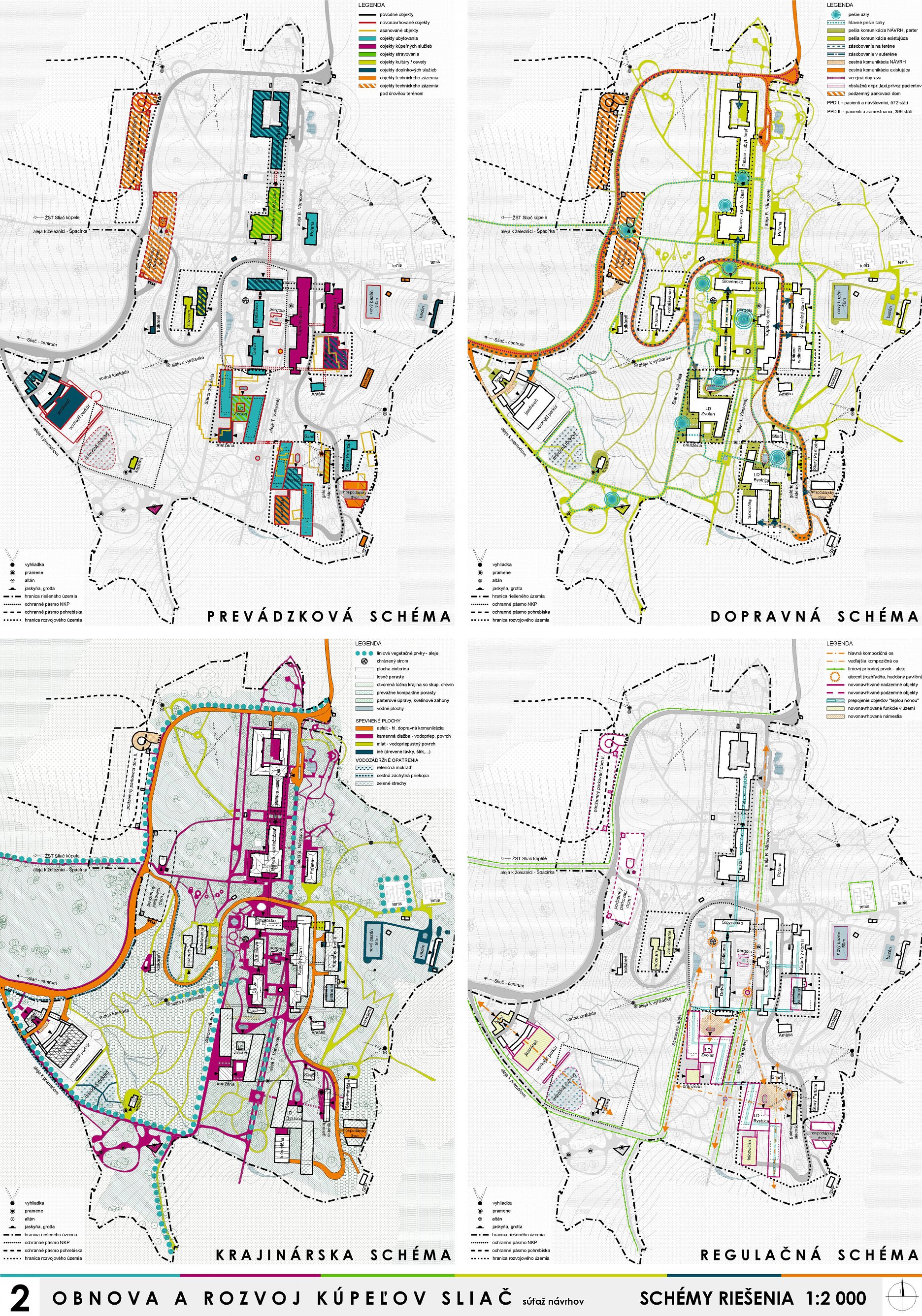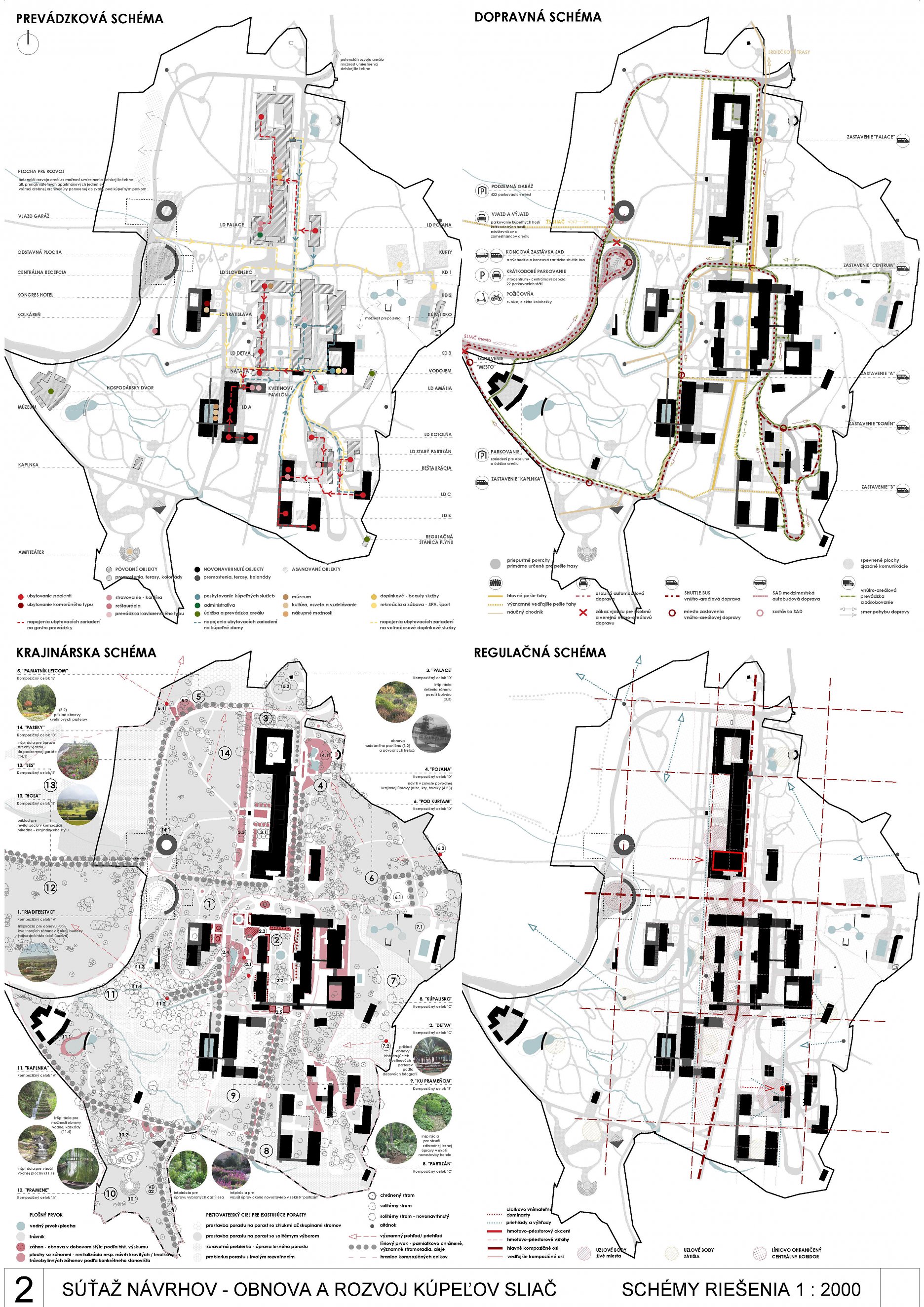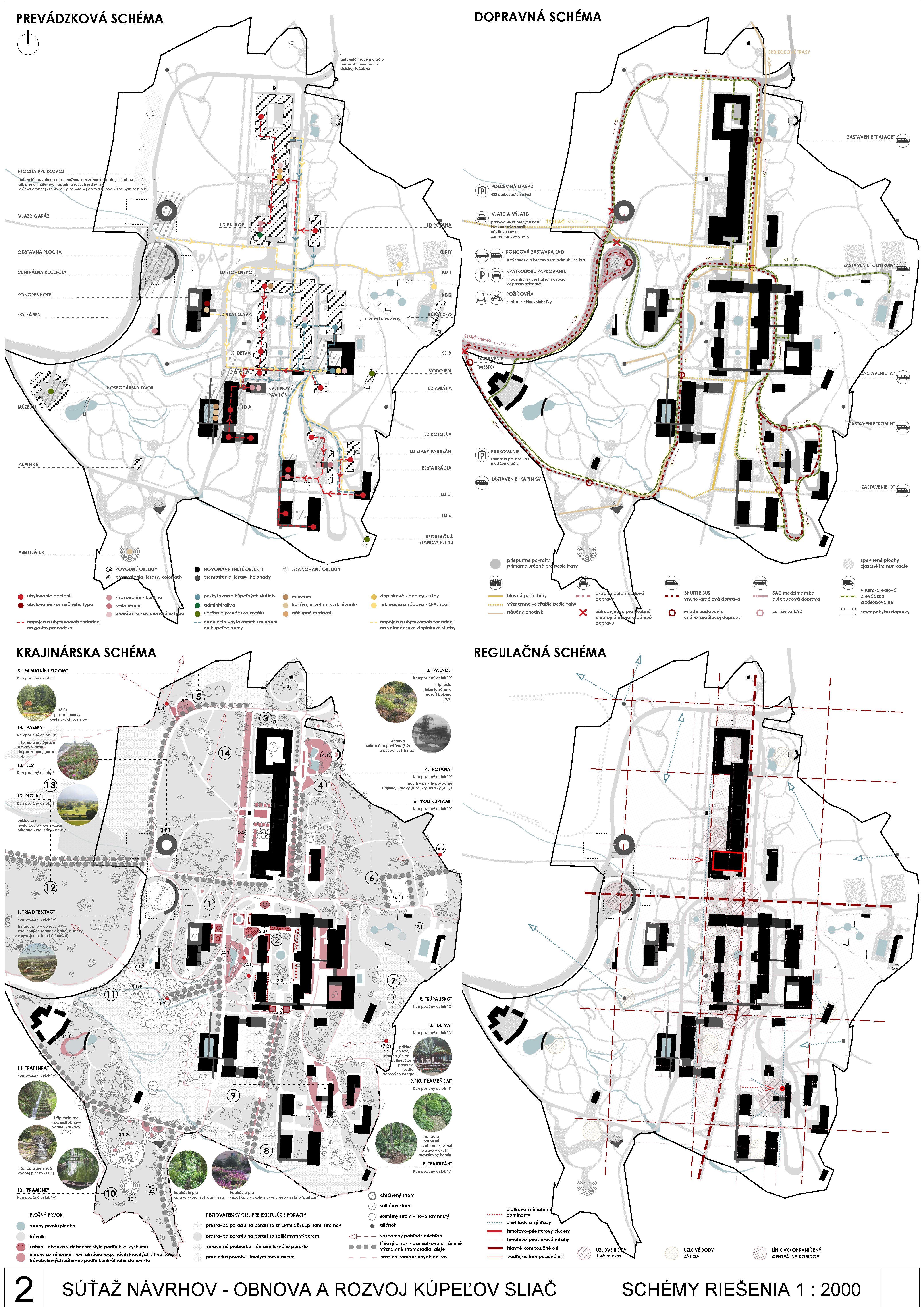 - správne rieši dopravné väzby ako jediný vylúčením dopravy z priestoru medzi kúpeľnými domami a jej nahradením novým prepojením. Toto prepojenie bude potrebné v ďalšom postupe projektovej prípravy dôkladne overiť s ohľadom na morfológiu terénu
