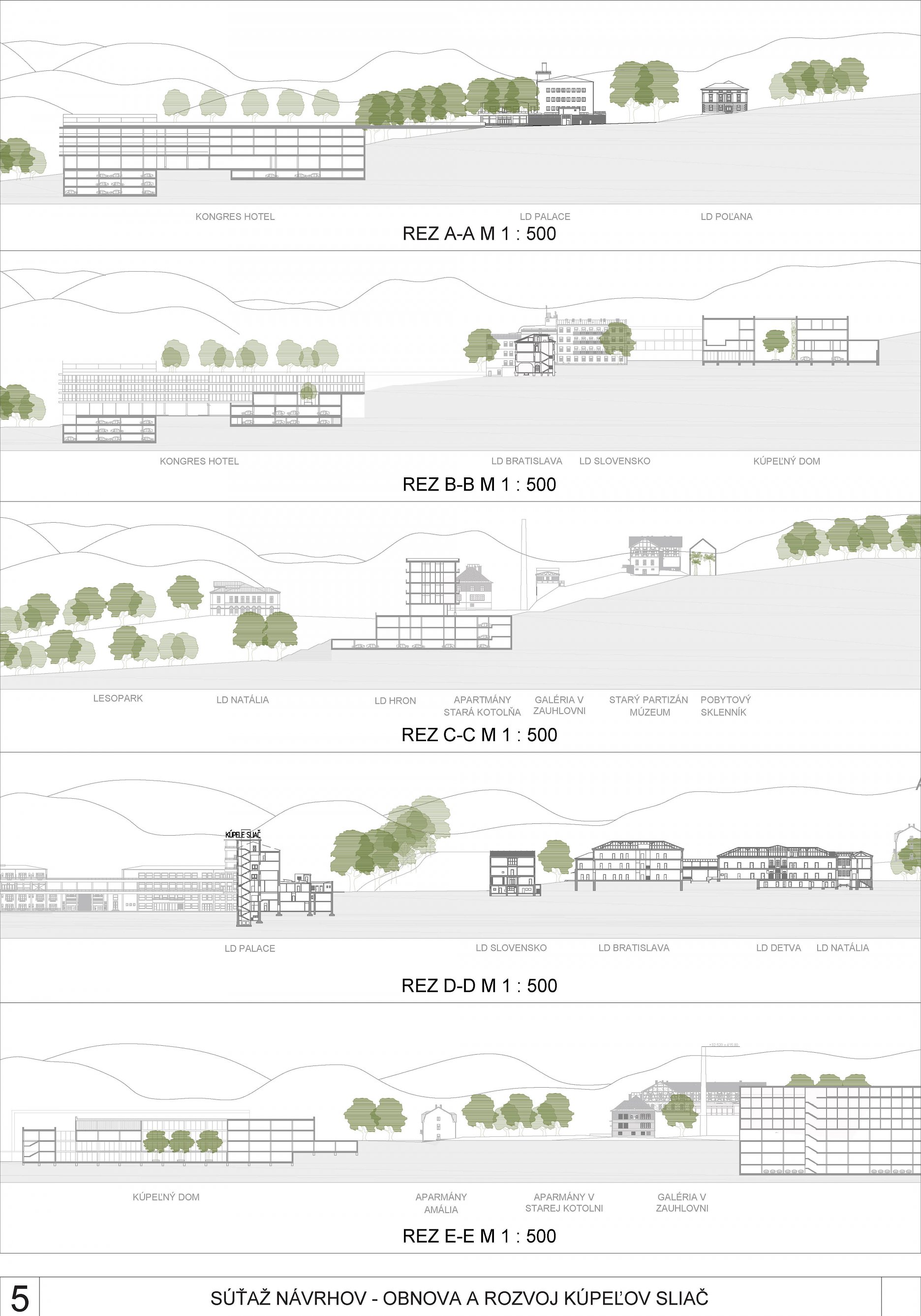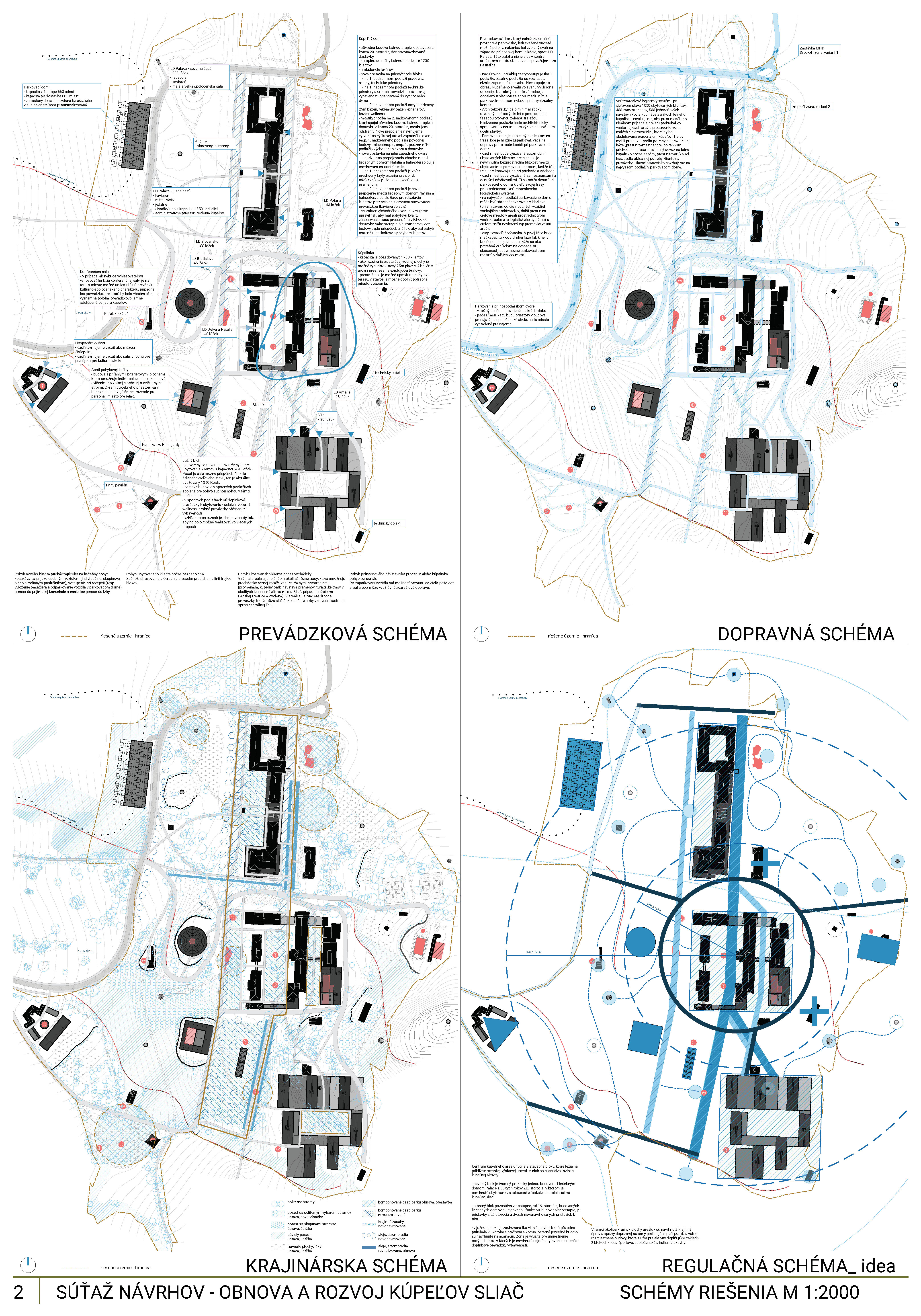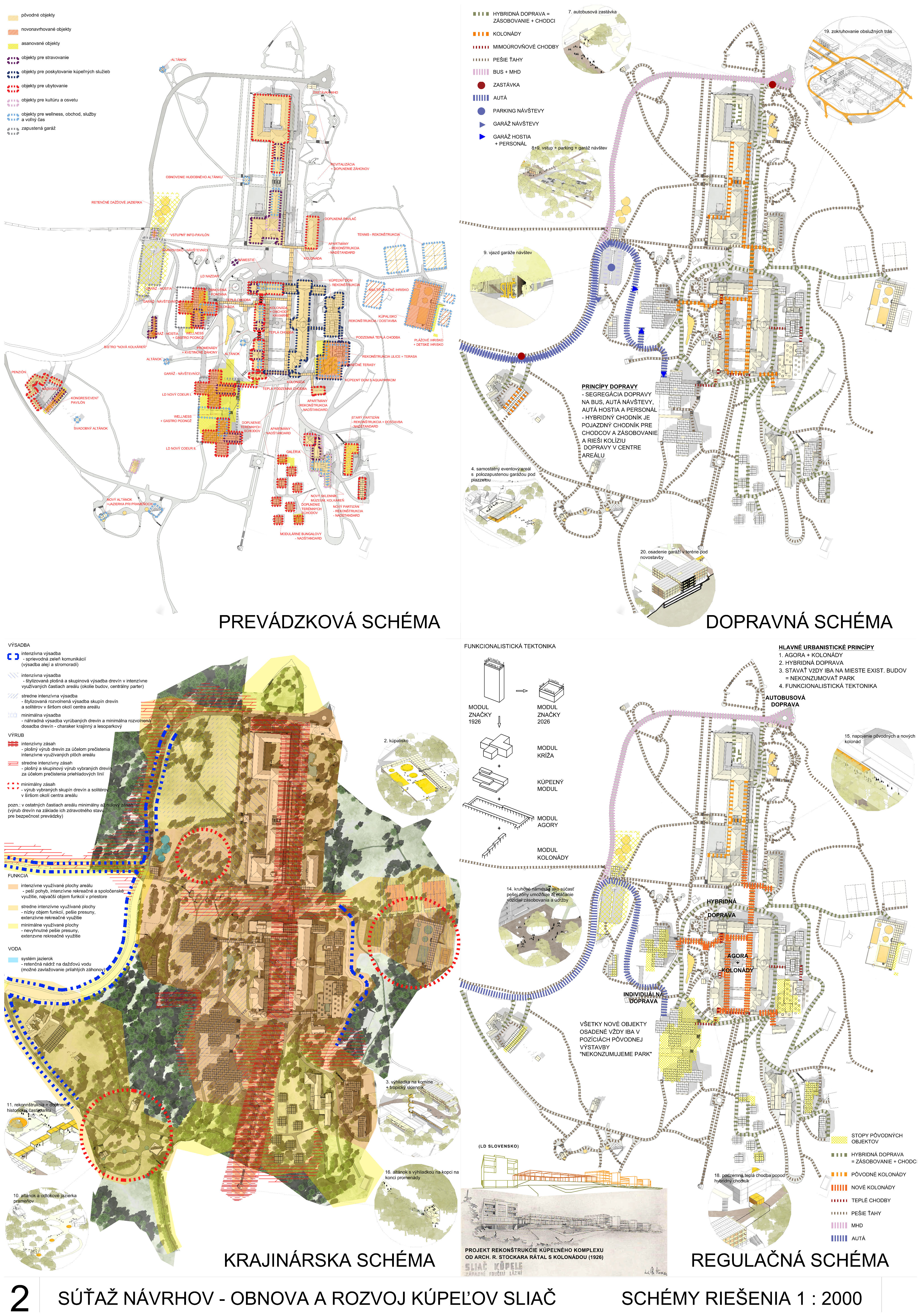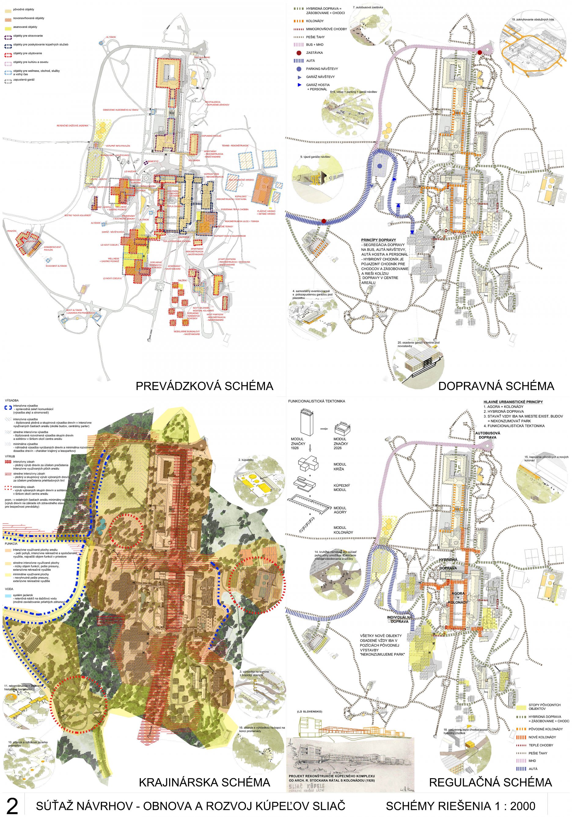 - správne rieši dopravné väzby ako jediný vylúčením dopravy z priestoru medzi kúpeľnými domami a jej nahradením novým prepojením. Toto prepojenie bude potrebné v ďalšom postupe projektovej prípravy dôkladne overiť s ohľadom na morfológiu terénu