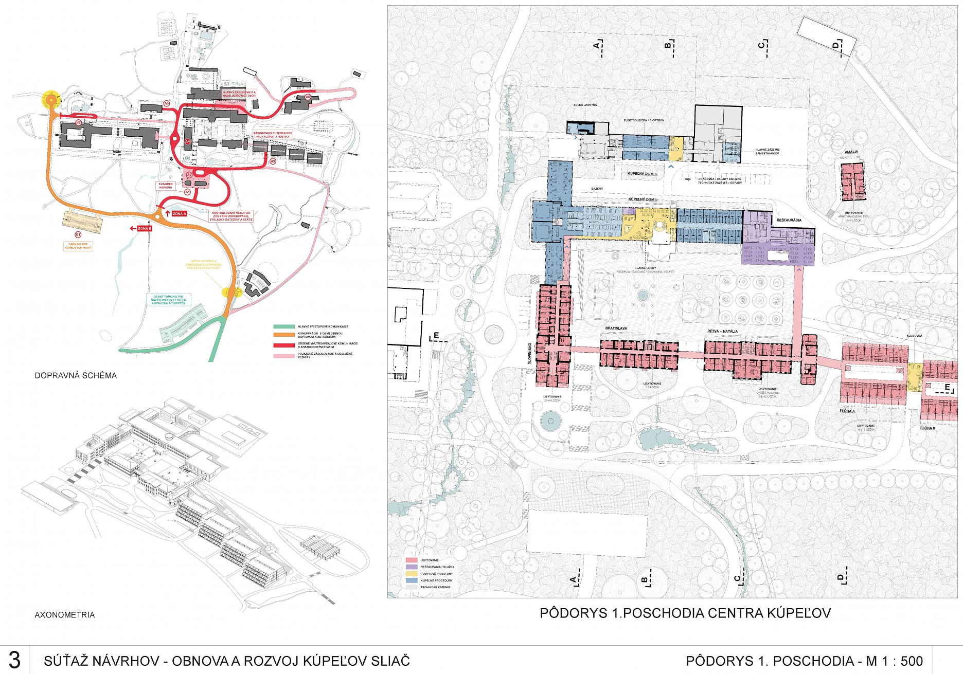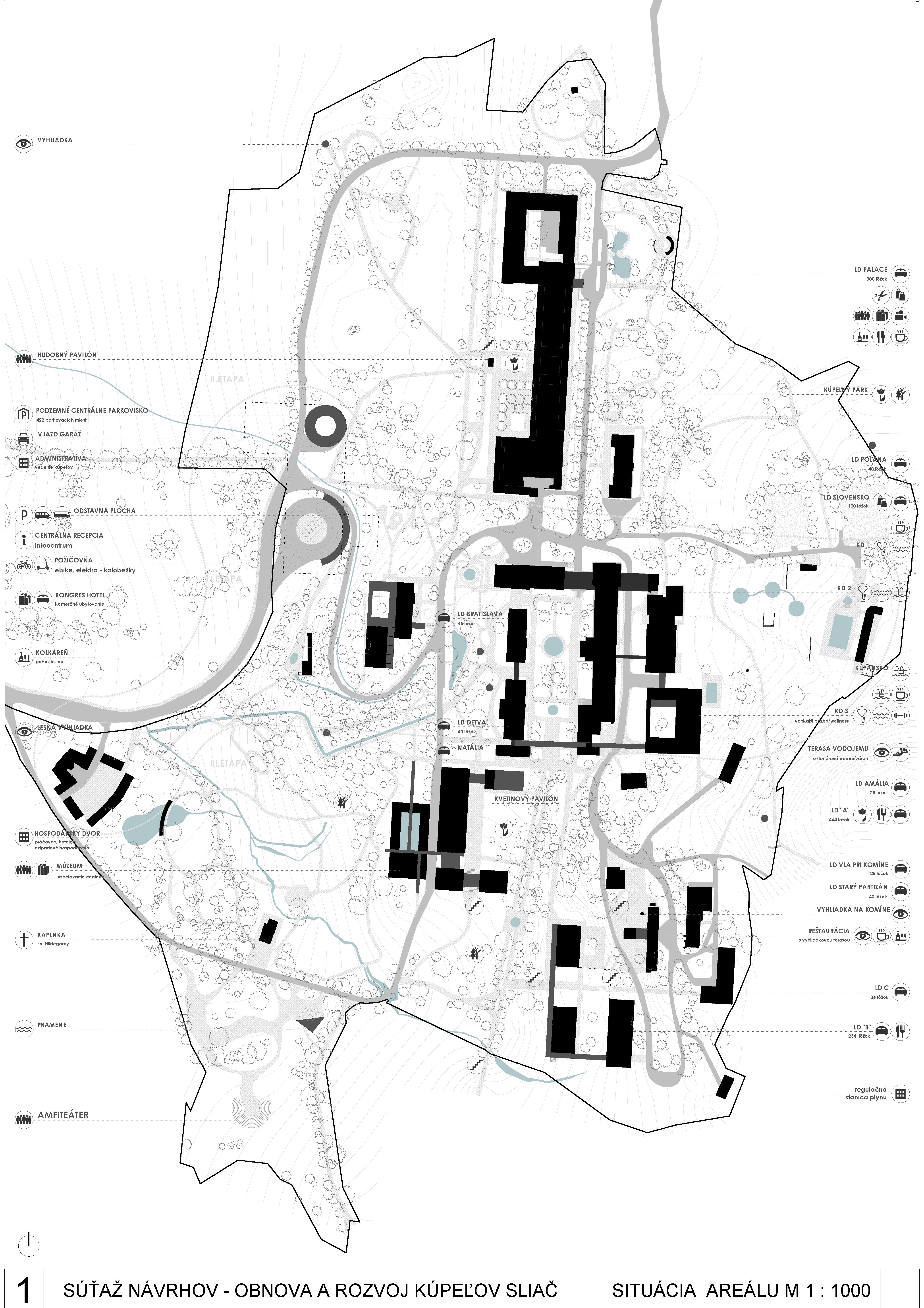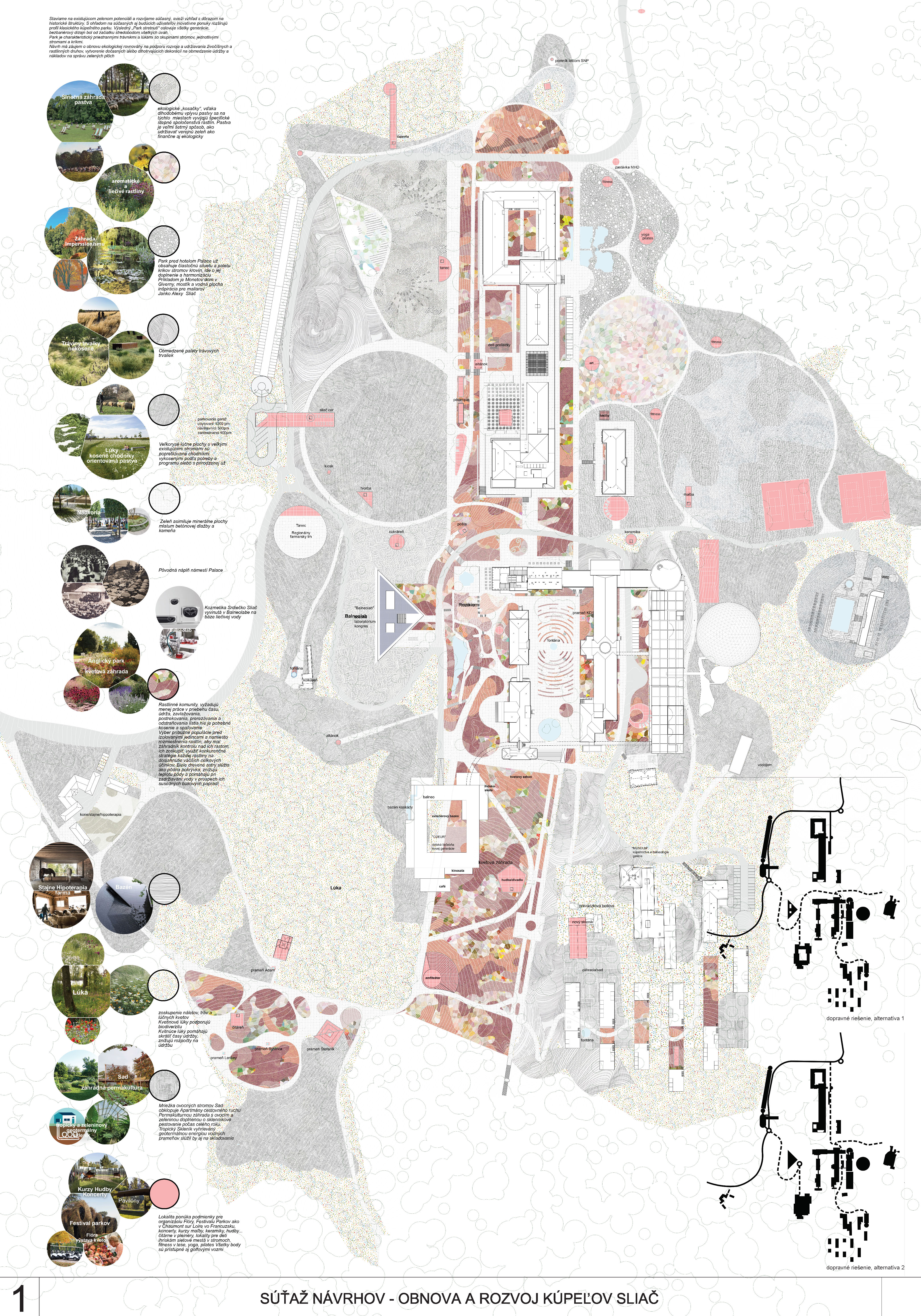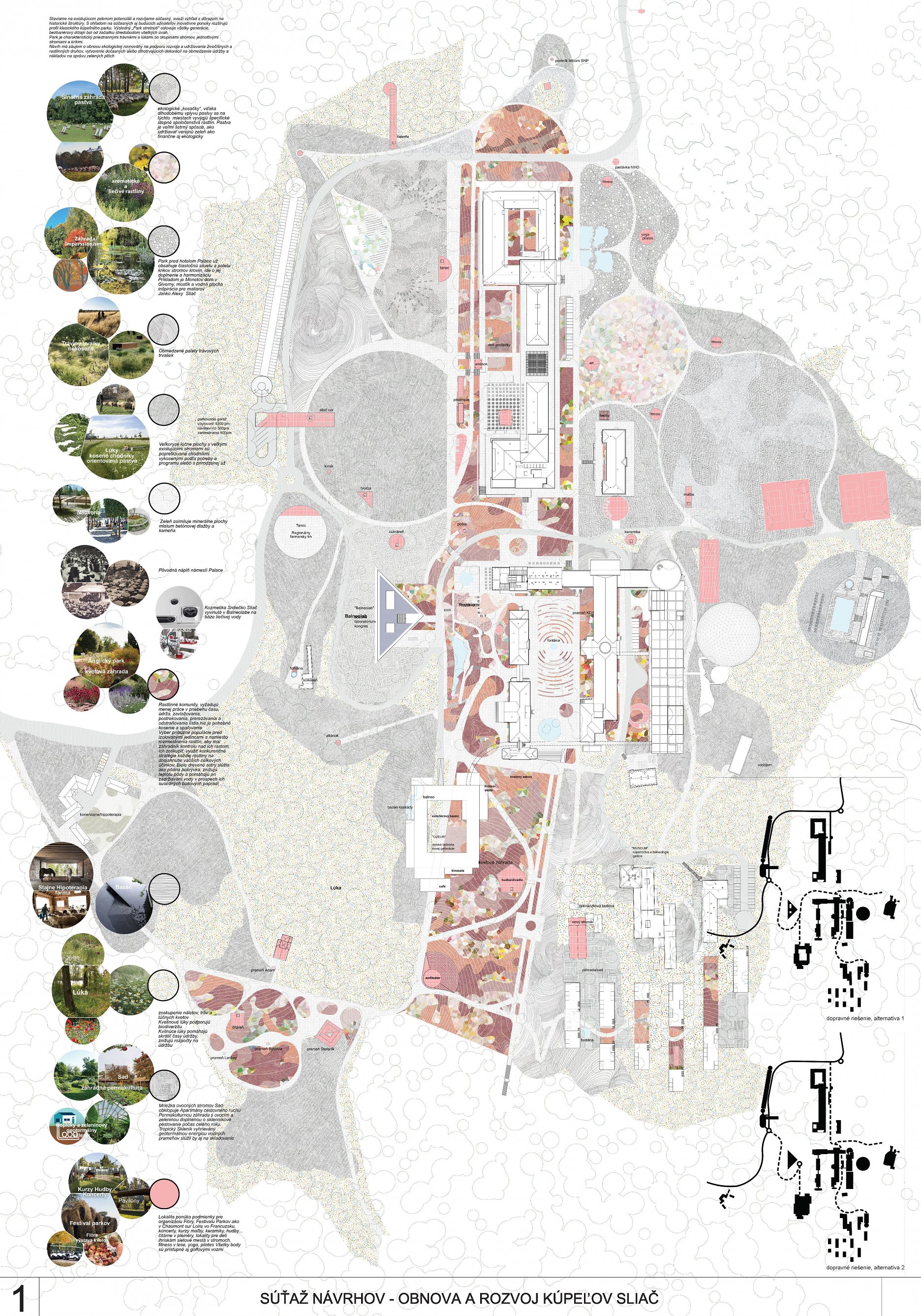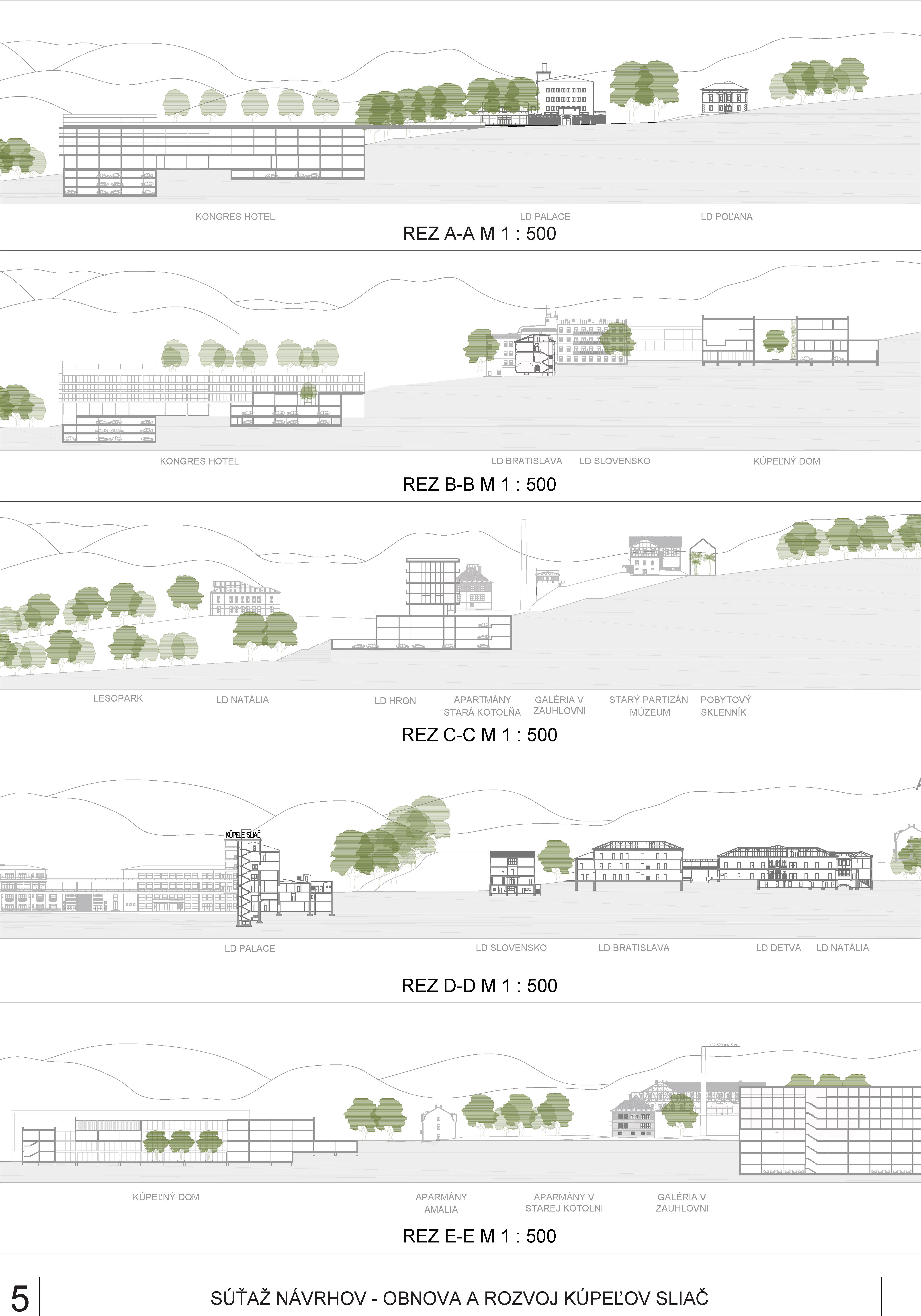- správne rieši dopravné väzby ako jediný vylúčením dopravy z priestoru medzi kúpeľnými domami a jej nahradením novým prepojením. Toto prepojenie bude potrebné v ďalšom postupe projektovej prípravy dôkladne overiť s ohľadom na morfológiu terénu
