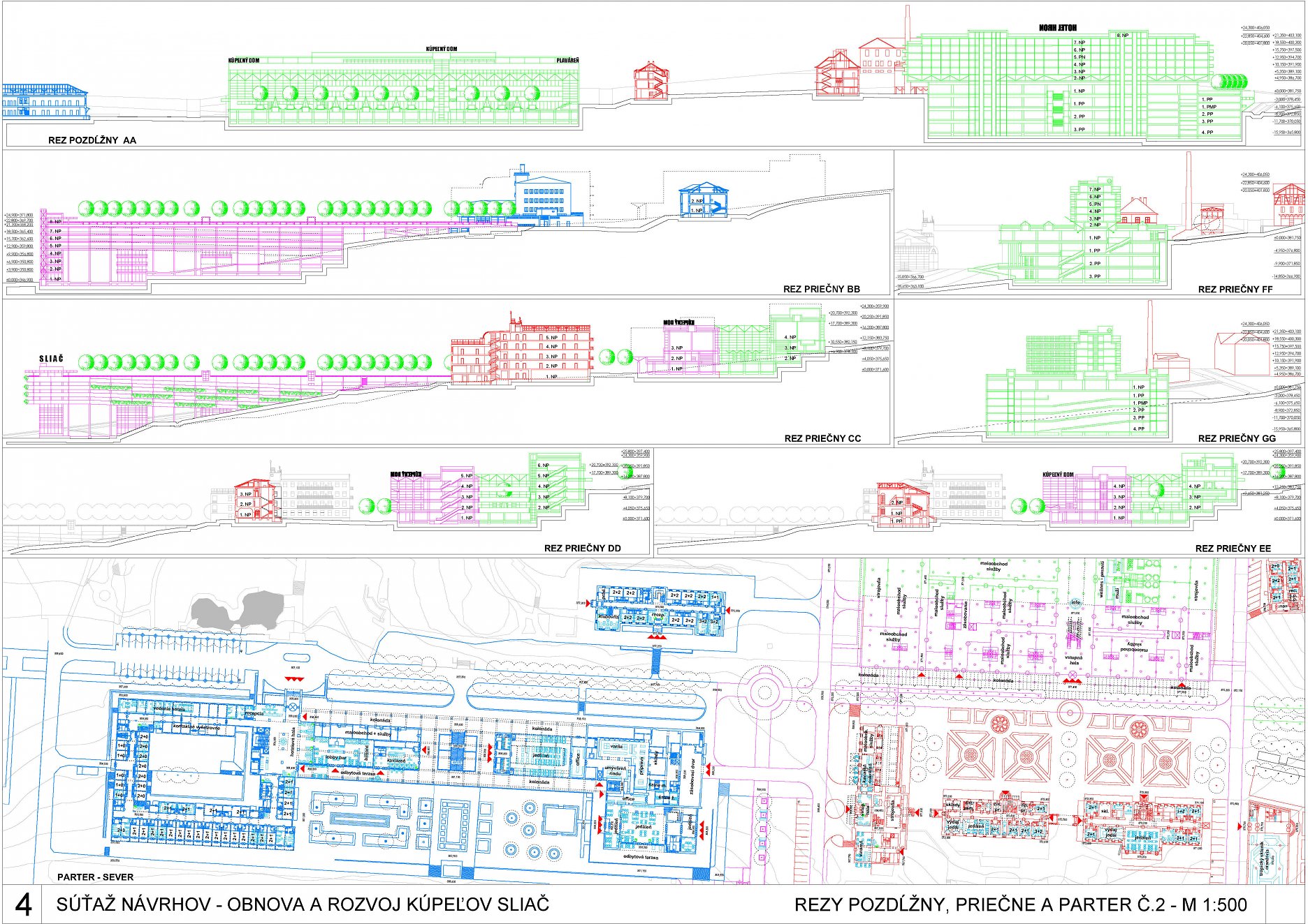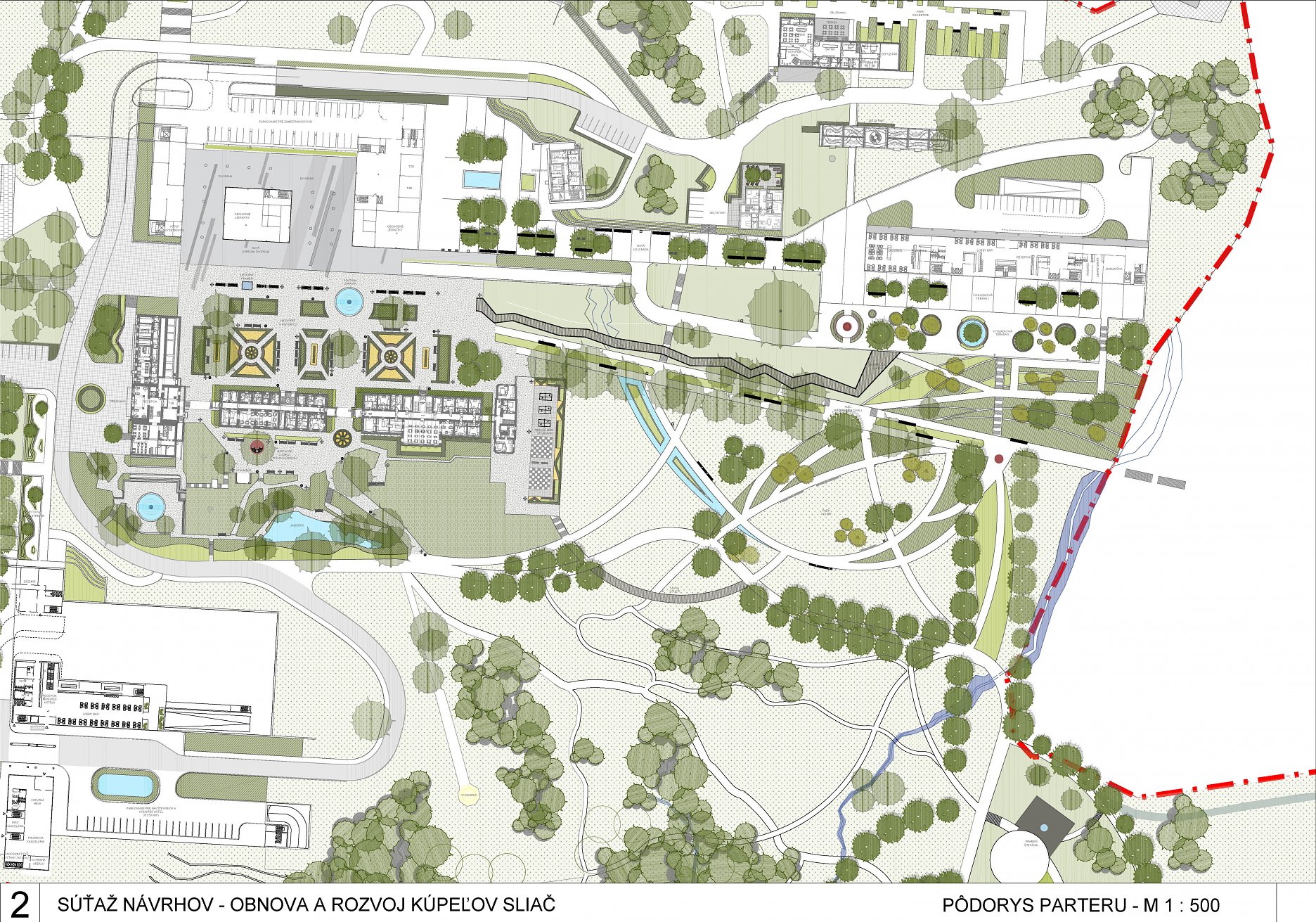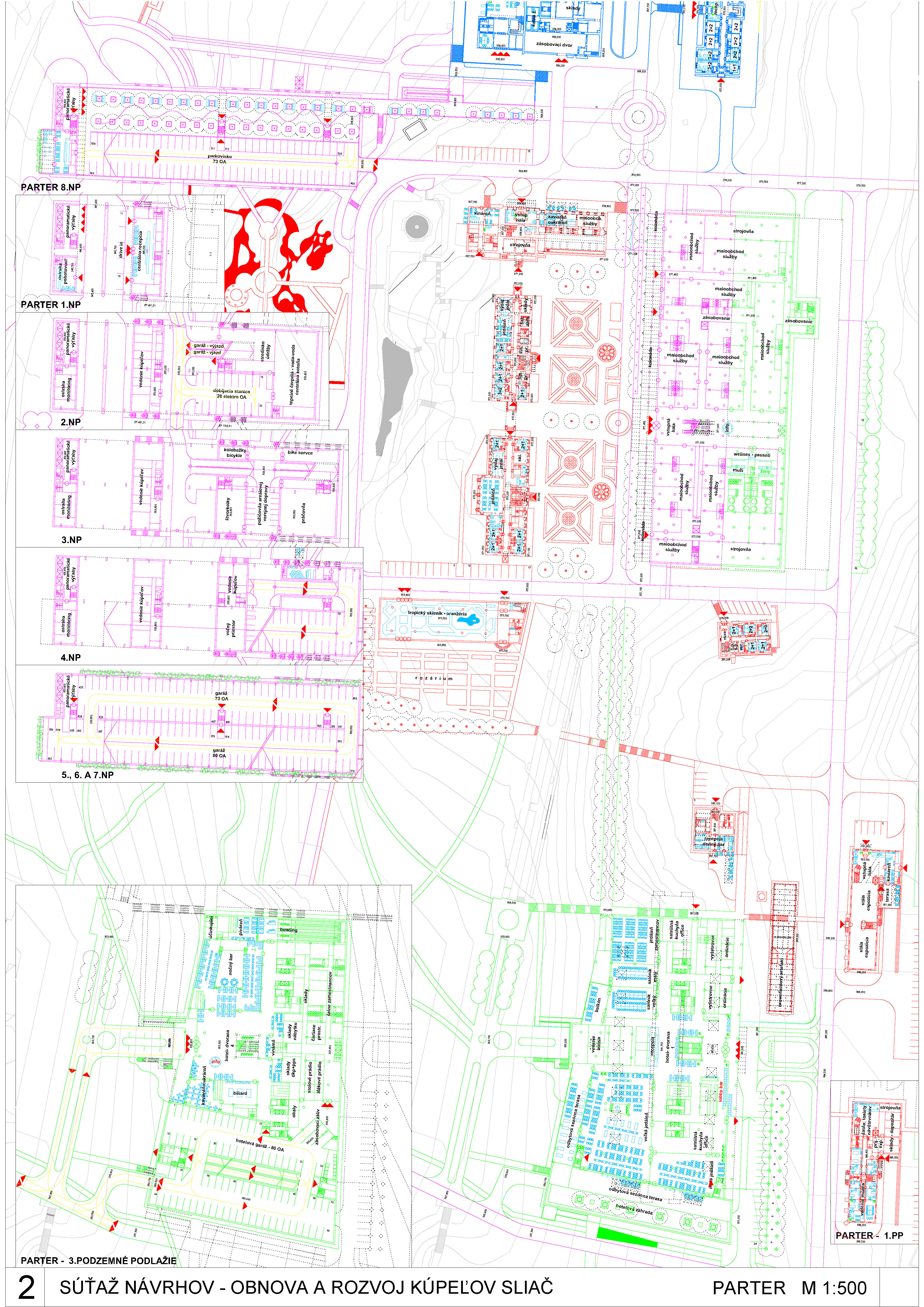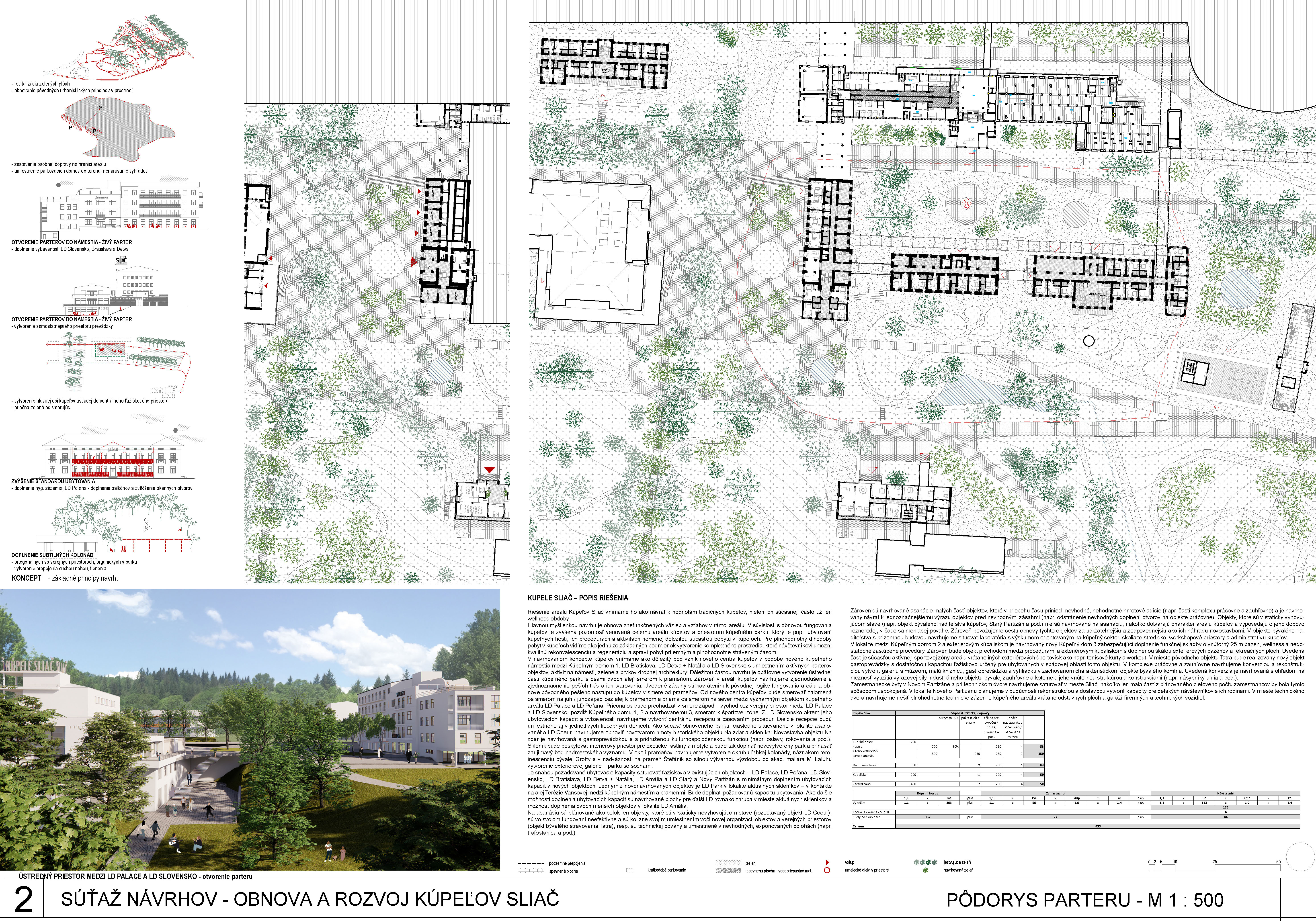 - správne rieši dopravné väzby ako jediný vylúčením dopravy z priestoru medzi kúpeľnými domami a jej nahradením novým prepojením. Toto prepojenie bude potrebné v ďalšom postupe projektovej prípravy dôkladne overiť s ohľadom na morfológiu terénu