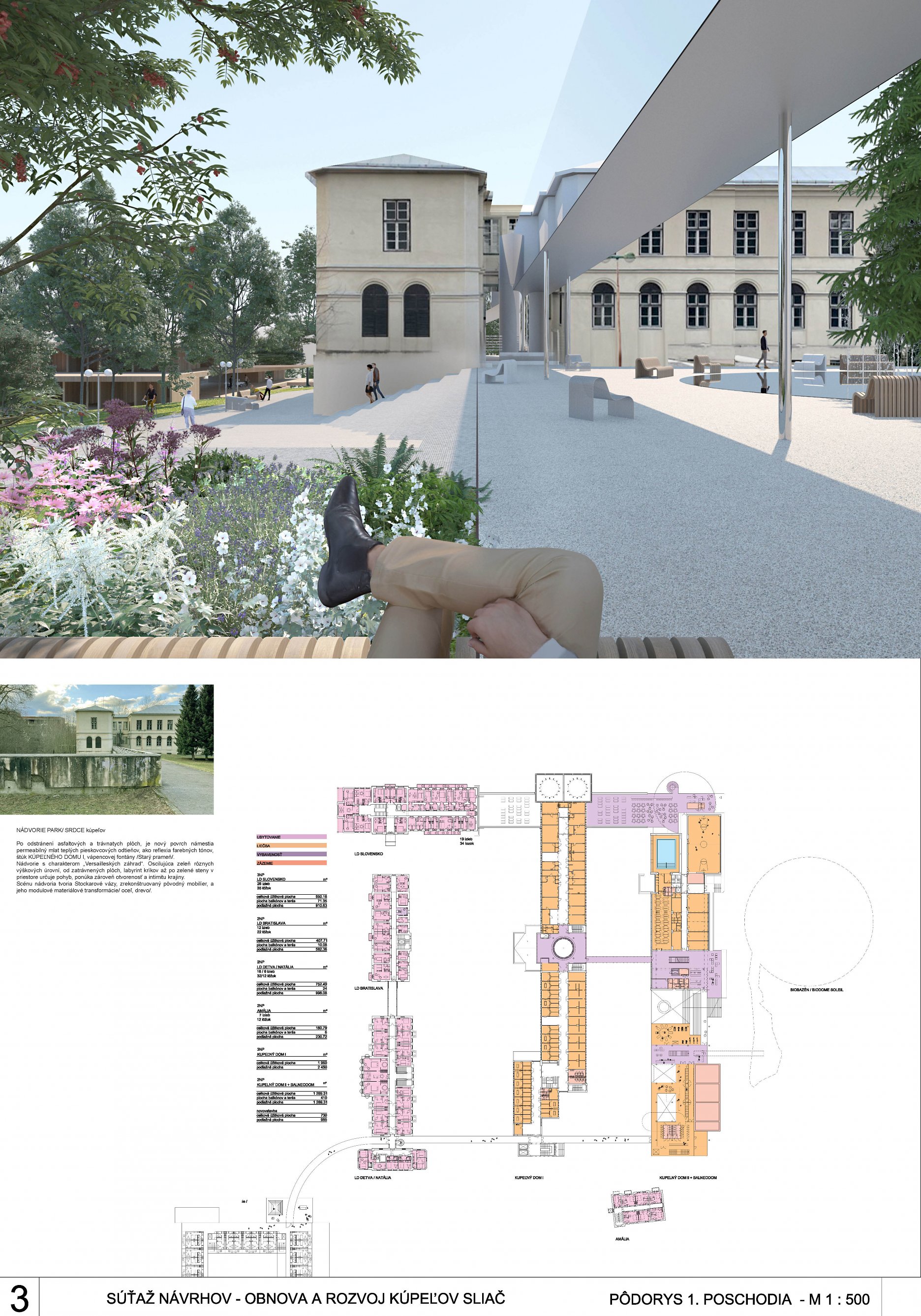 - navrhované úpravy „kúpeľného námestia“ mu dávajú novú identitu a charakter,