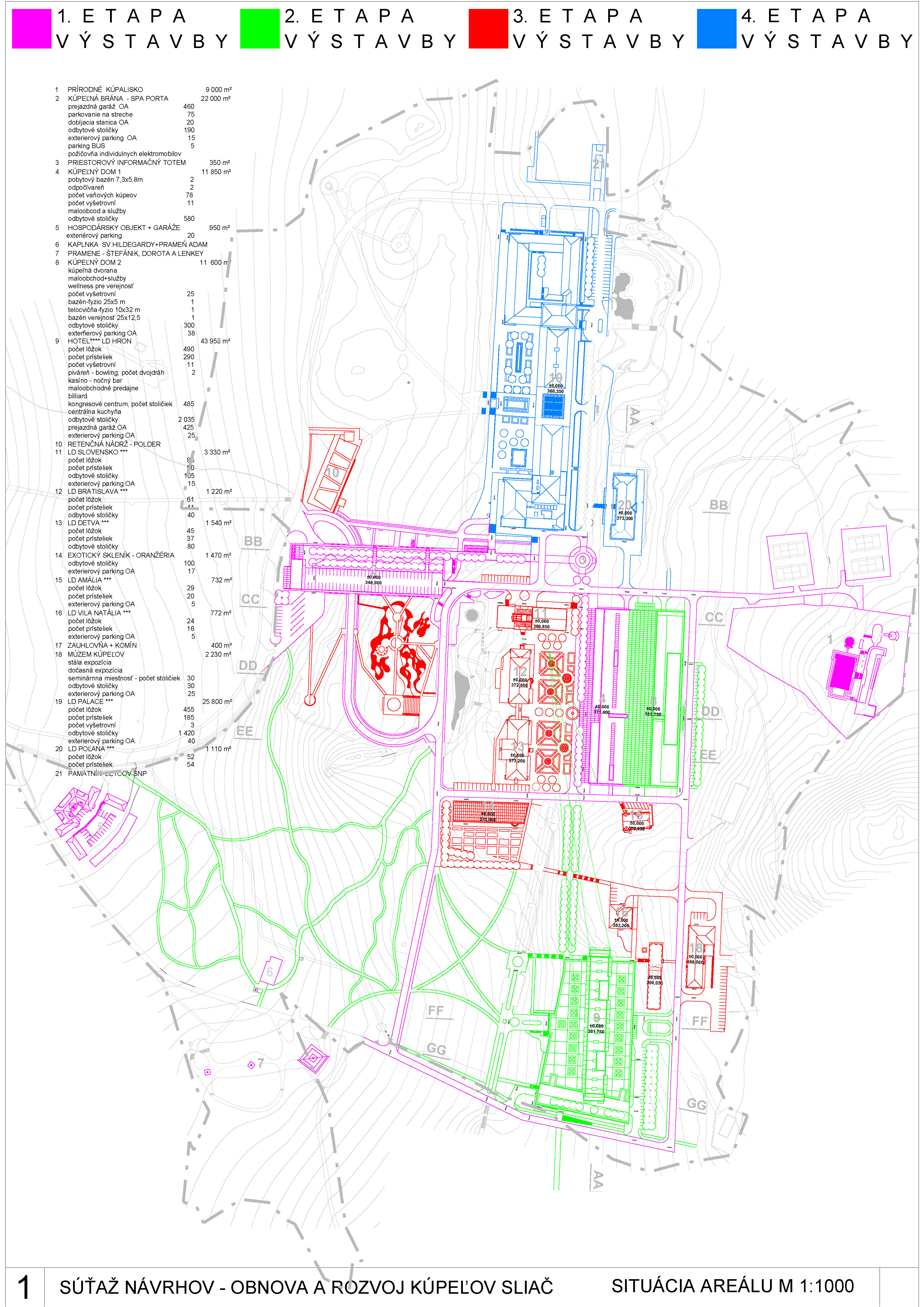 Do prvej etapy súťaže, ktorej cieľom bolo nájsť najvhodnejšie koncepčné riešenie areálu sa zúčastnilo 11 autorských kolektívov. Hodnotiaca komisia z nich následne vybrala 6 ateliérov, ktoré dopracovali návrhy na základe adresovaných odporúčaní.