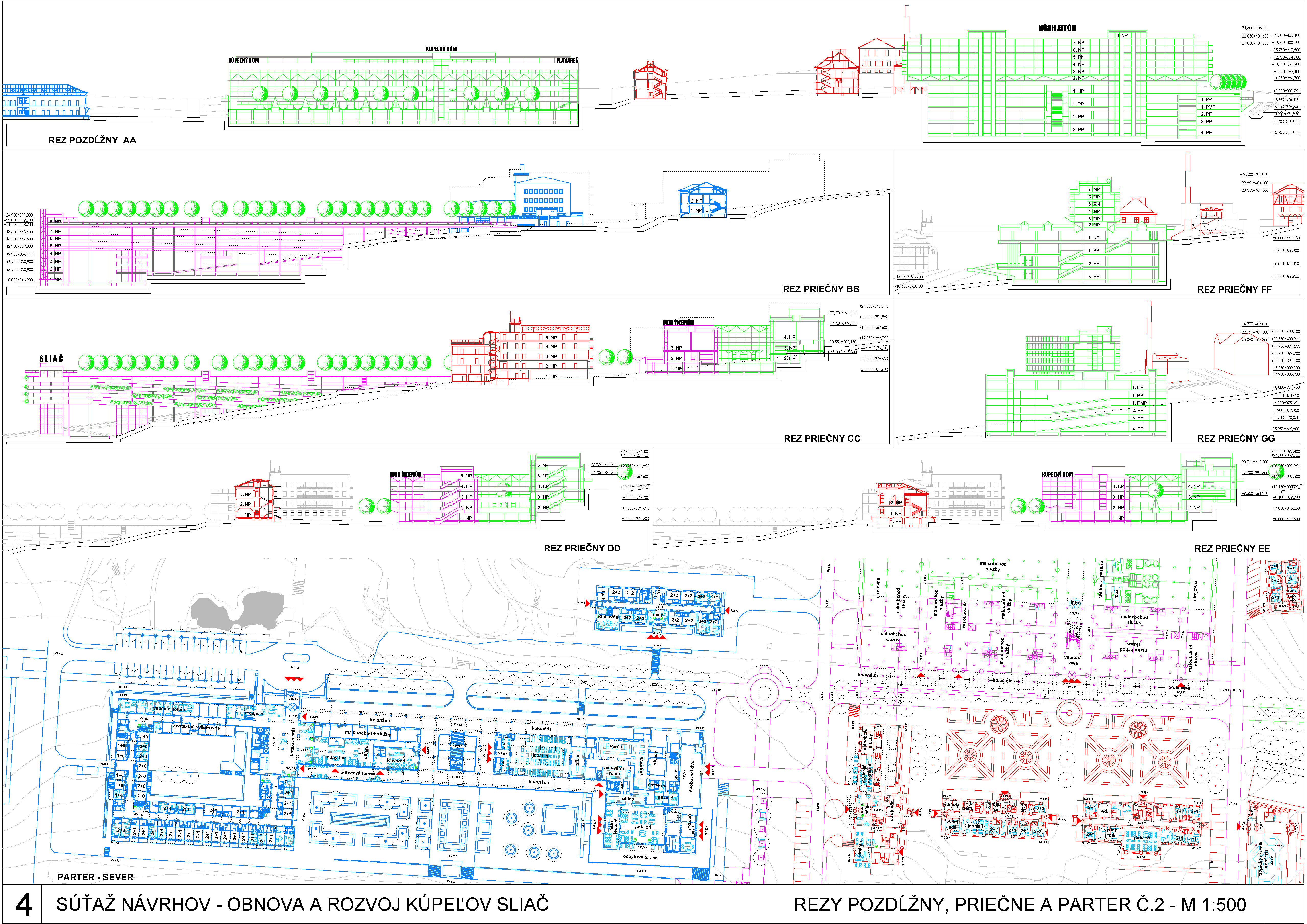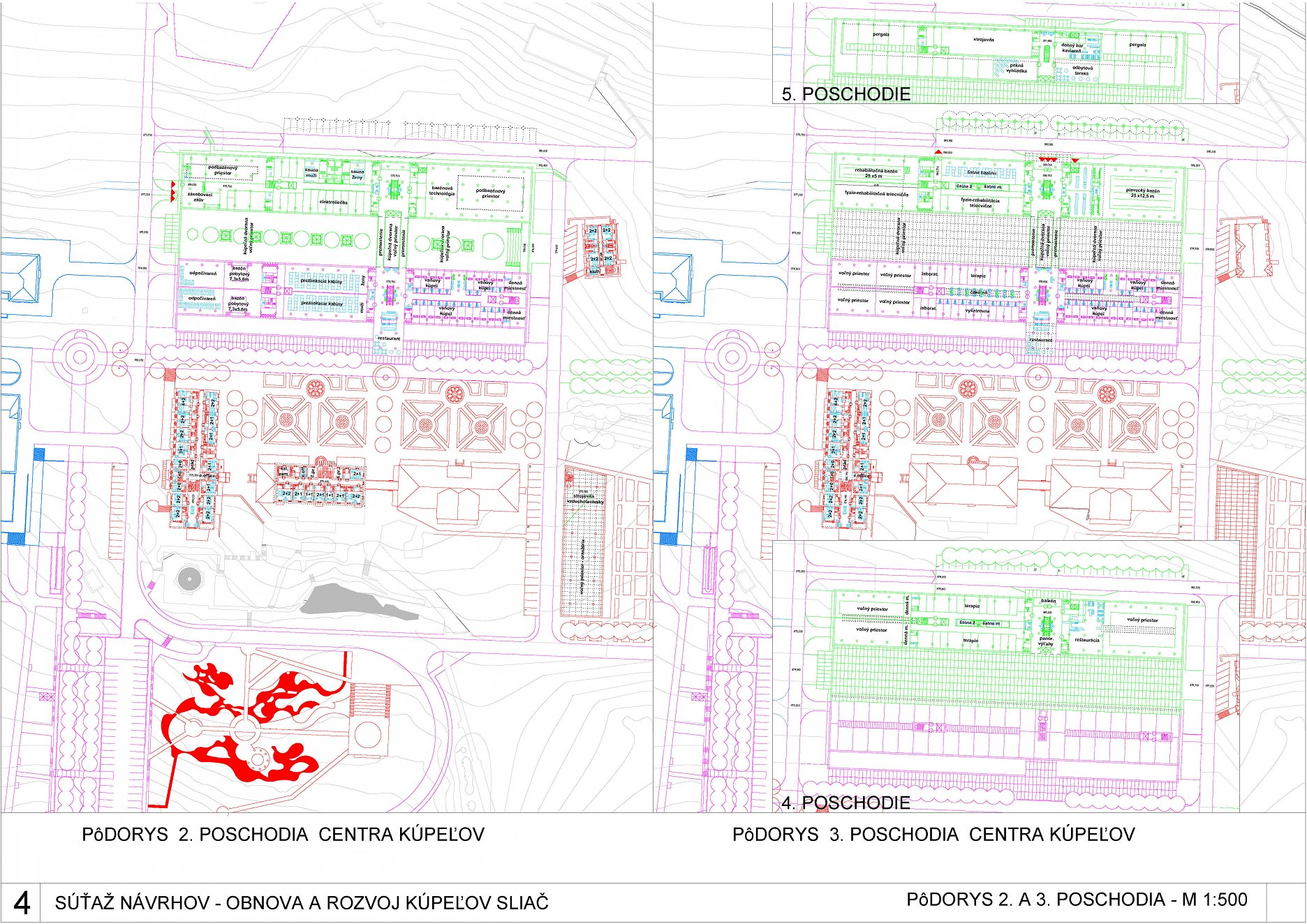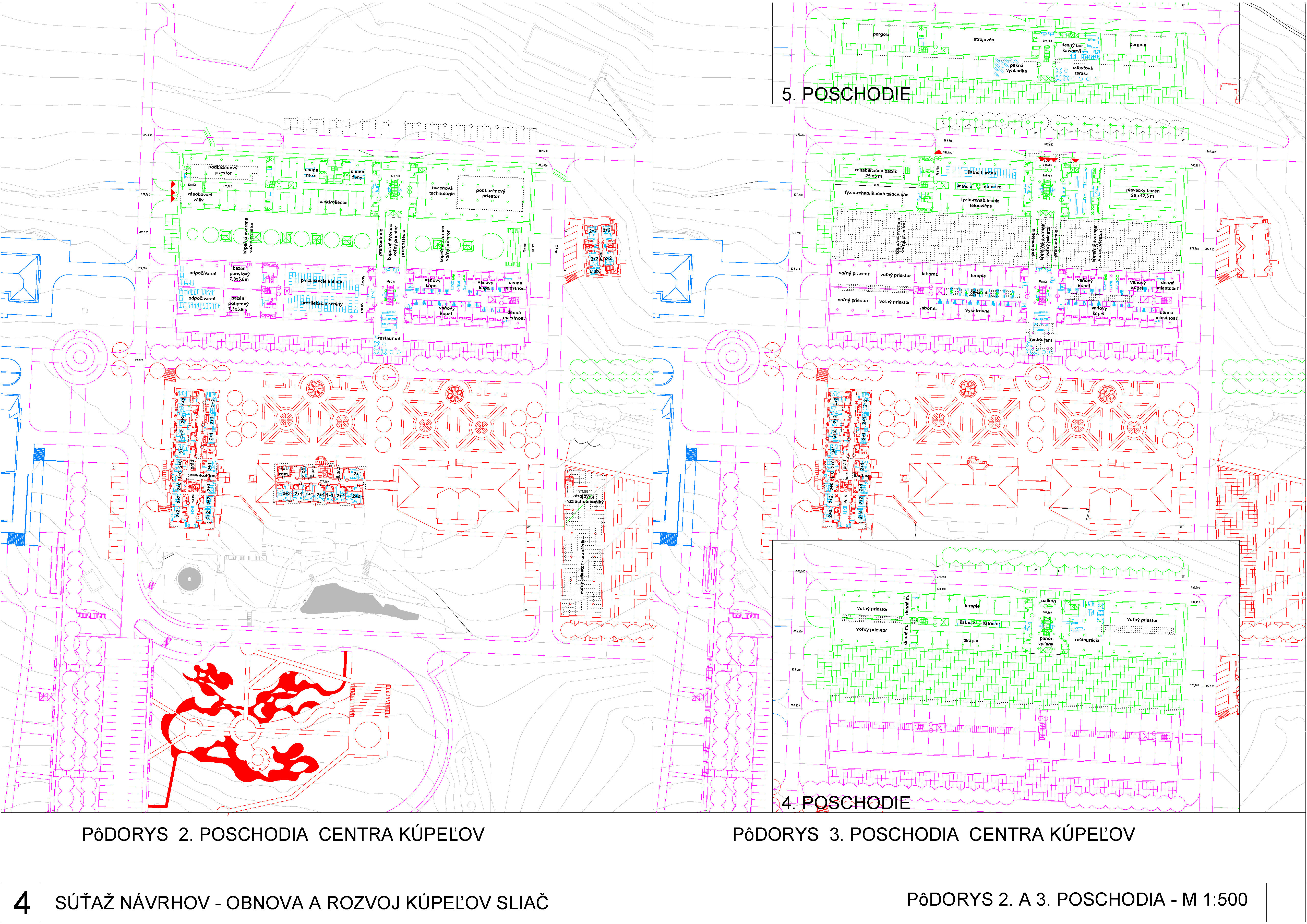 - kompletne stavebne prehodnocuje balneologické “srdce kúpeľov”, pričom dispozične ani prevádzkovo v návrhu nového domu neprináša adekváktne zlepšenie,