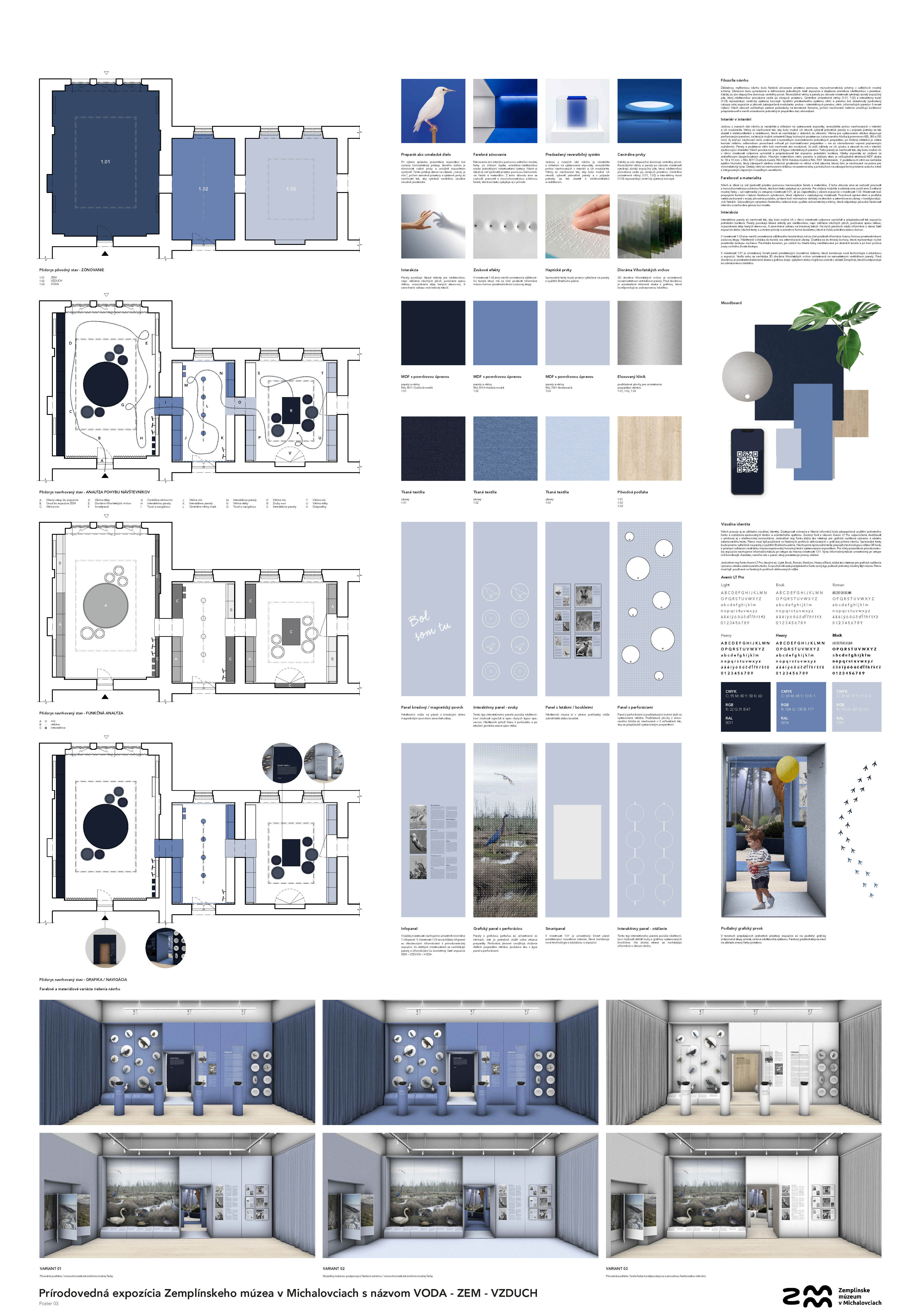 Kvalitne spracovaný návrh po grafickej aj technickej stránke s množstvom detailov a ponúkaných možností. Prepracovanosť počnúc materiálovými možnosťami, cez typografiu, farebné riešenie priestoru, až po variabilitu istých častí výstavných priestorov. Priestory sú charakteristické svojou jednoduchosťou a čistotou s moderným nádychom.